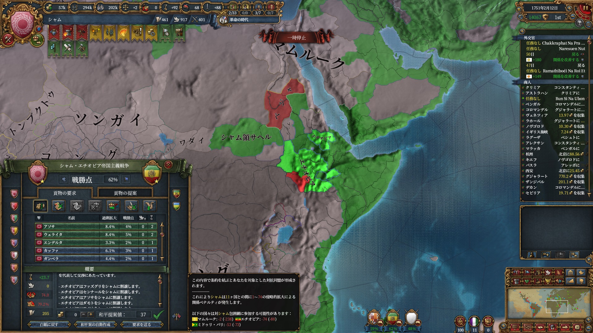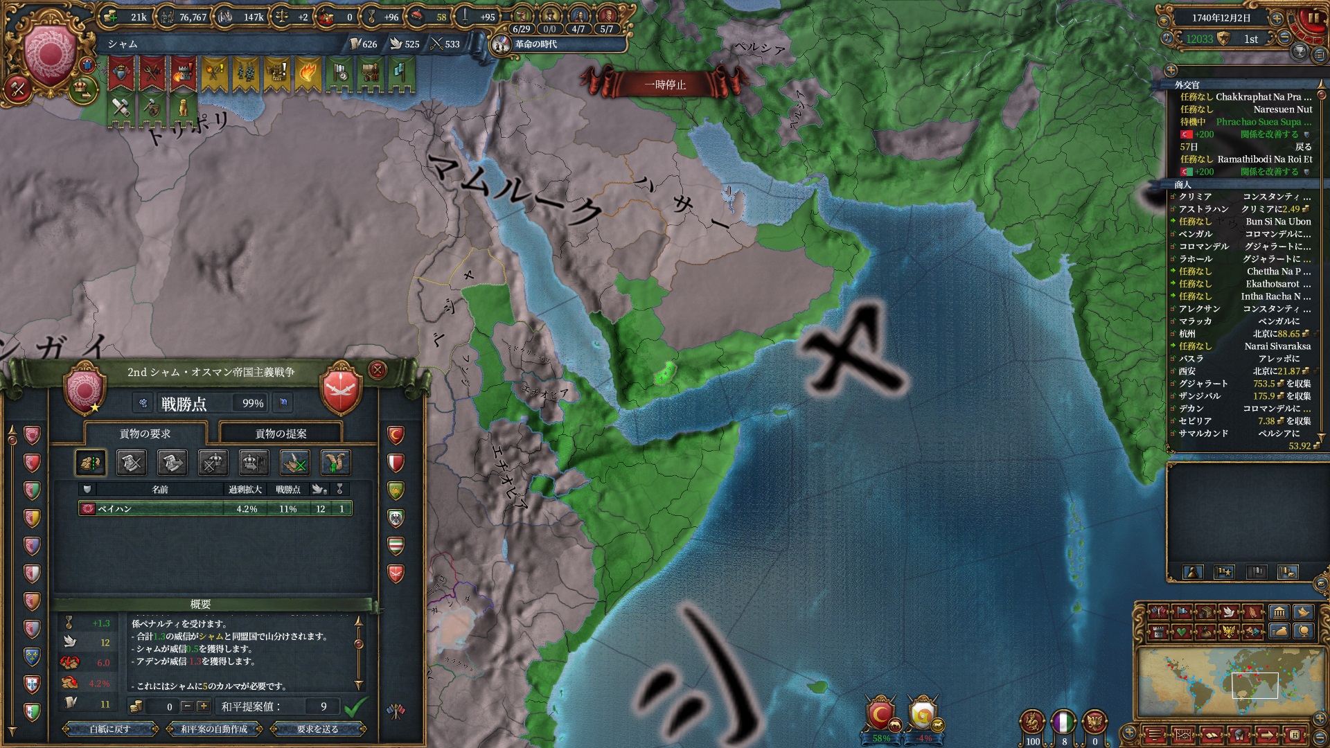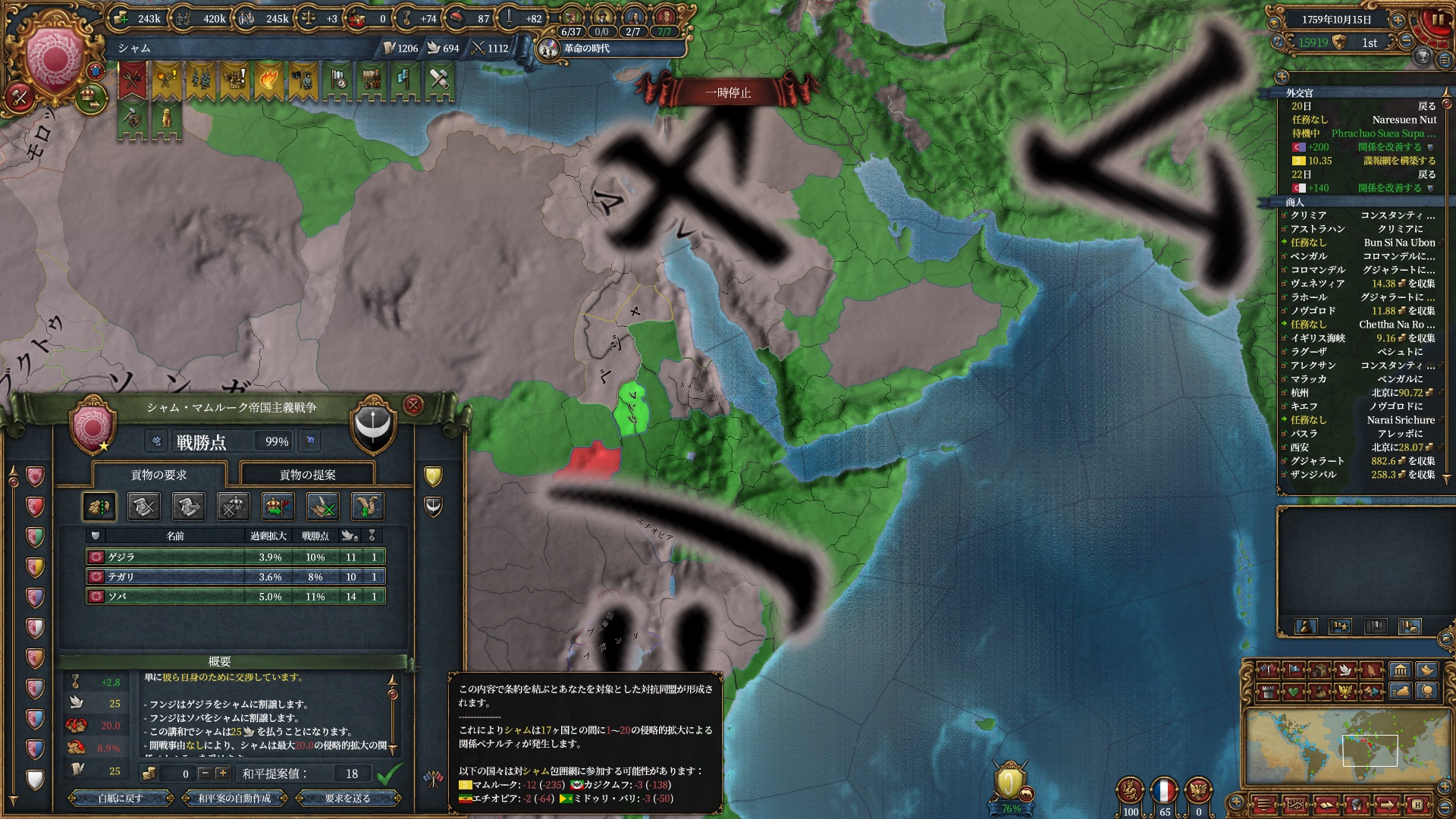 振り返ってみると他に戦争してたわけでもなく属国も2個ぐらいしかなかったのでちょっと勿体ない和平だったかもしれません。