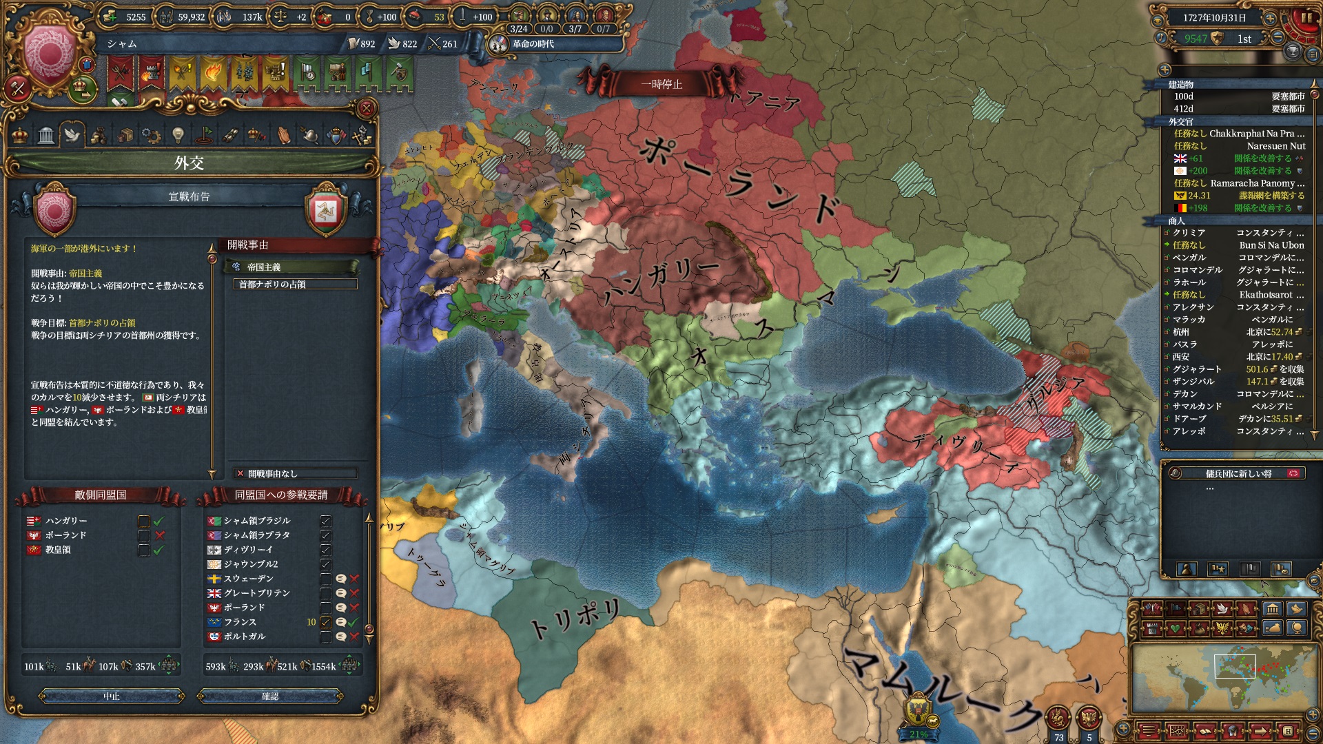 今までのように行けそうな同盟国を呼び出しますが、ポーランドだけはオスマン領を踏まれたくないので放置。