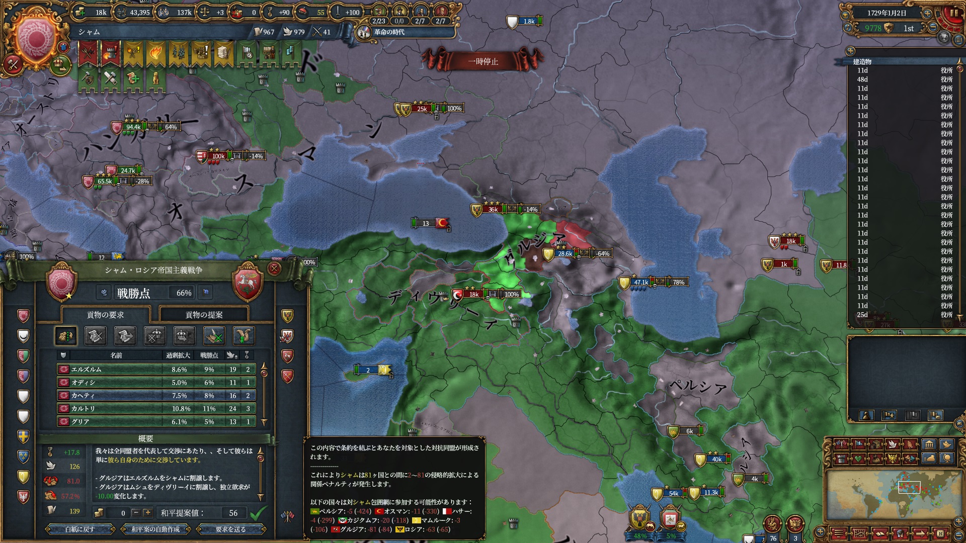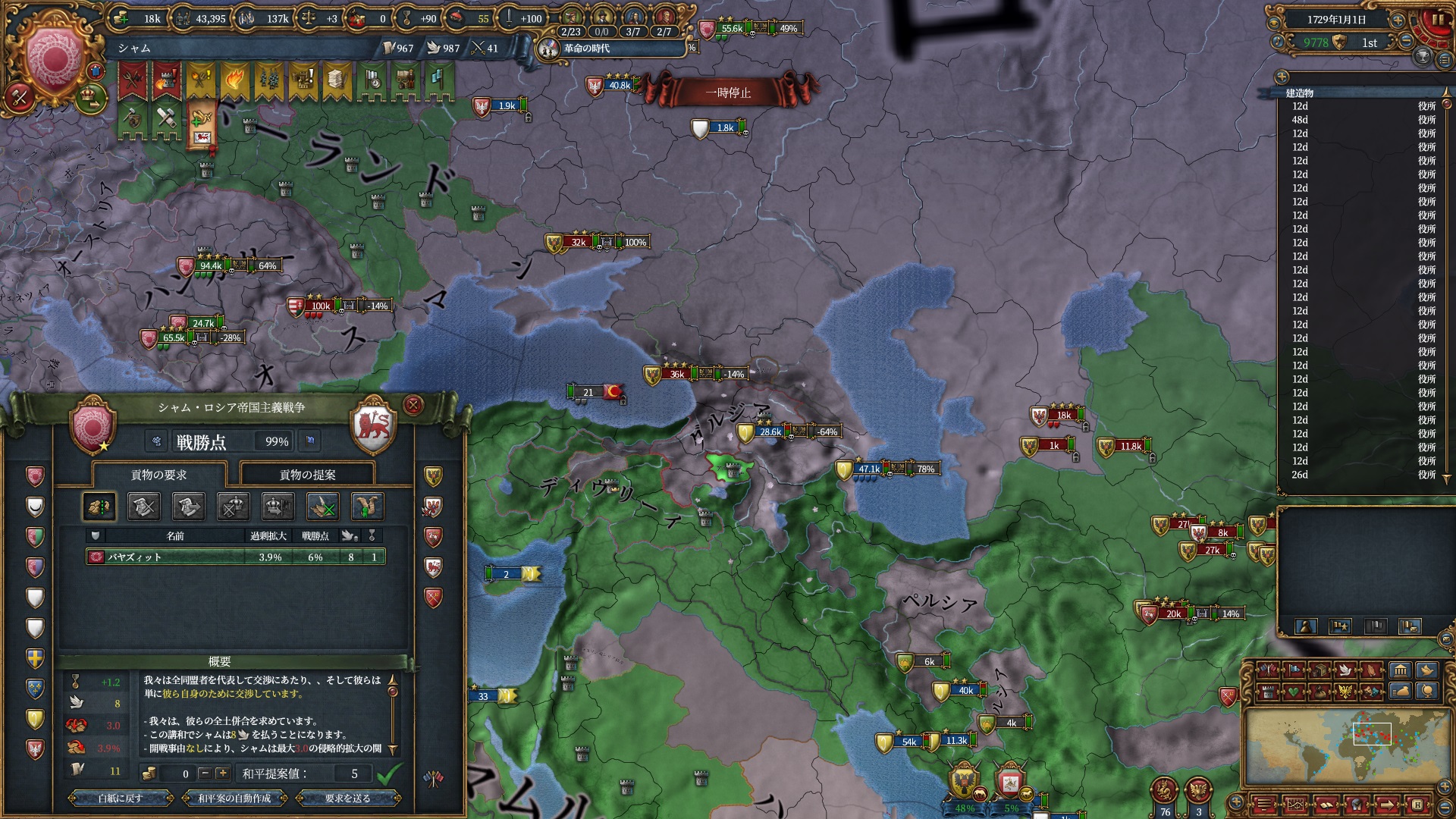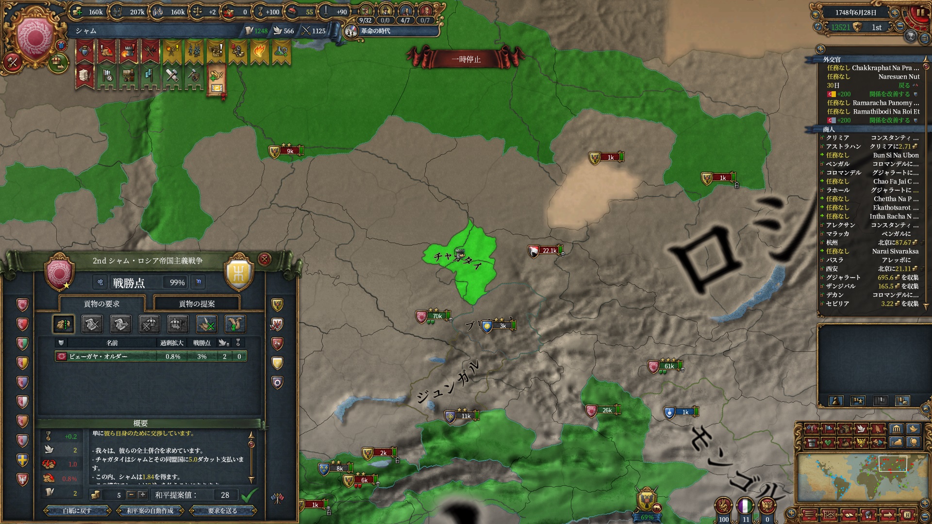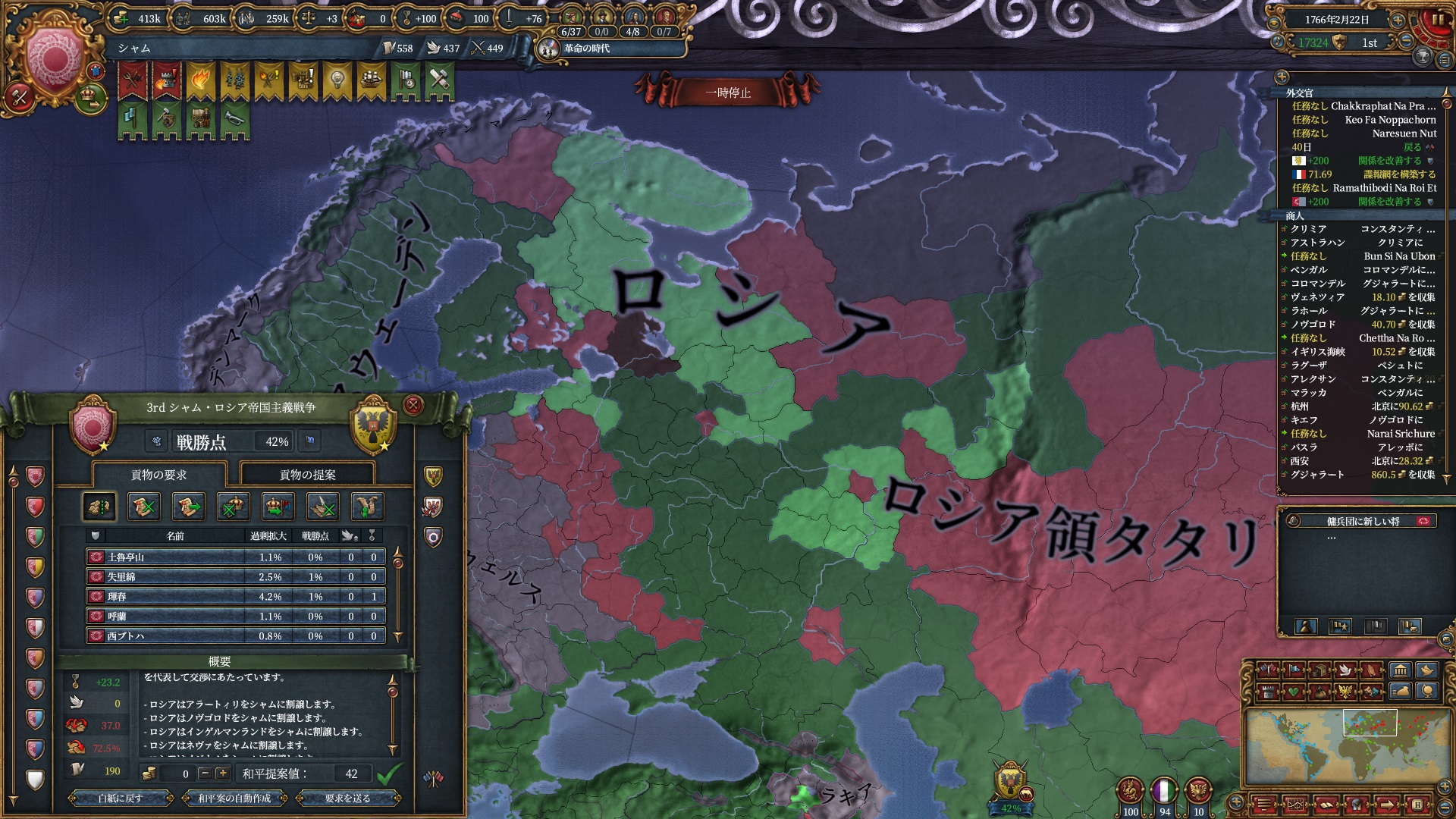 この年代でロシア征服事業が大分遅れそうなのはとても悲しいです。