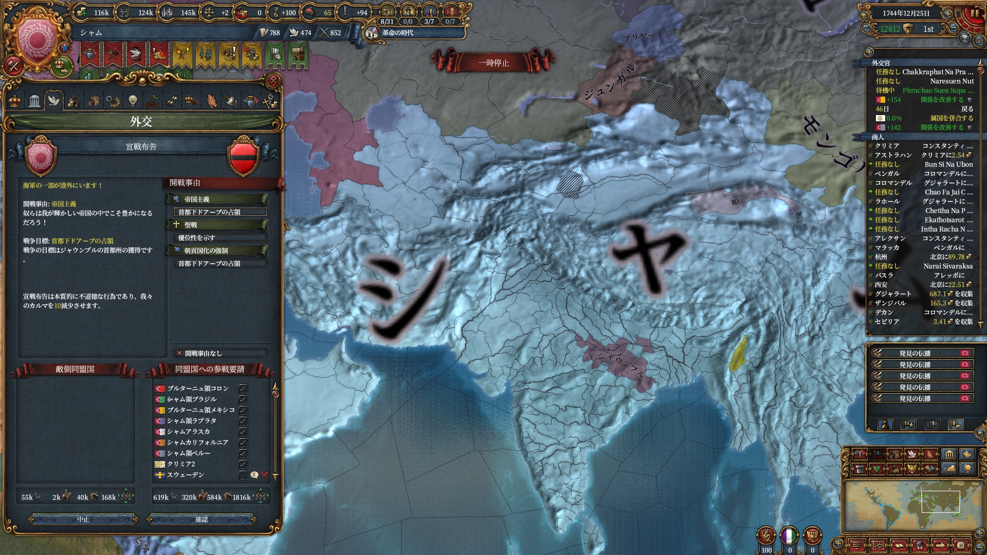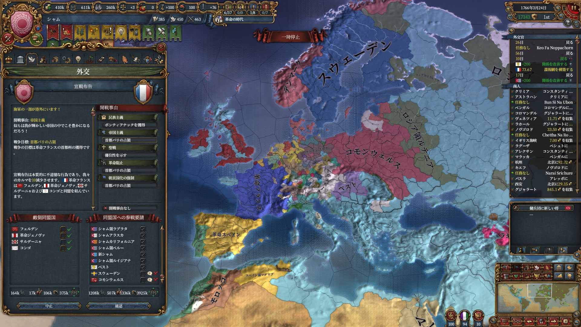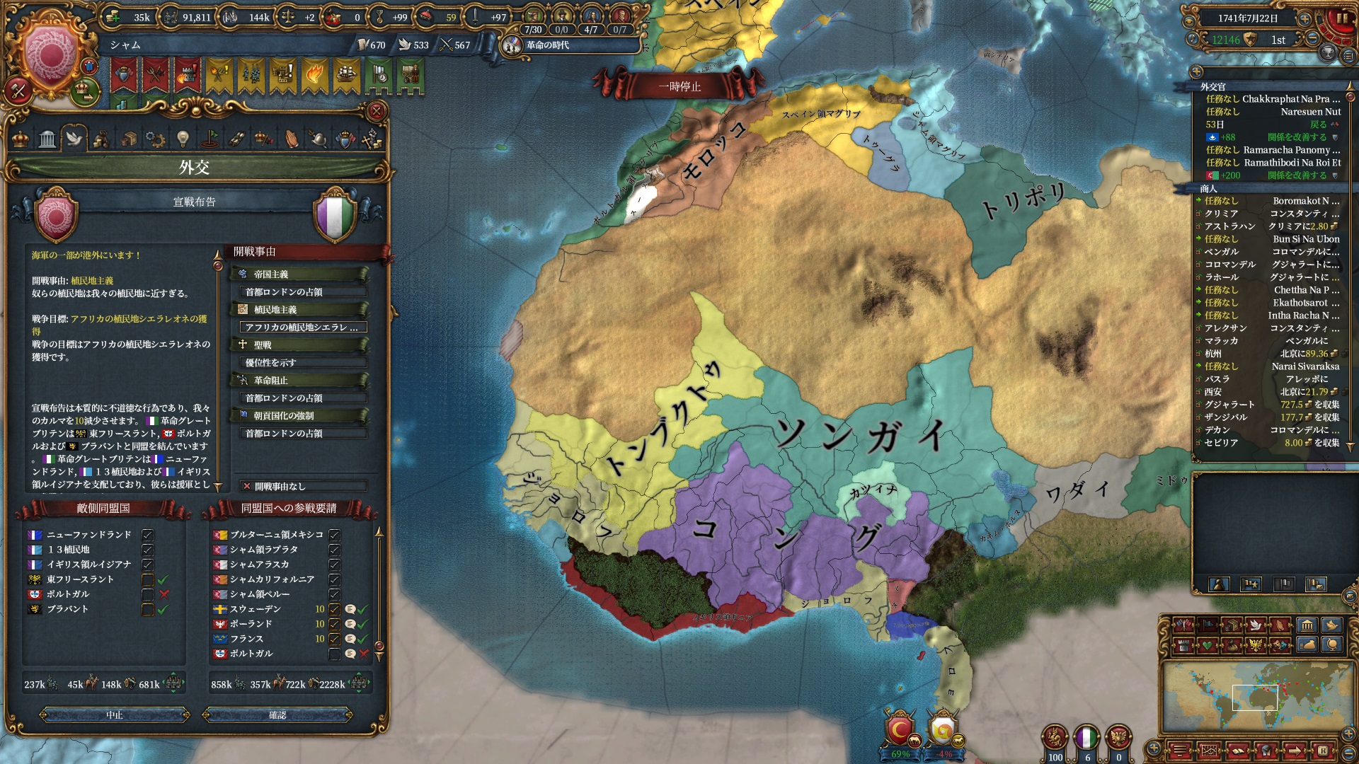 列強をしばいて回るのは勿論ですが、欧州側で衛星国が作れるエリアがあまり無いのでなるべく衛星国ラインを延ばせるように侵略したいところです。