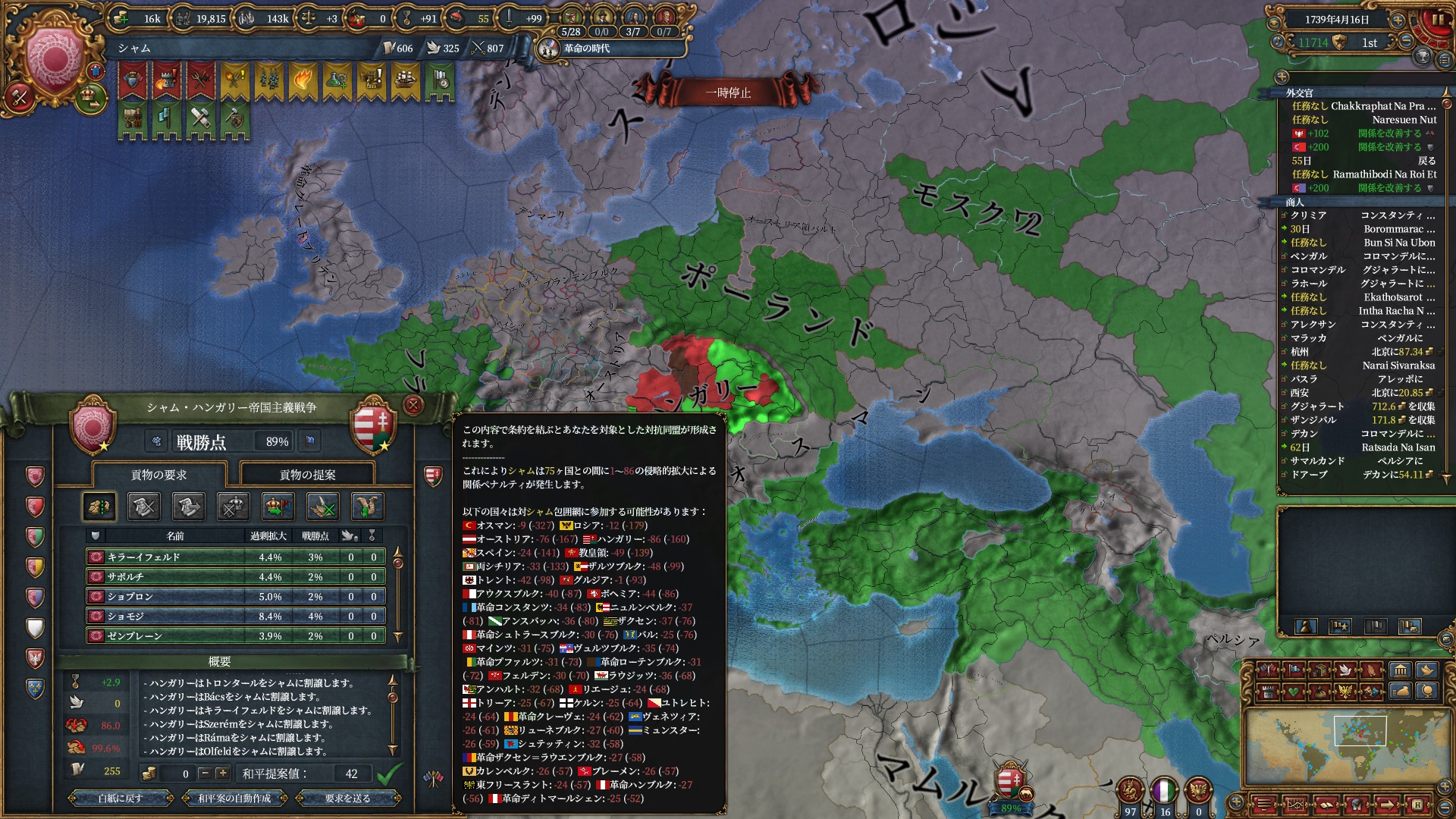 少し途中を略していますが別の戦争を始めてしまったため、講和後に衛星国が作れないのもあってOEは普通の値に。