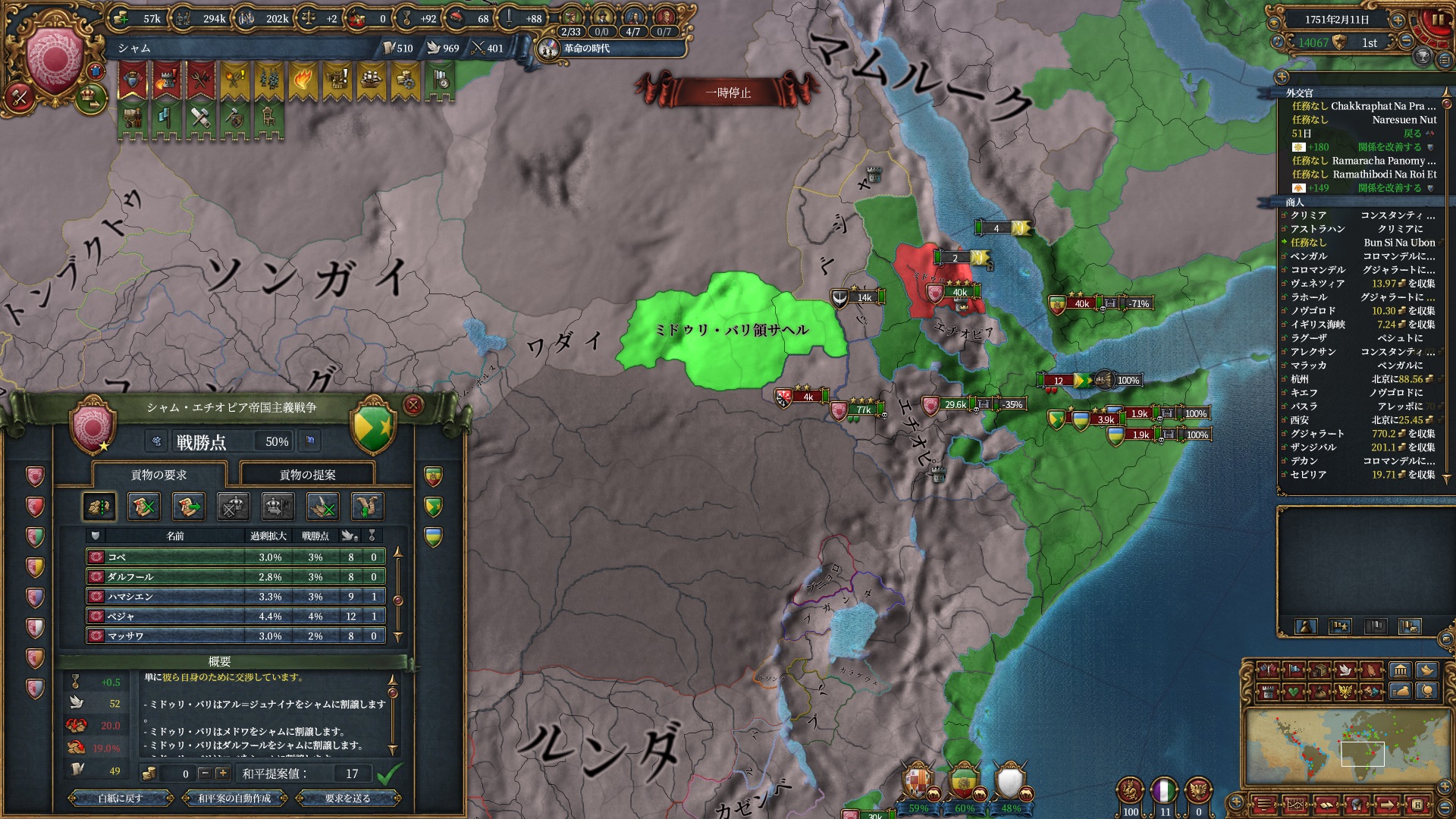 また、付いてきたコンゴは1プロビしかなかったのでそのまま属国にしました。