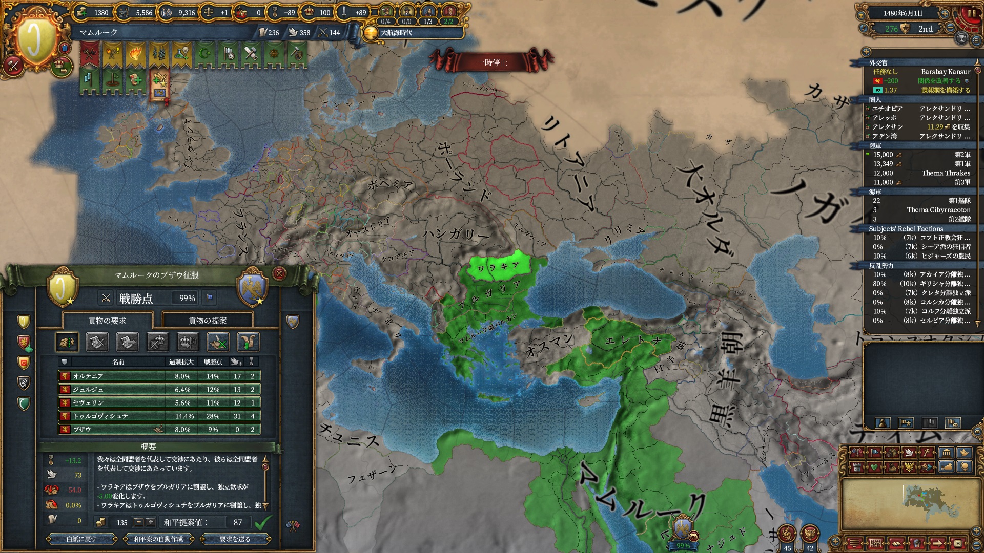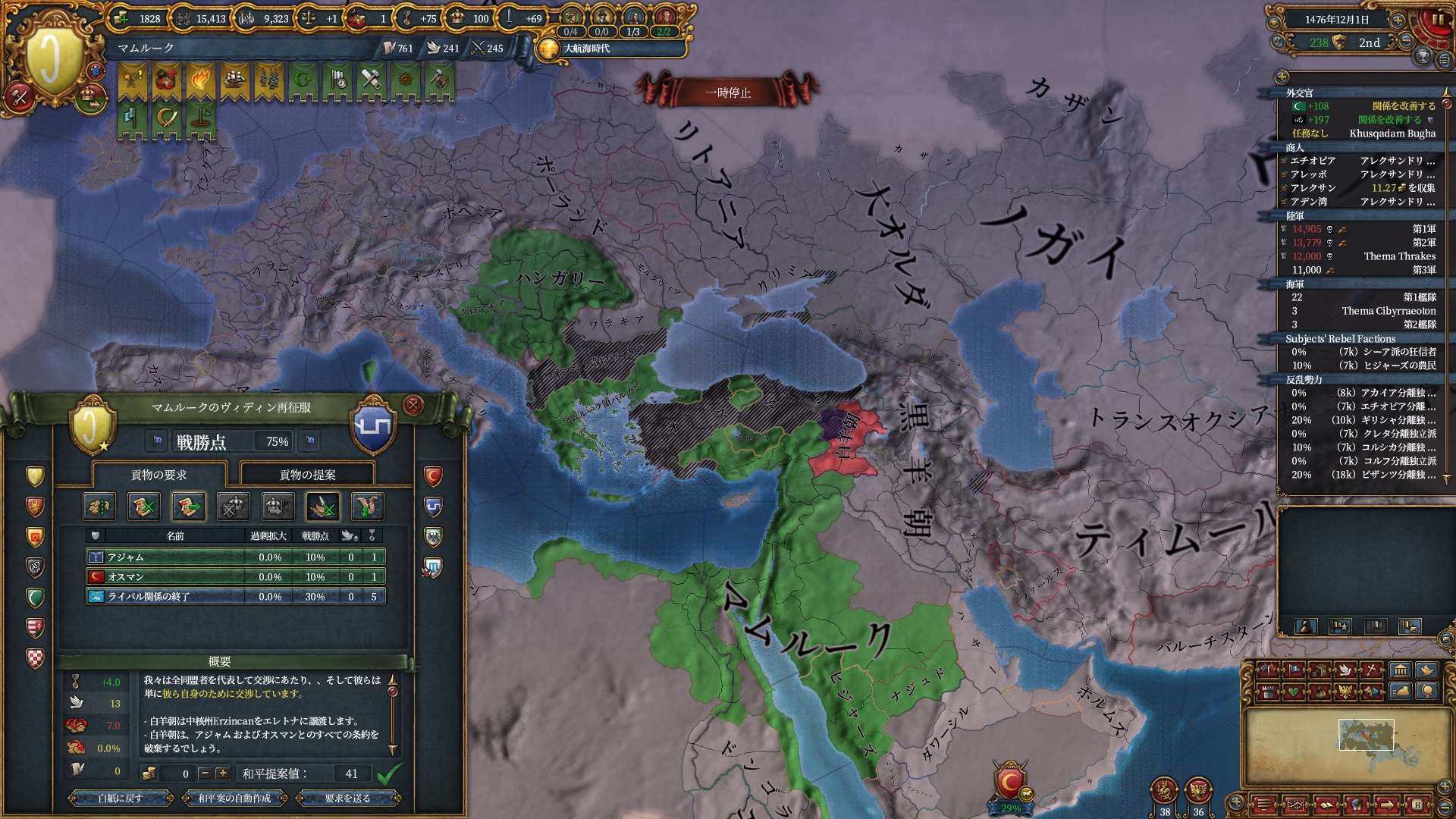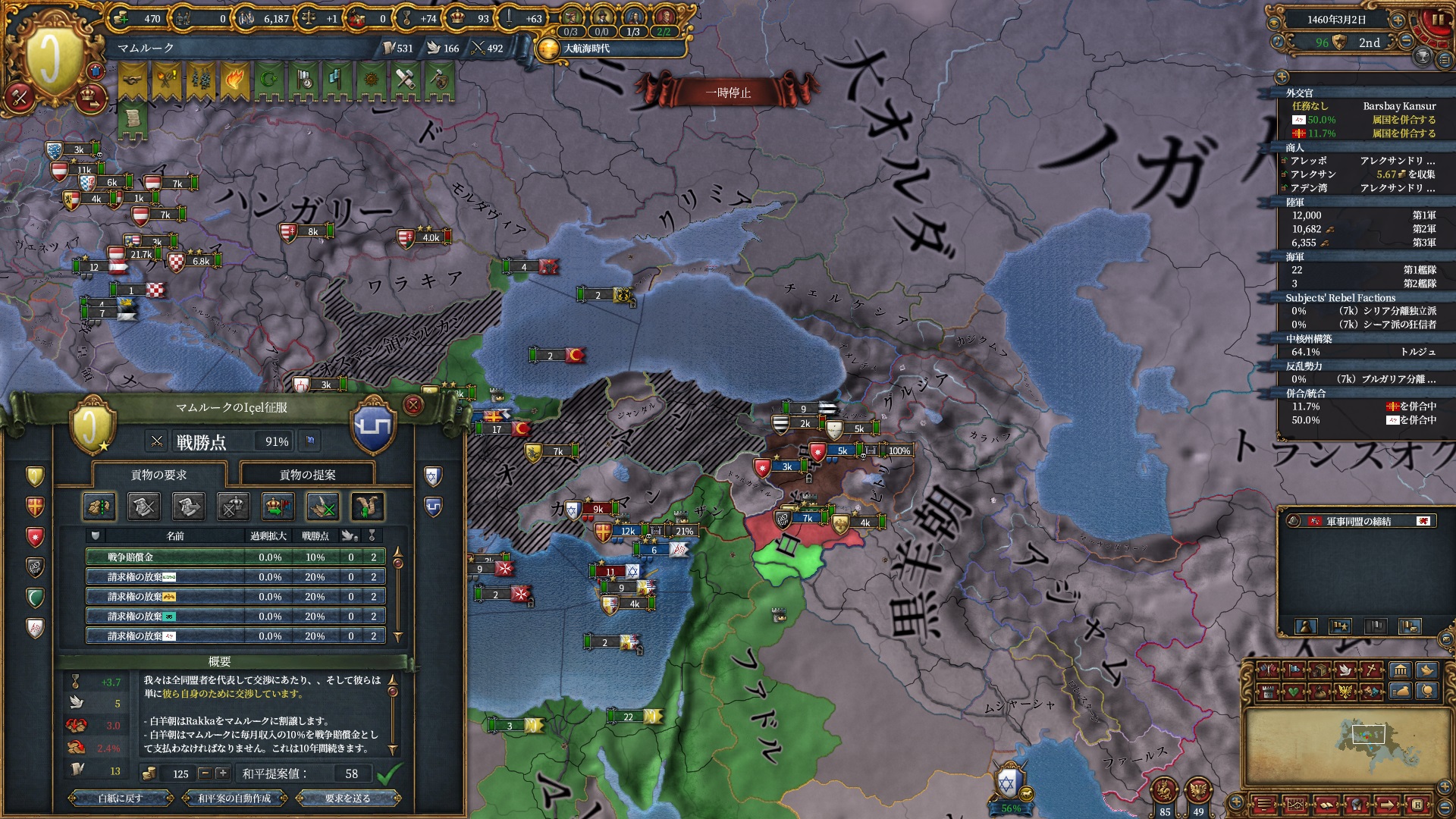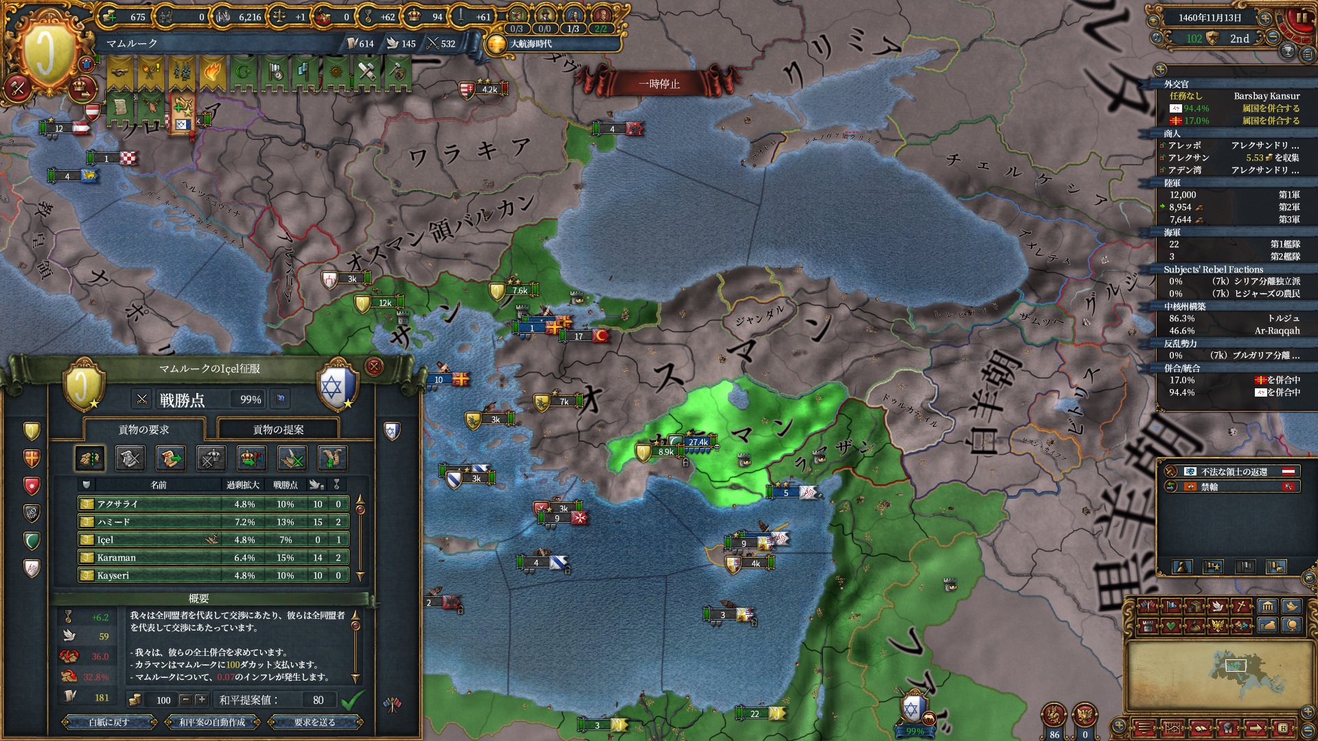 戦争中にクリミア属国イベントが発生し、オスマンは少しパワーアップしていました。