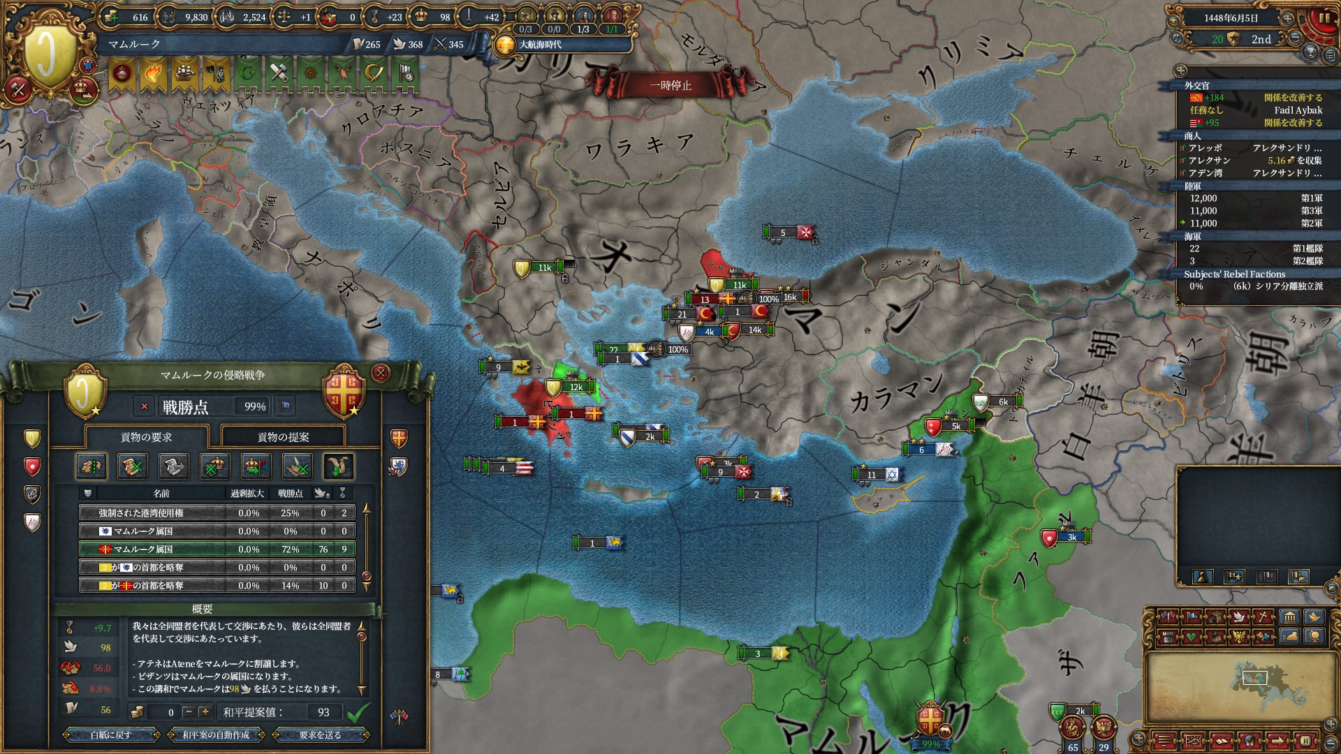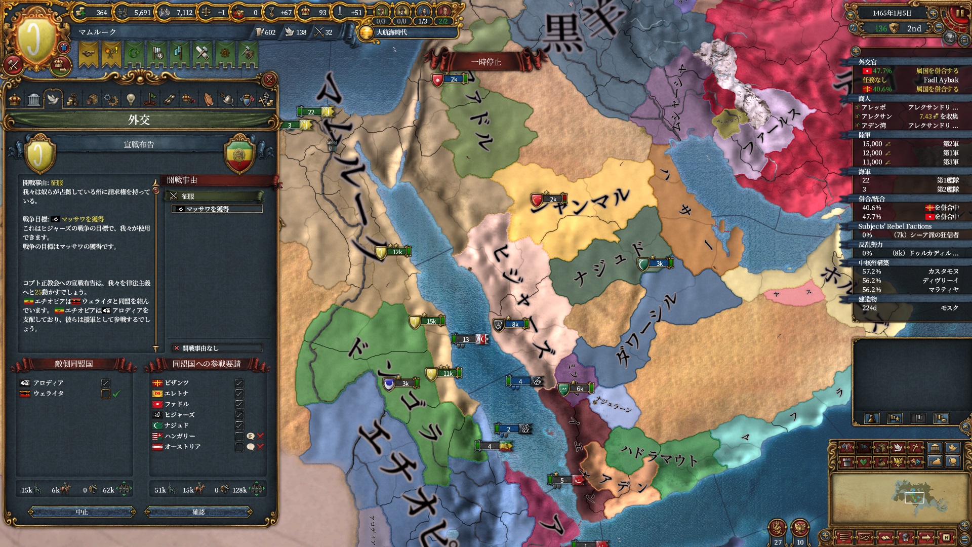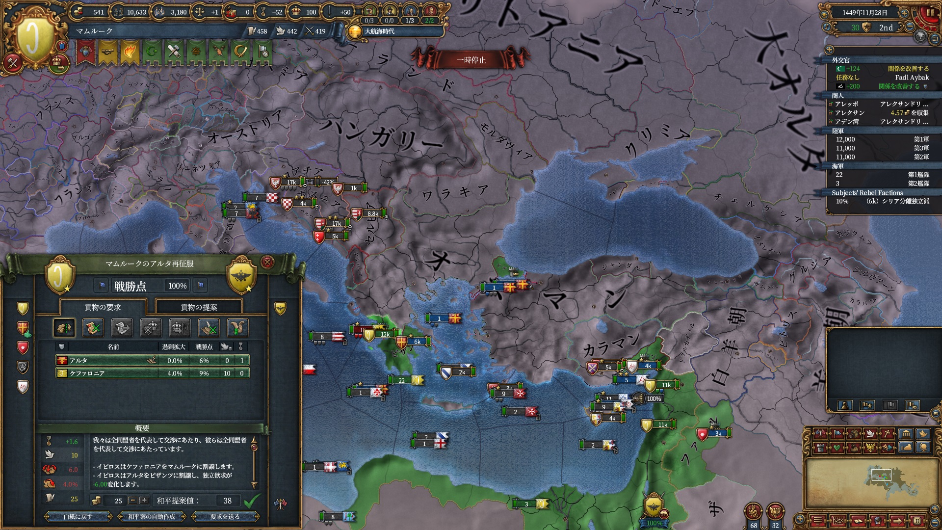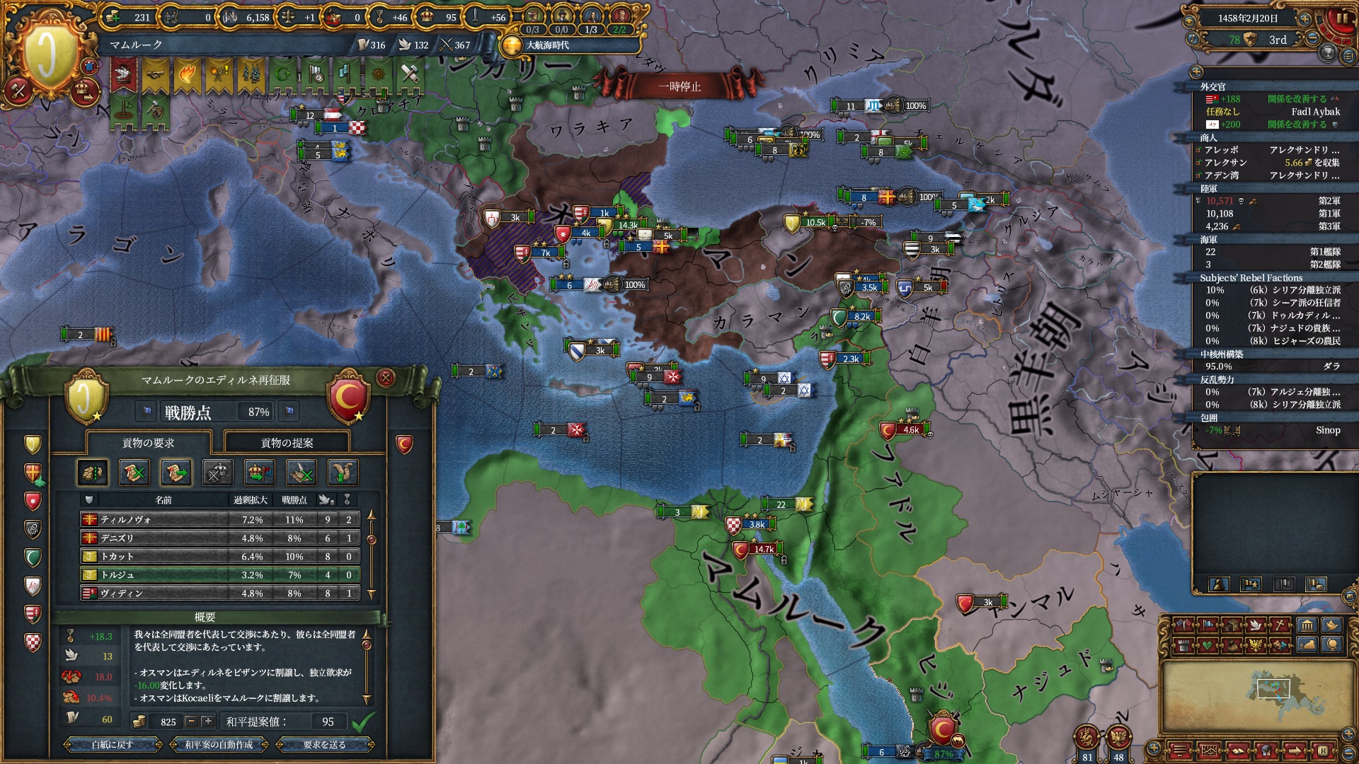 戦争中にクリミア属国イベントが発生し、オスマンは少しパワーアップしていました。