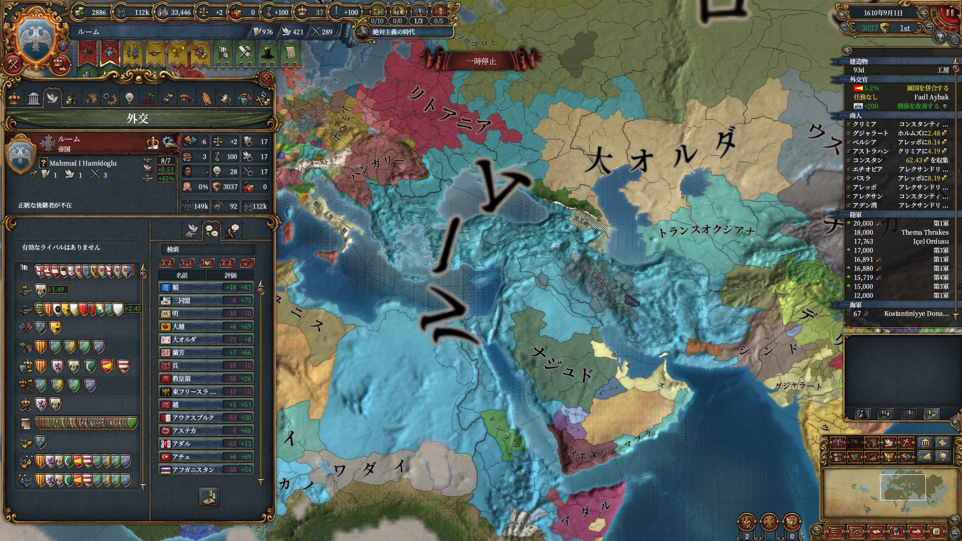 ちょっと逸れますが、絶対主義解禁したのにこの君主力は割としんどい・・・