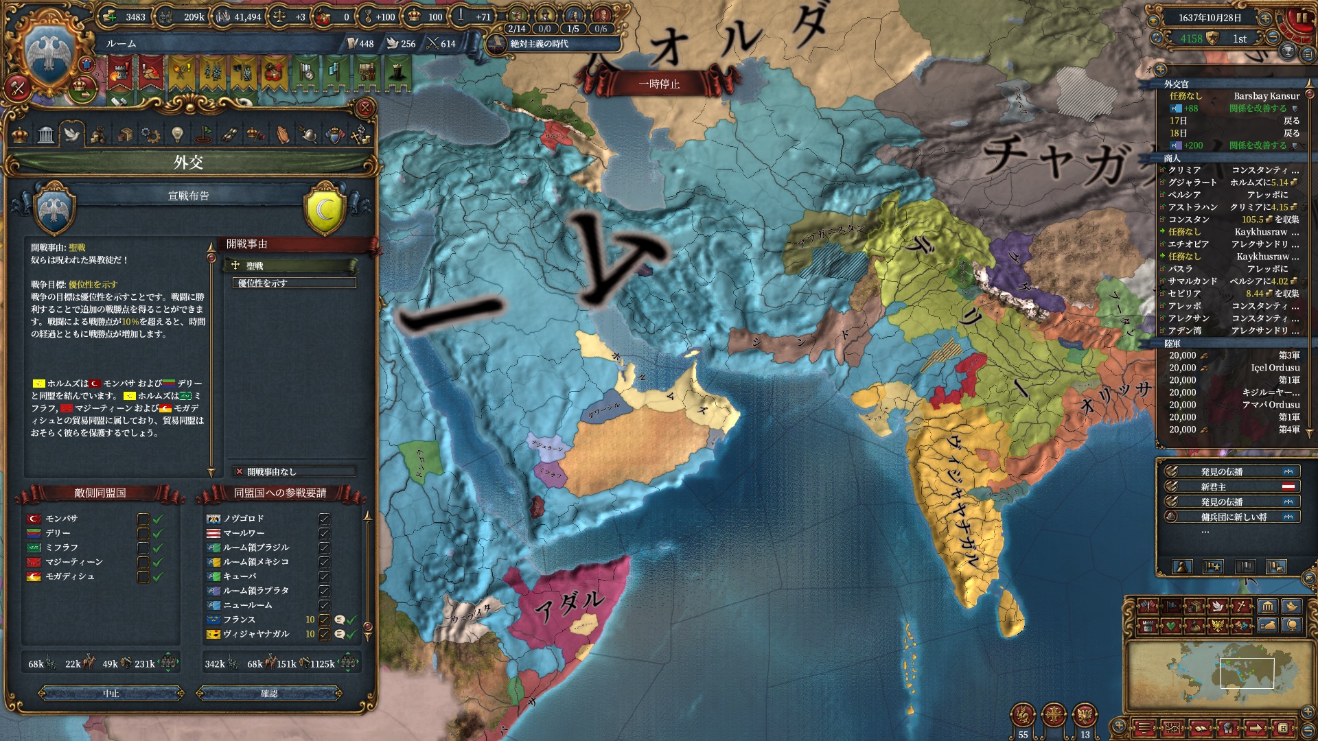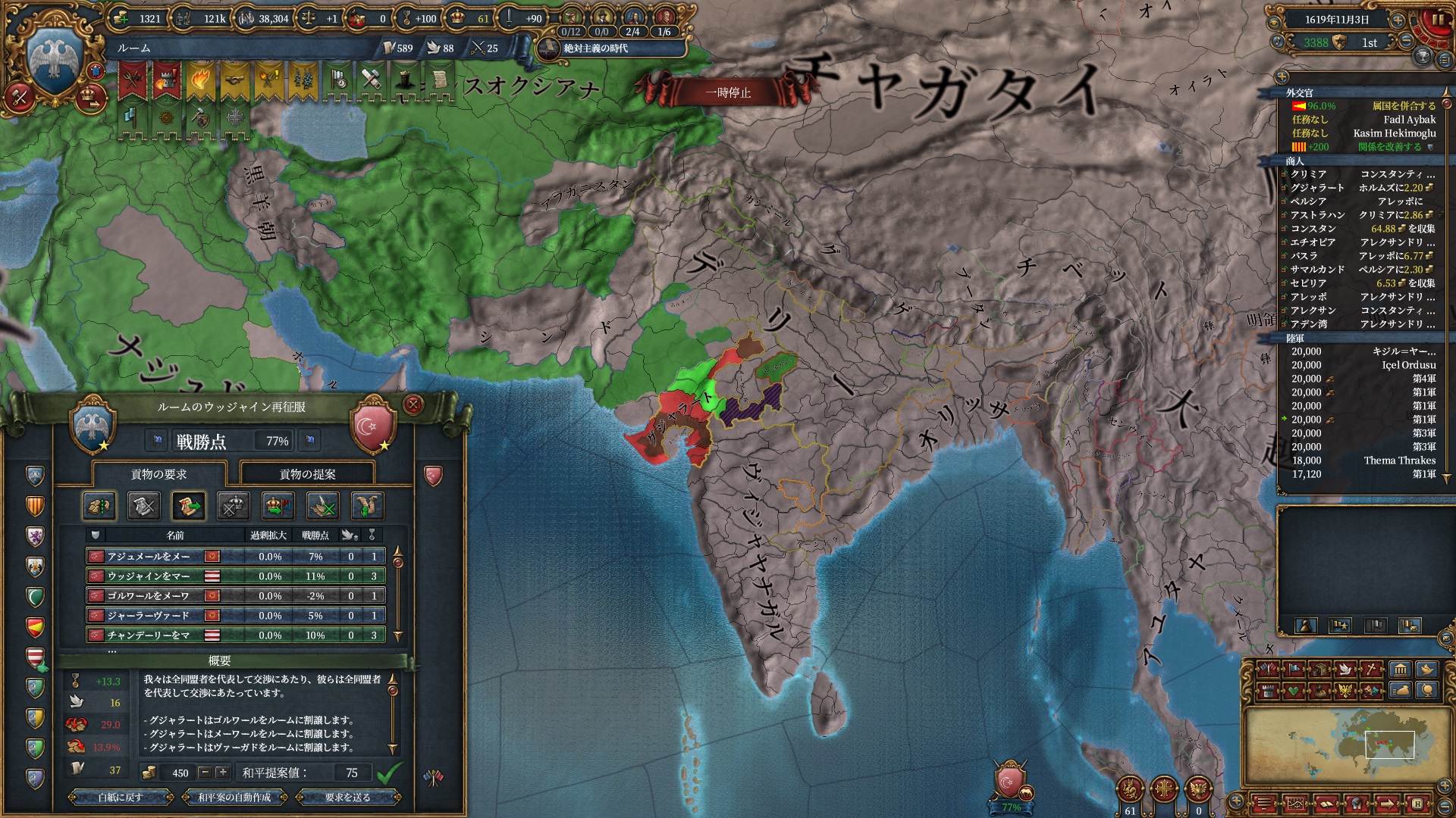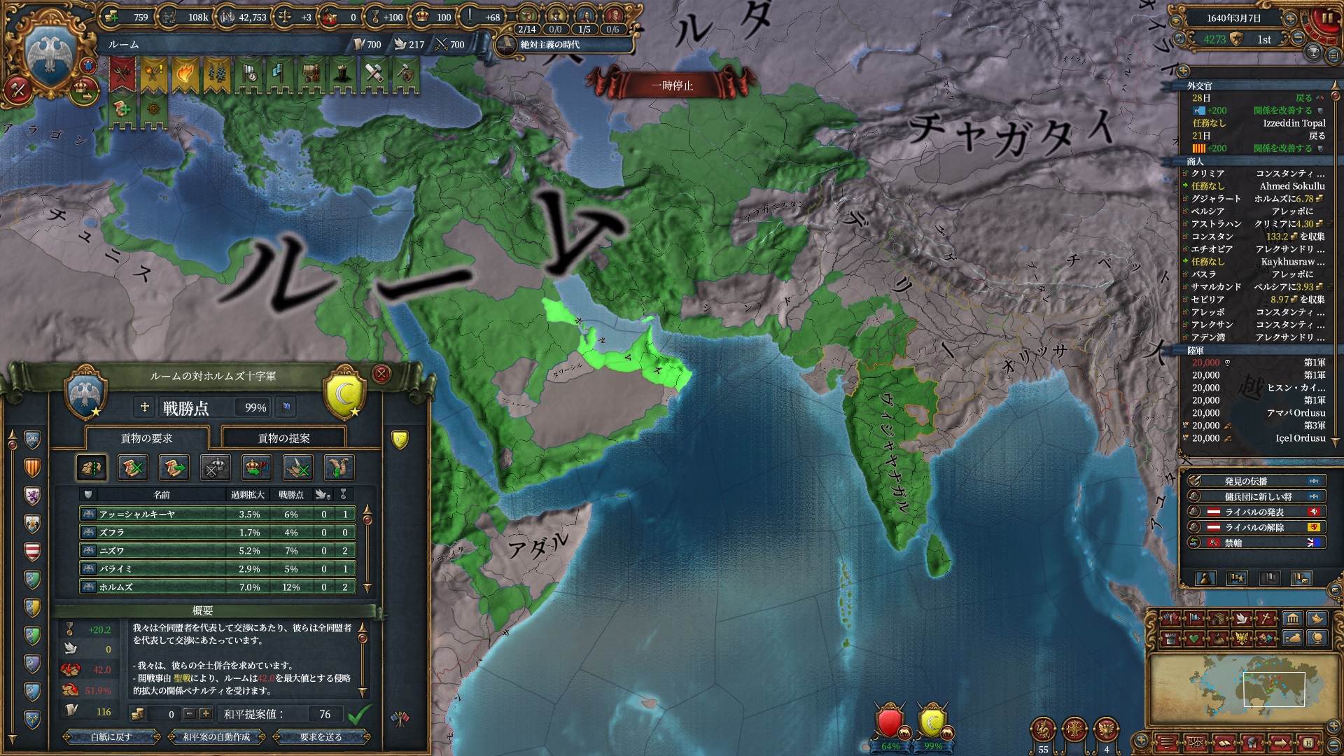 デリーを殴る準備は整いました。ホルムズは勿論全土併合です。