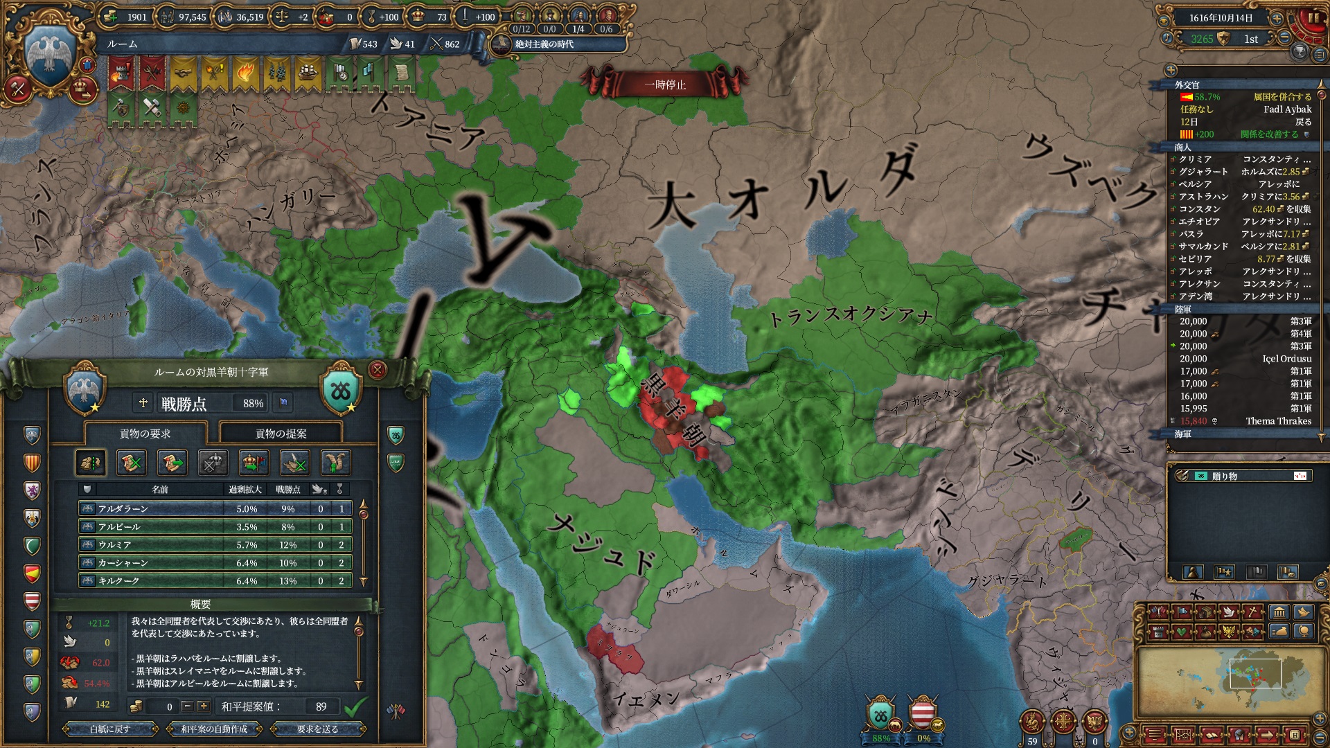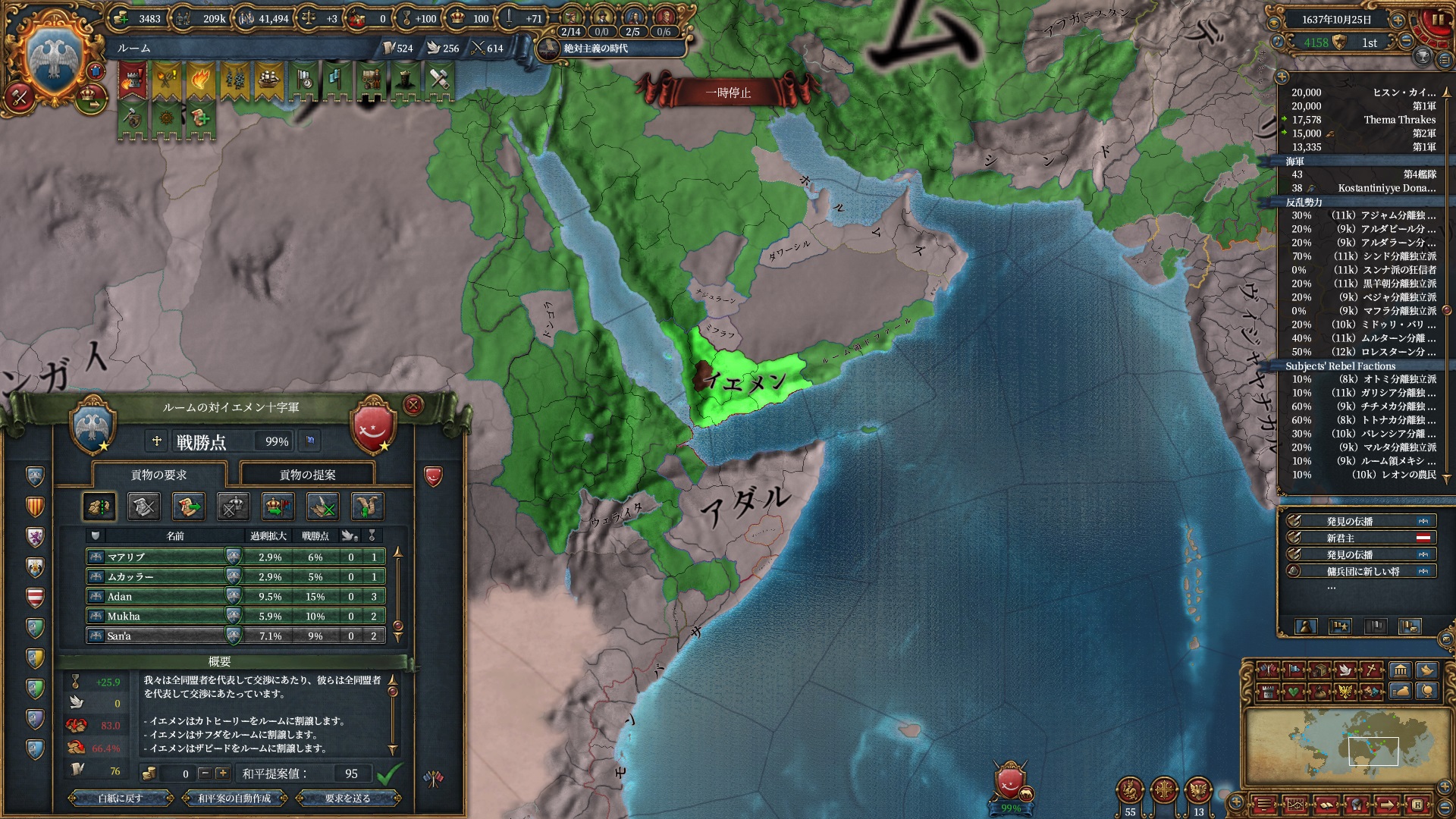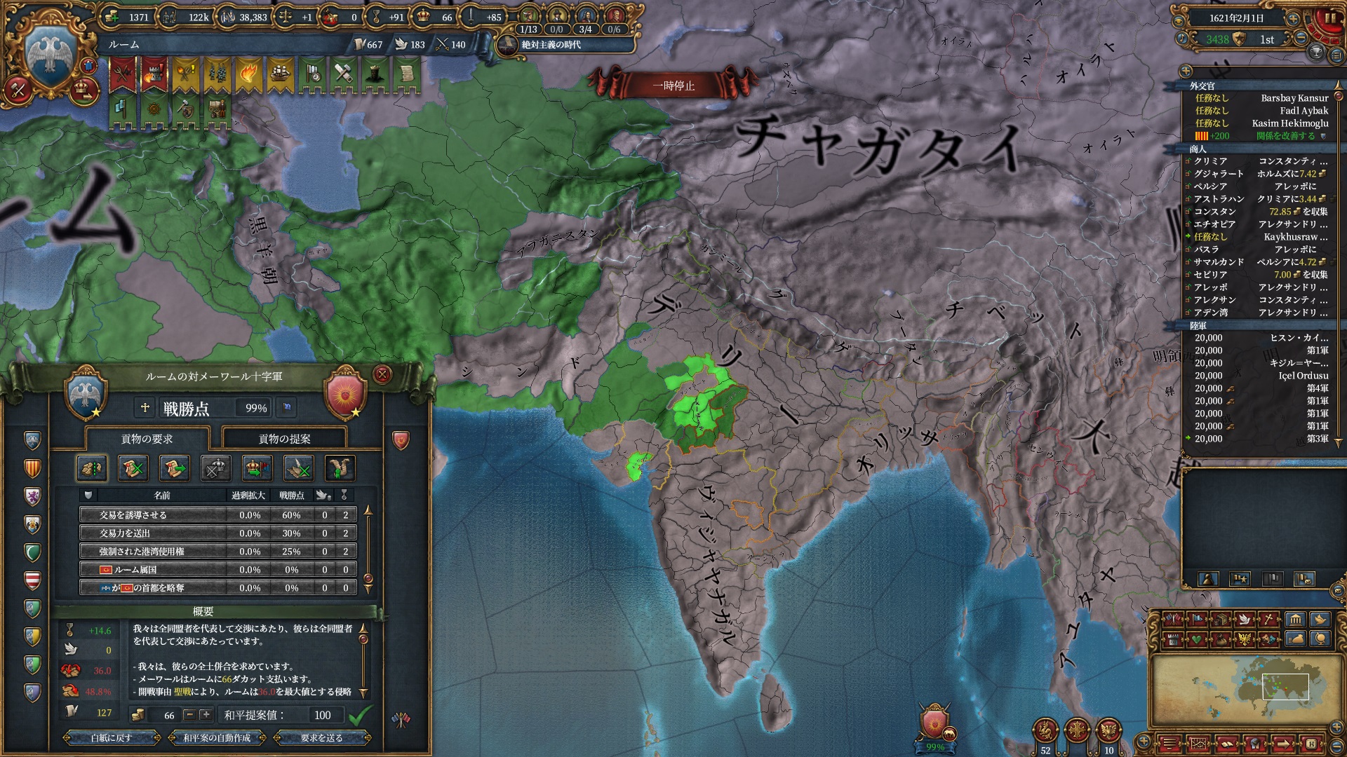 デリーを殴る準備は整いました。ホルムズは勿論全土併合です。