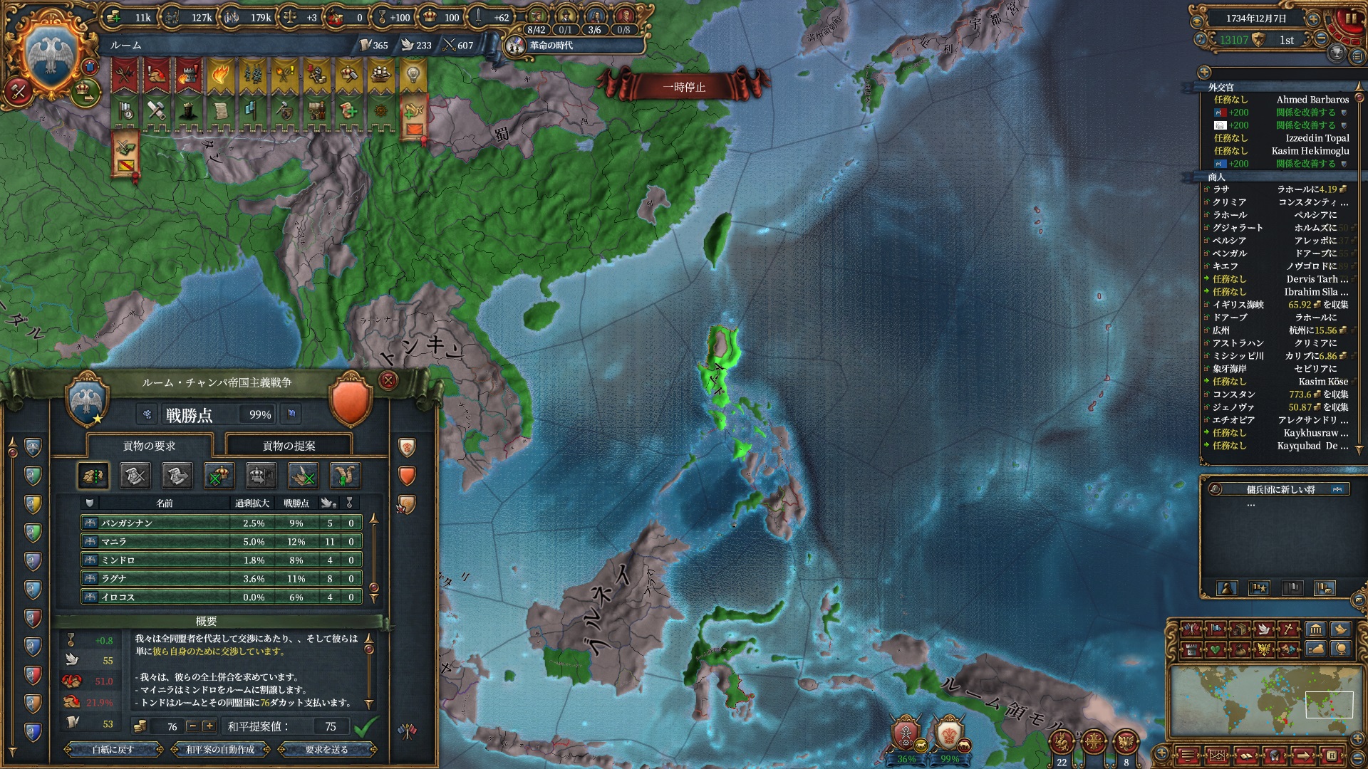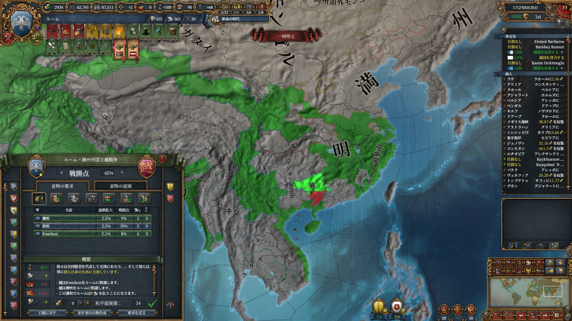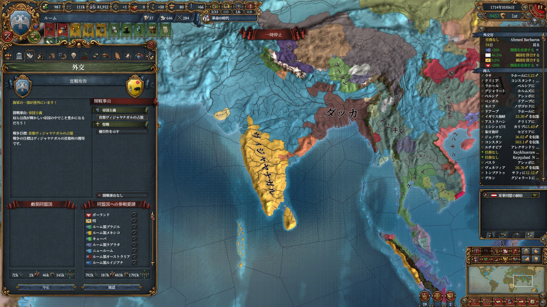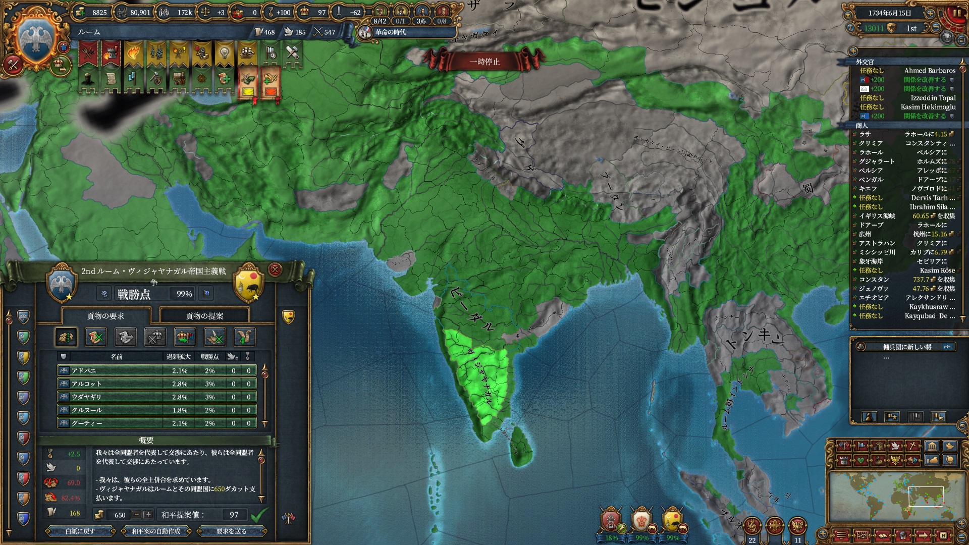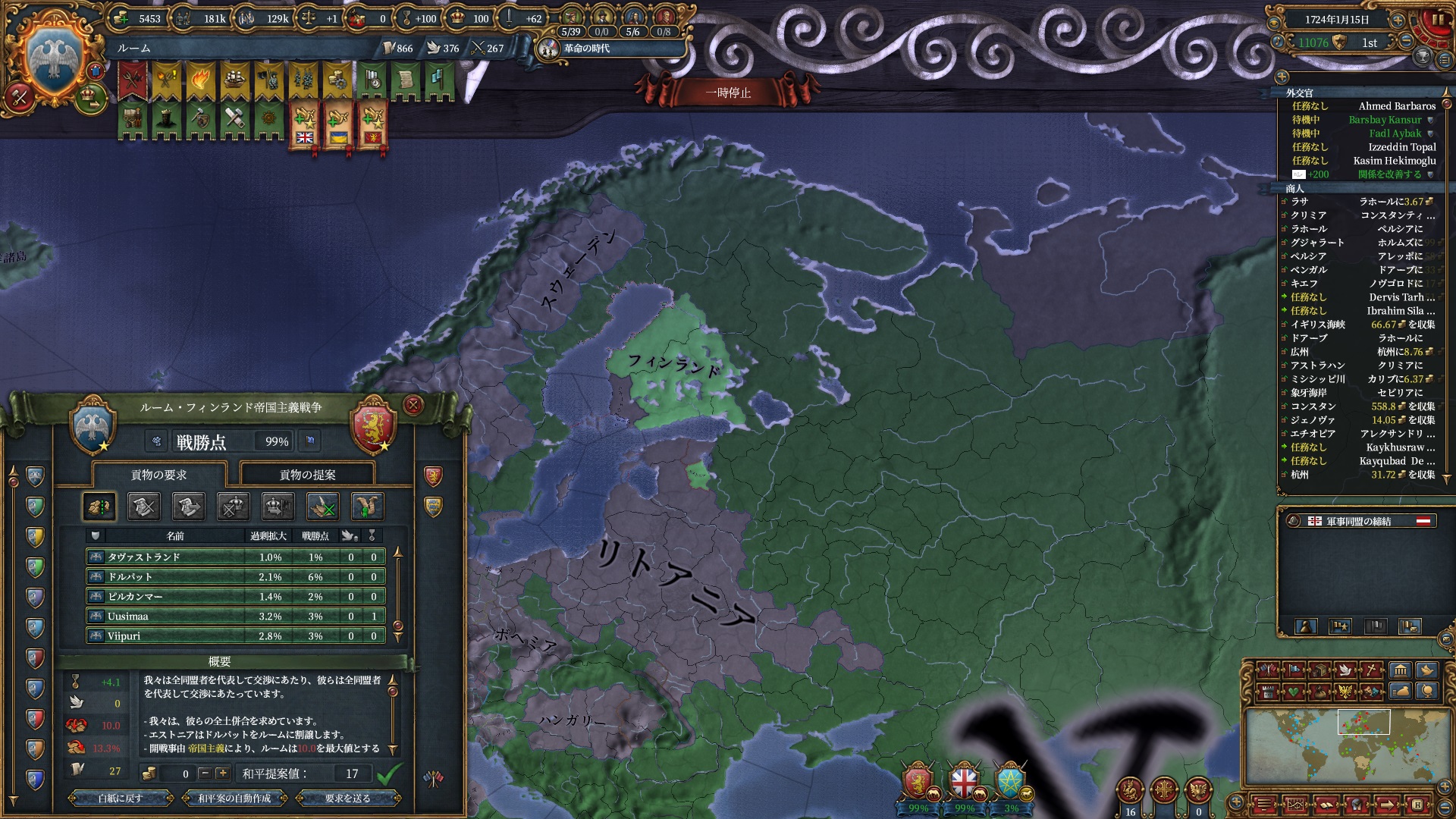 フランス・ボヘミア・ヴィジャヤナガル(・満州)を蹴散らして残りは消化試合に持っていきます。