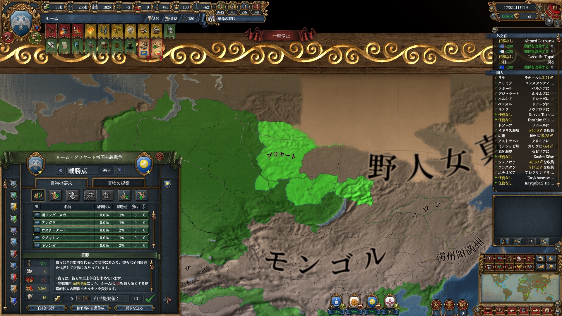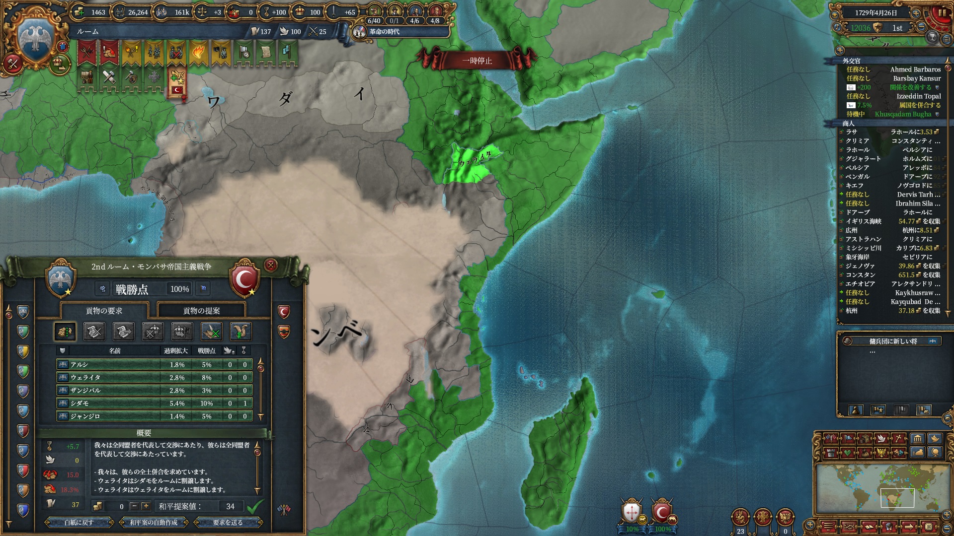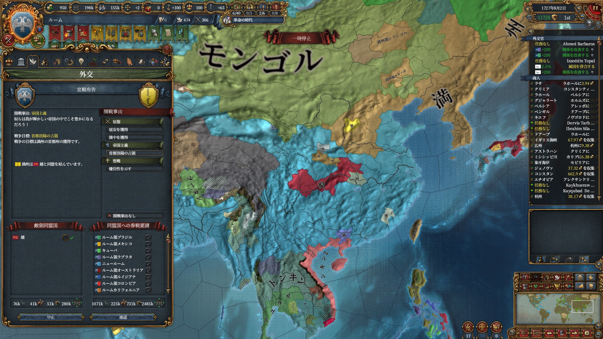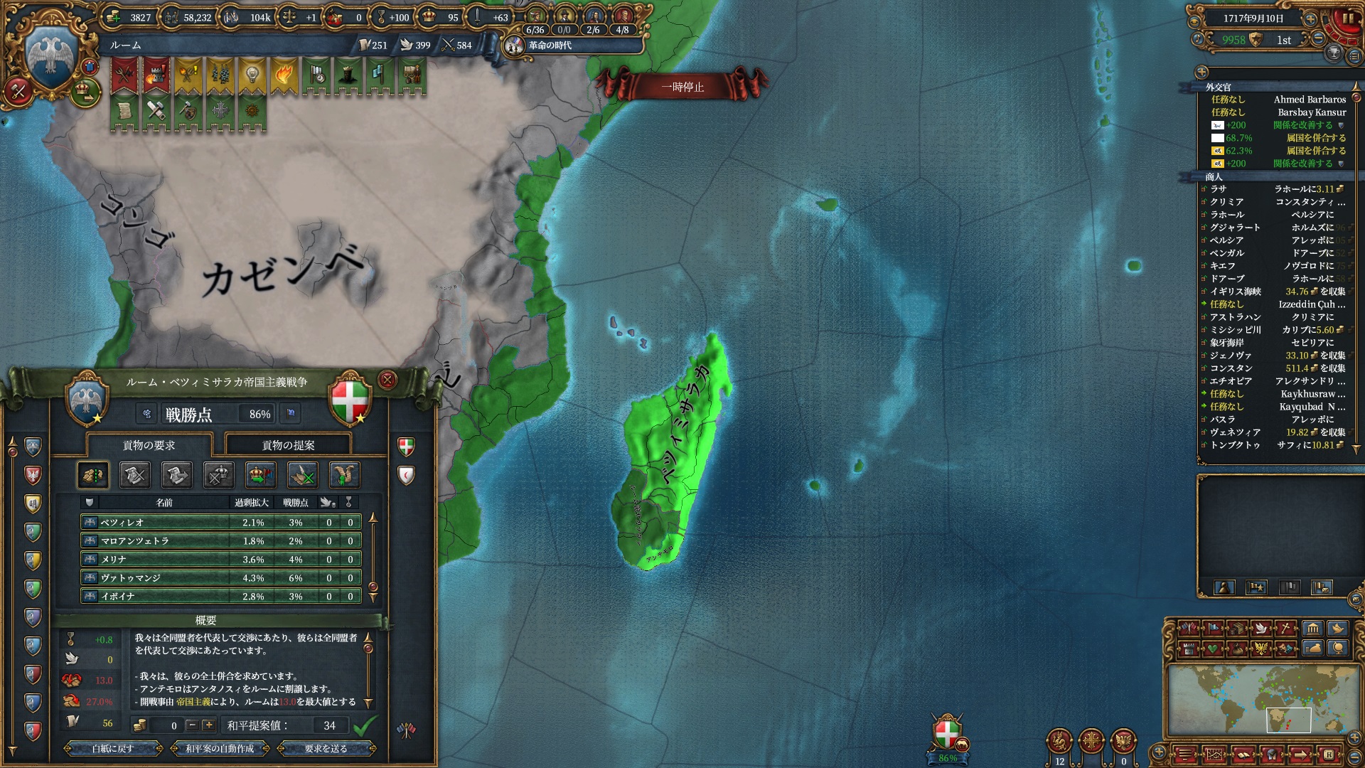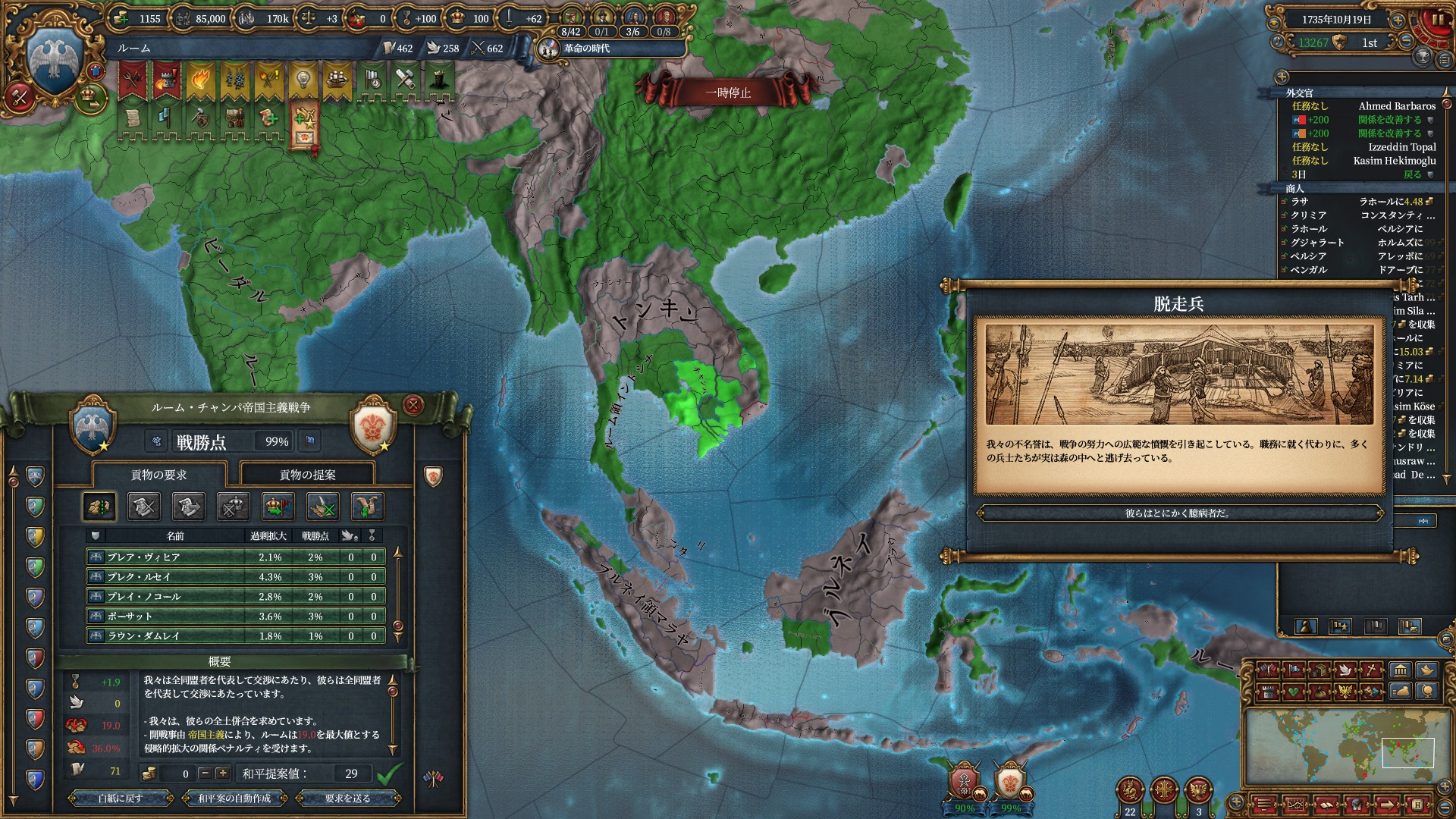 フランス・ボヘミア・ヴィジャヤナガル(・満州)を蹴散らして残りは消化試合に持っていきます。