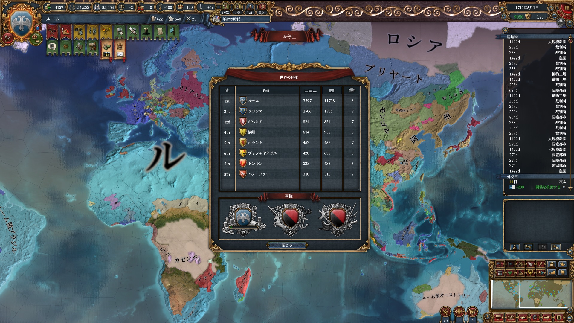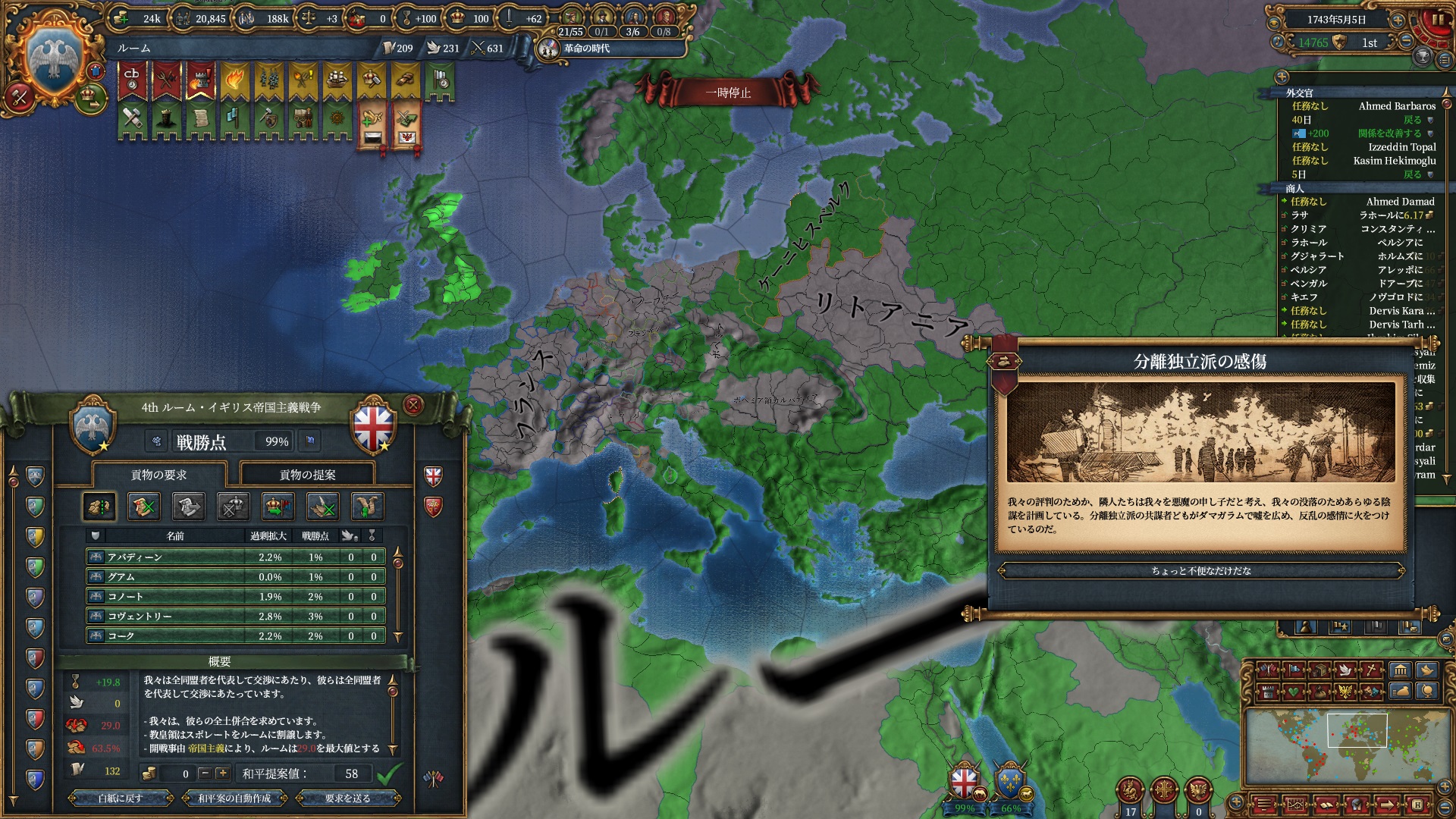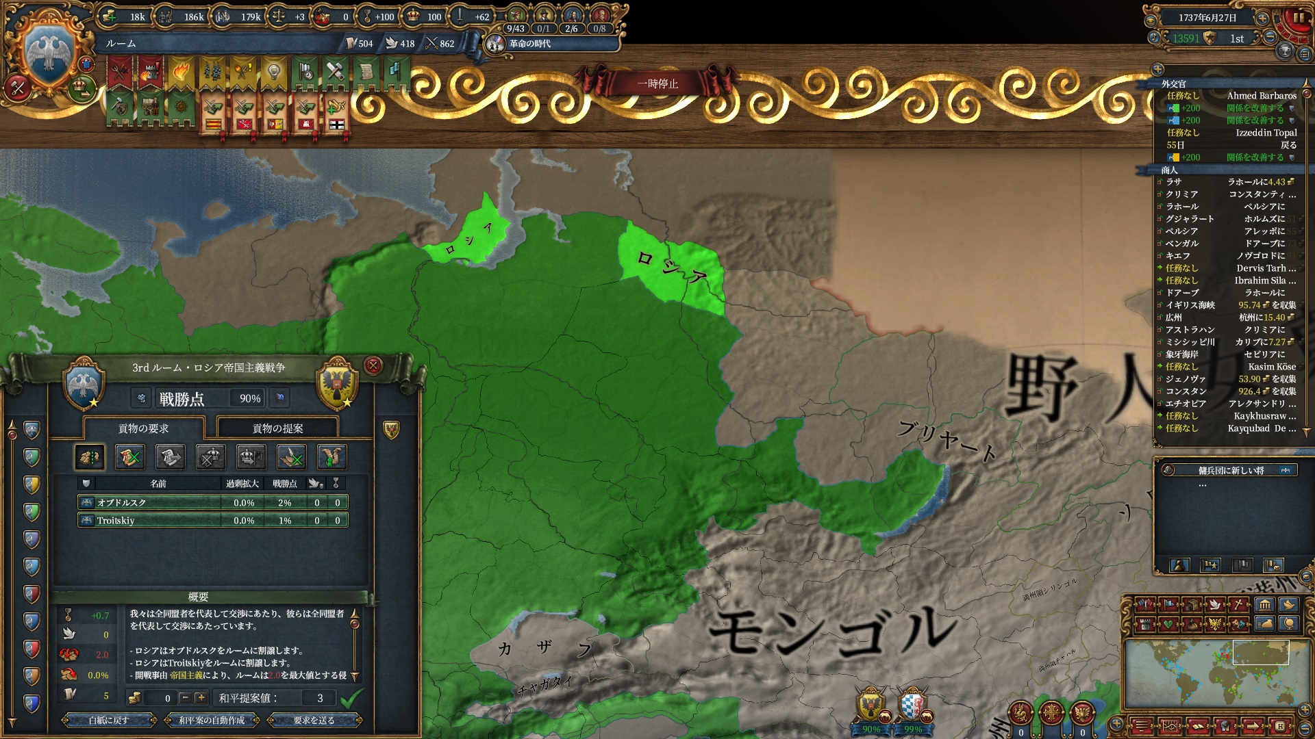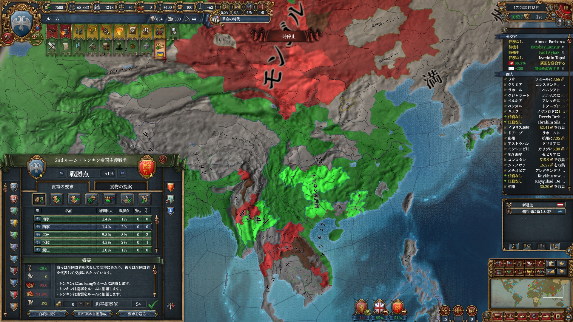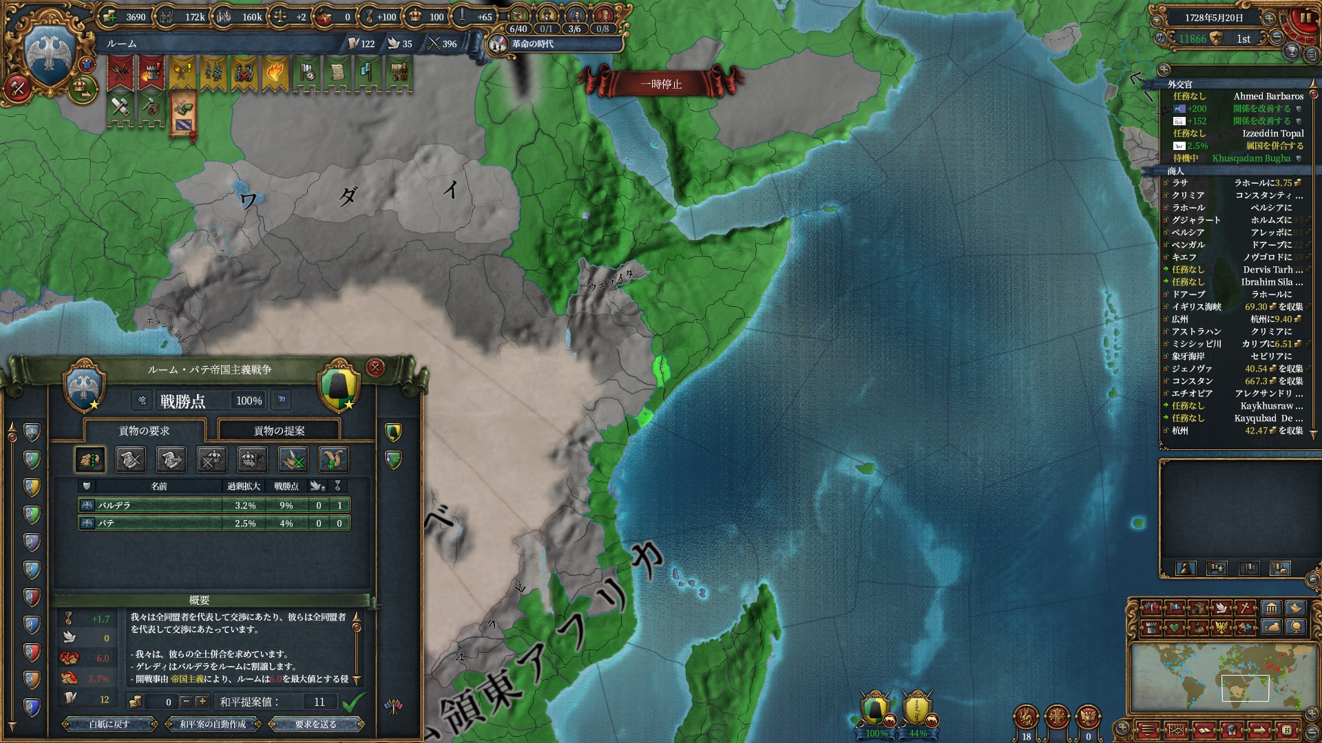 フランス・ボヘミア・ヴィジャヤナガル(・満州)を蹴散らして残りは消化試合に持っていきます。