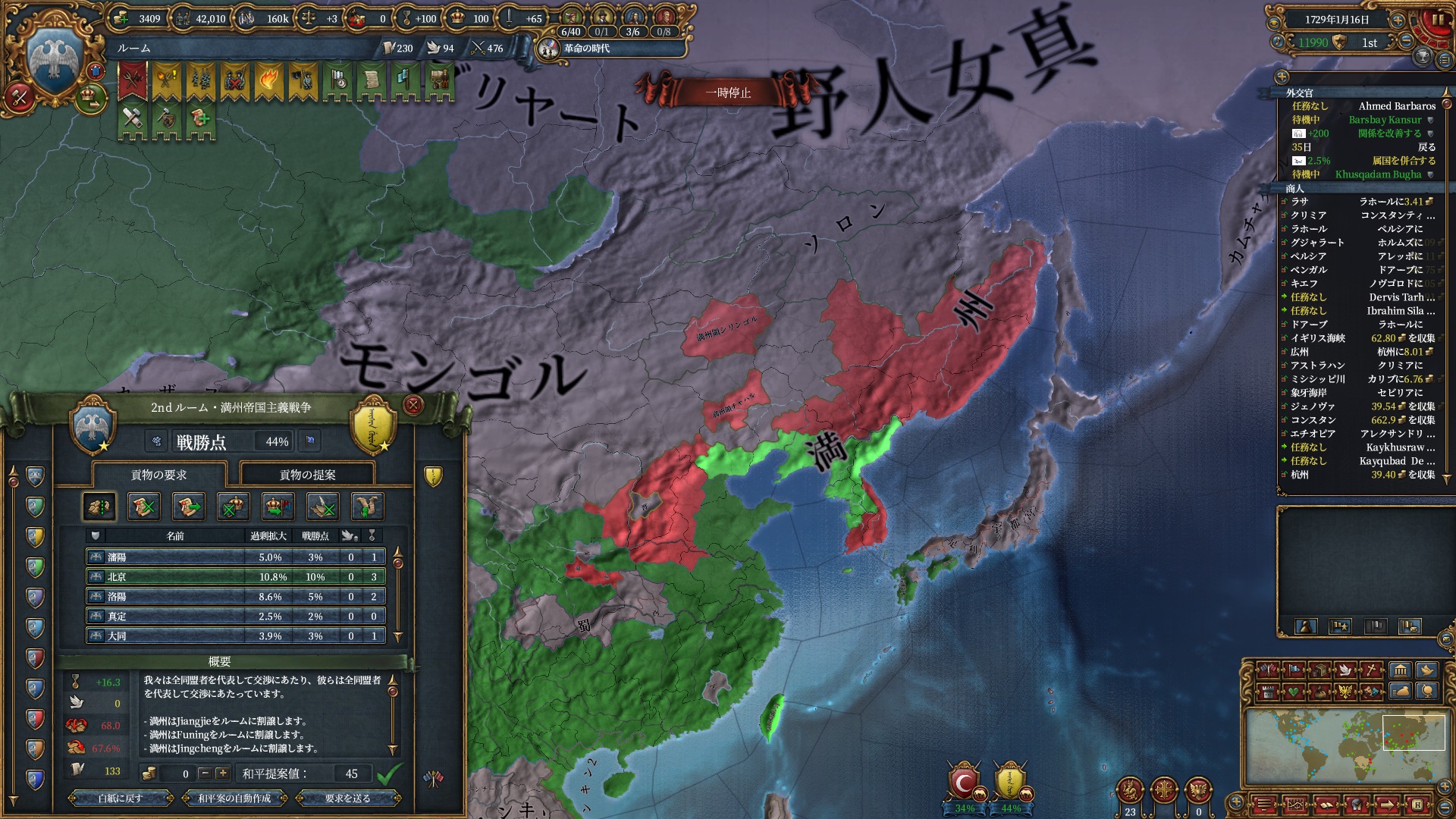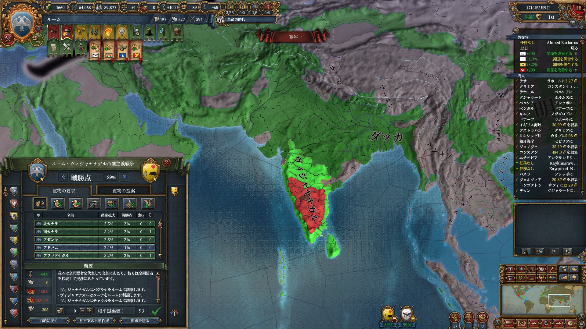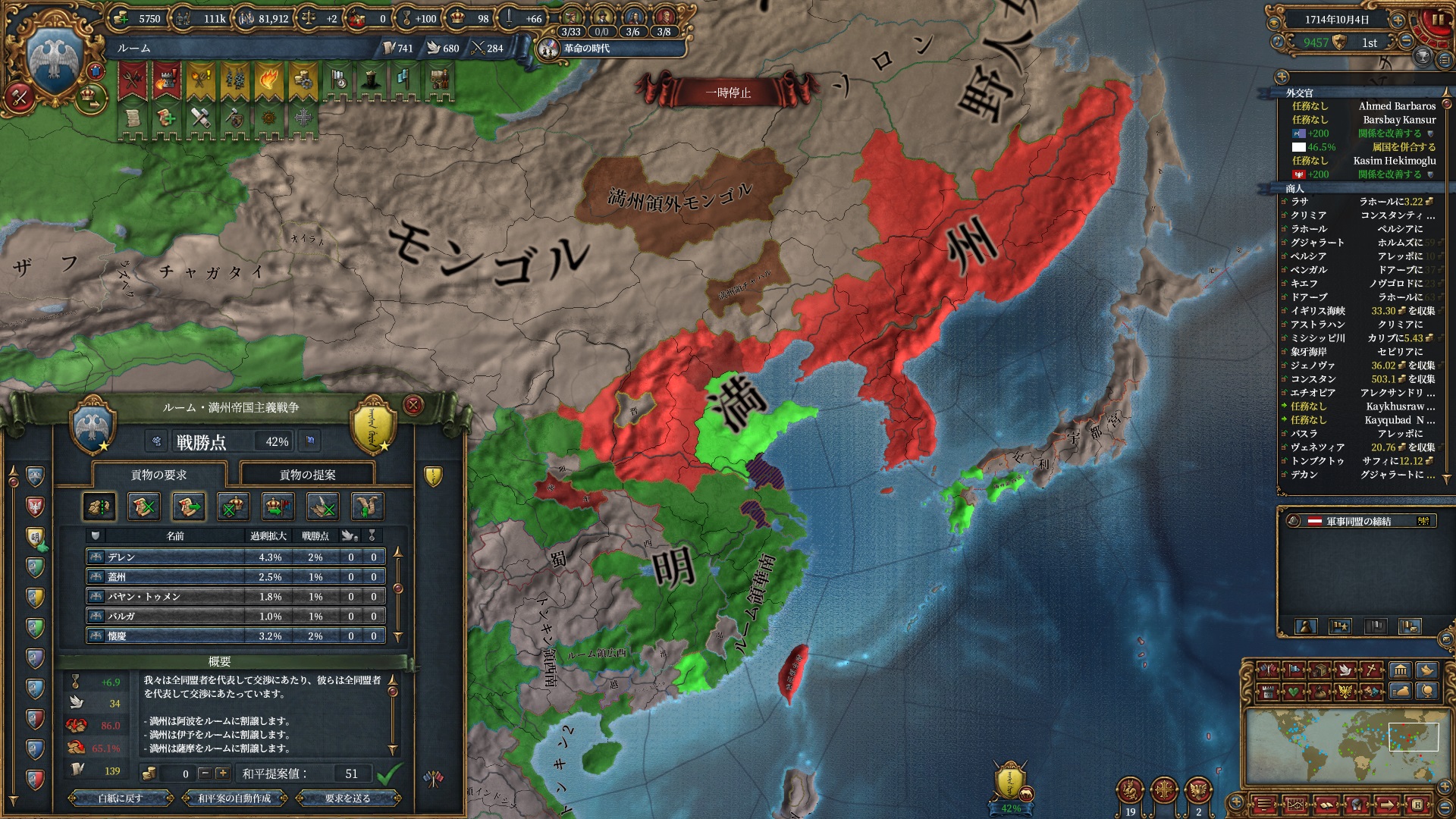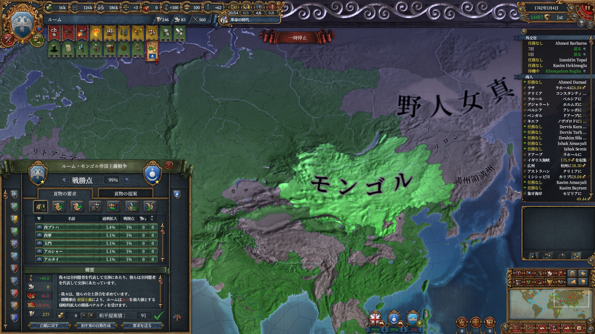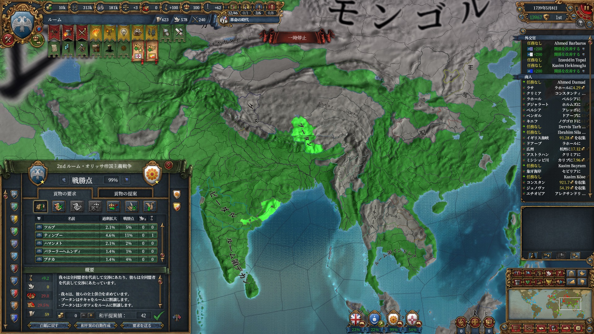 ヴィジャヤナガルが停戦明けとなりすぐ向かいたいのもありますが、北京がモンゴルに踏まれてしまったので一旦それなりに回収して終わりとしています。