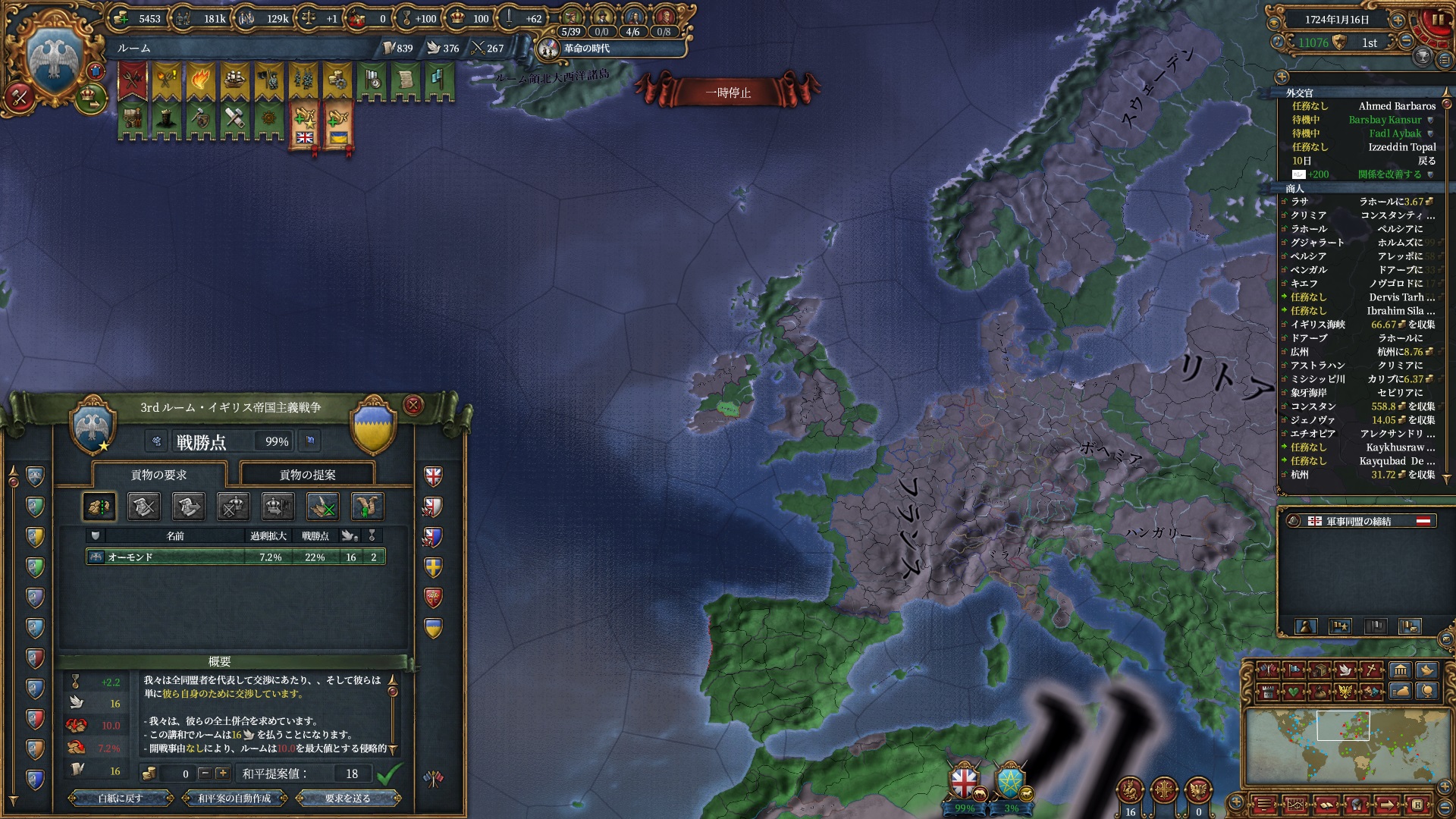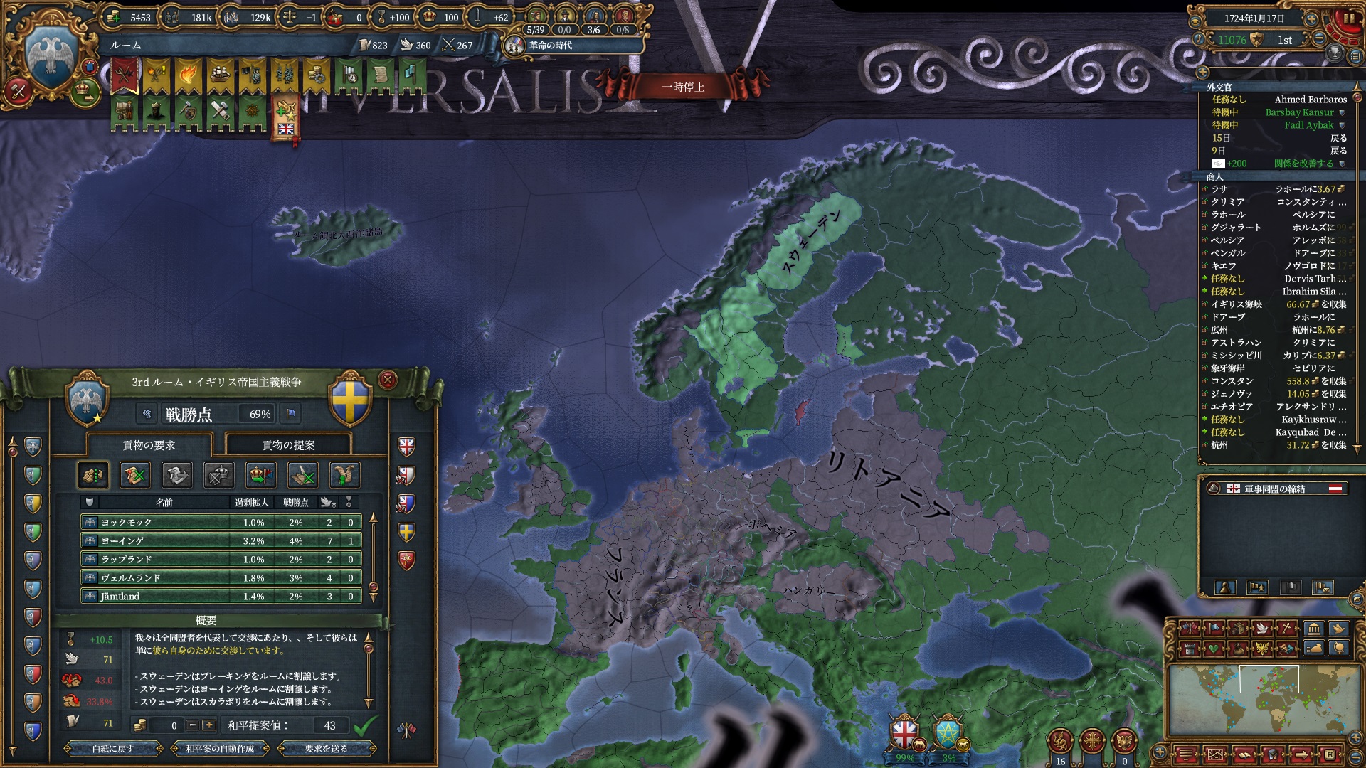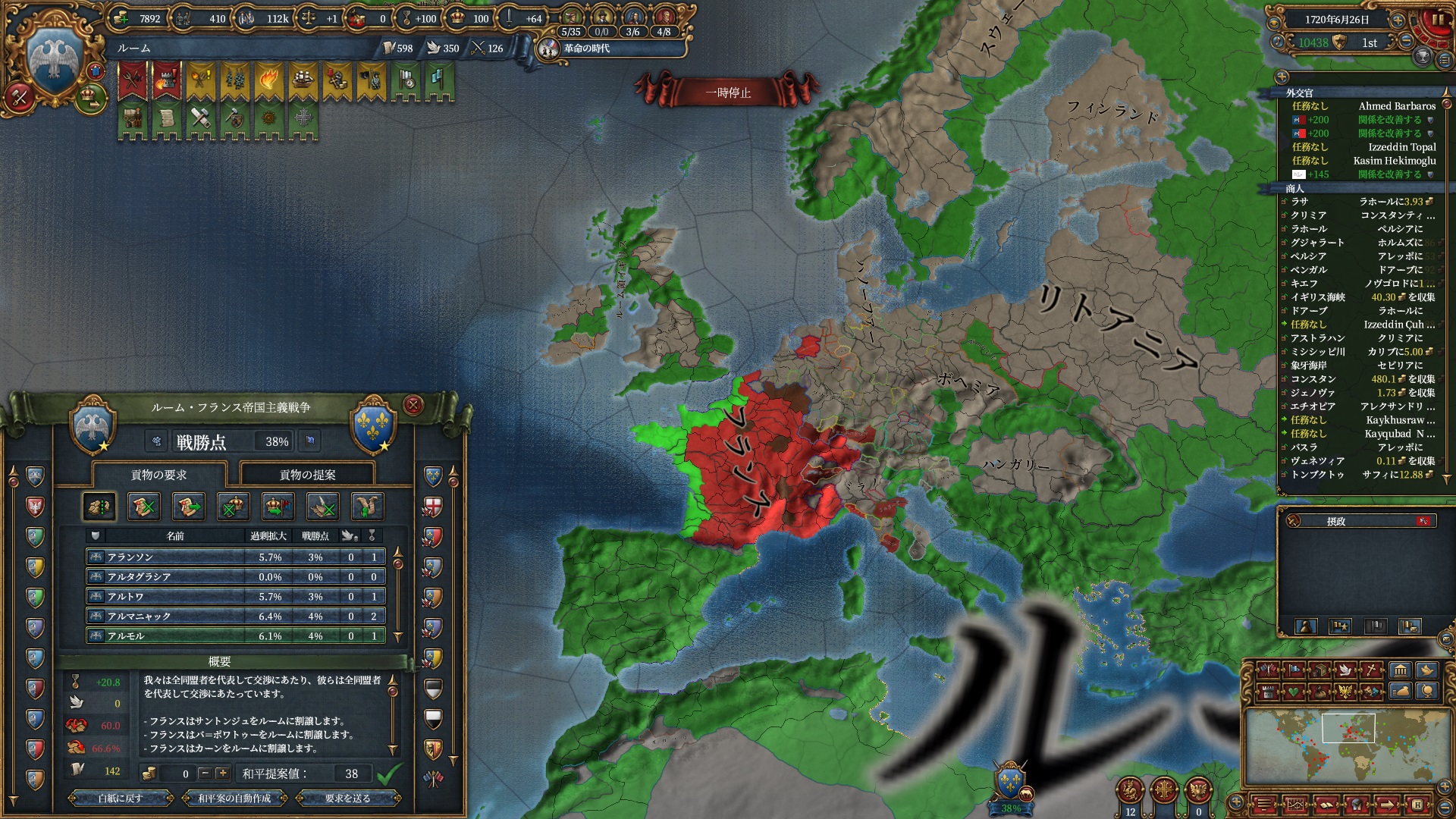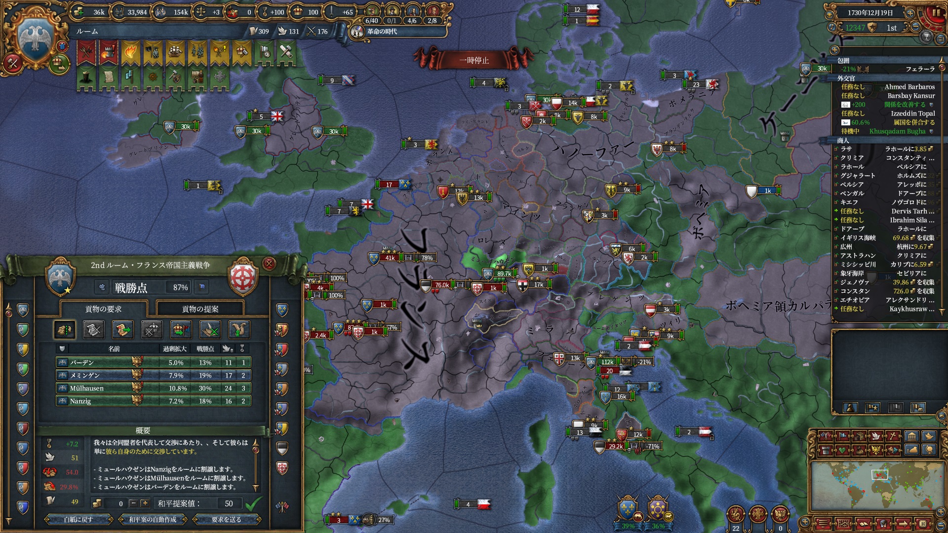 フランスと殴り合いした結果またも人的資源が付きてしまったのでここで講和。