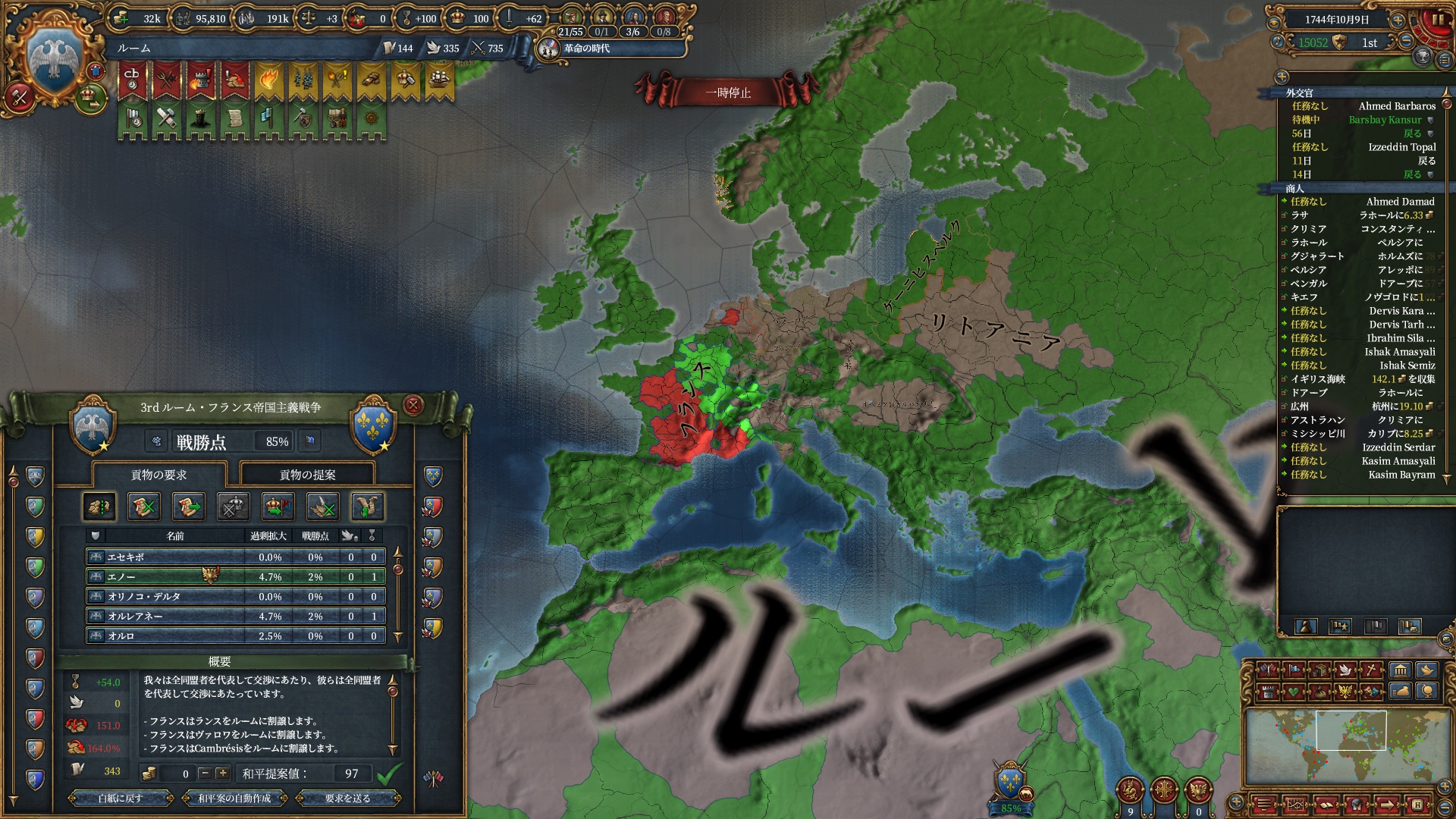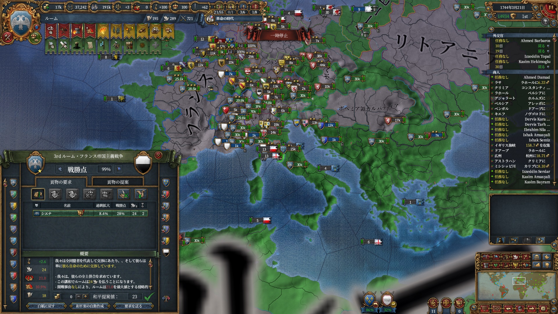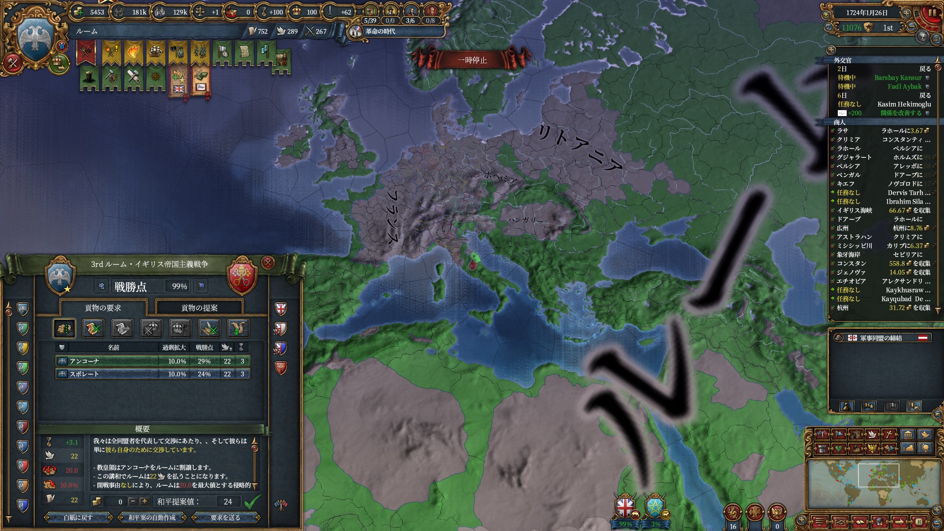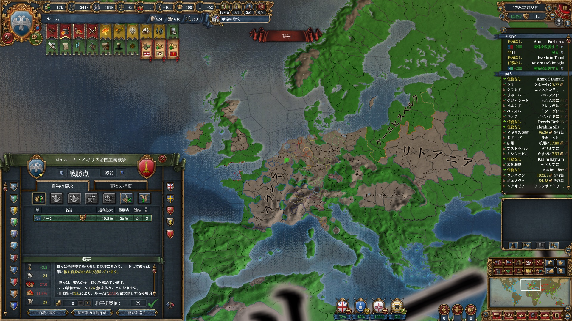 フランスと殴り合いした結果またも人的資源が付きてしまったのでここで講和。