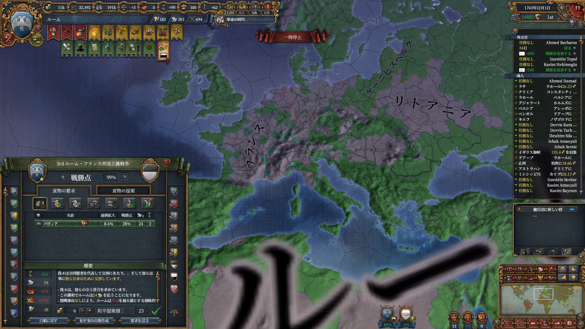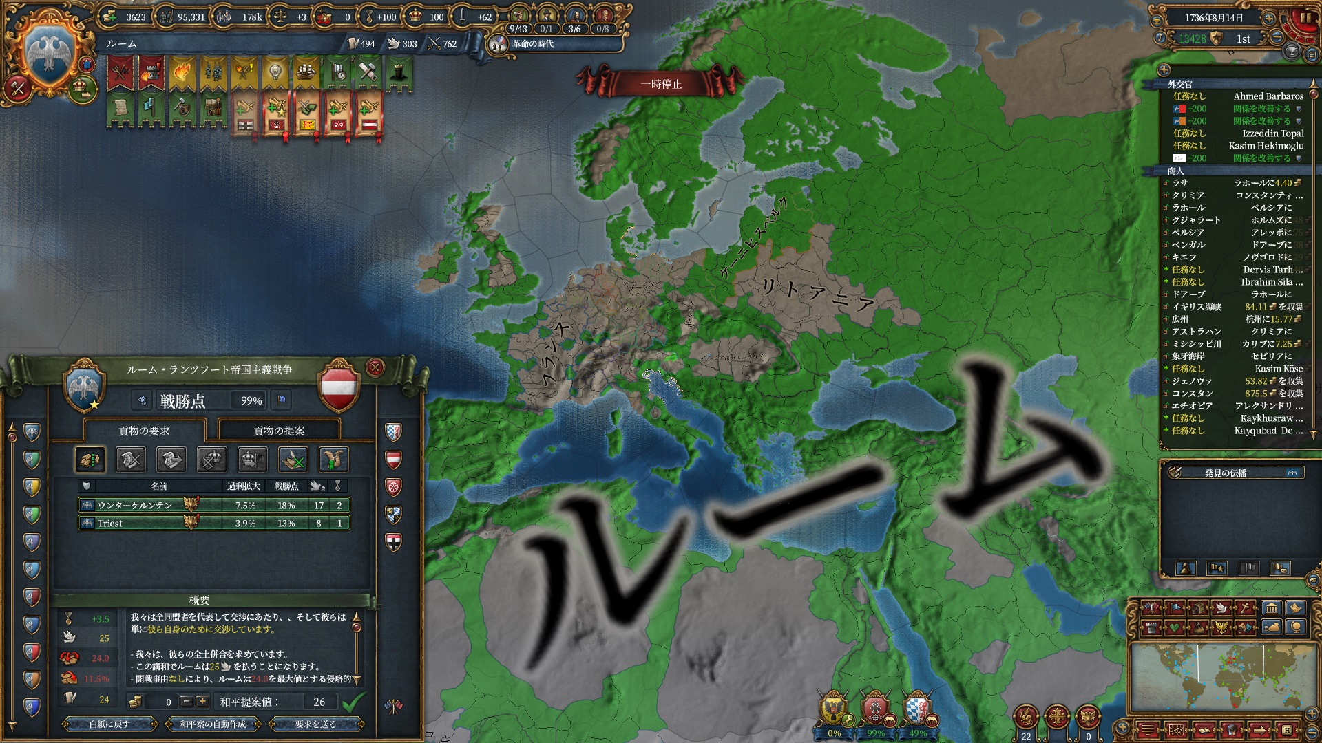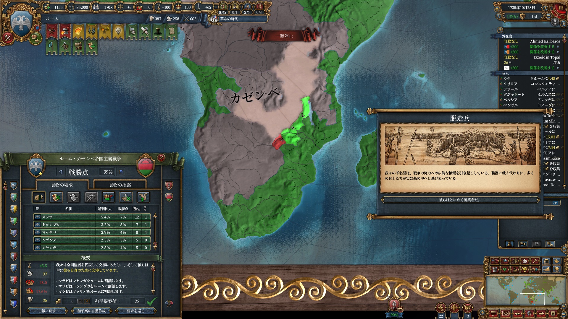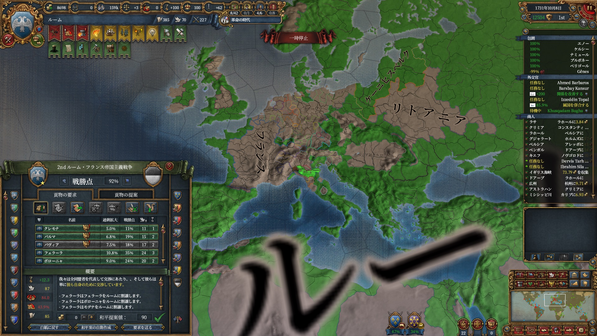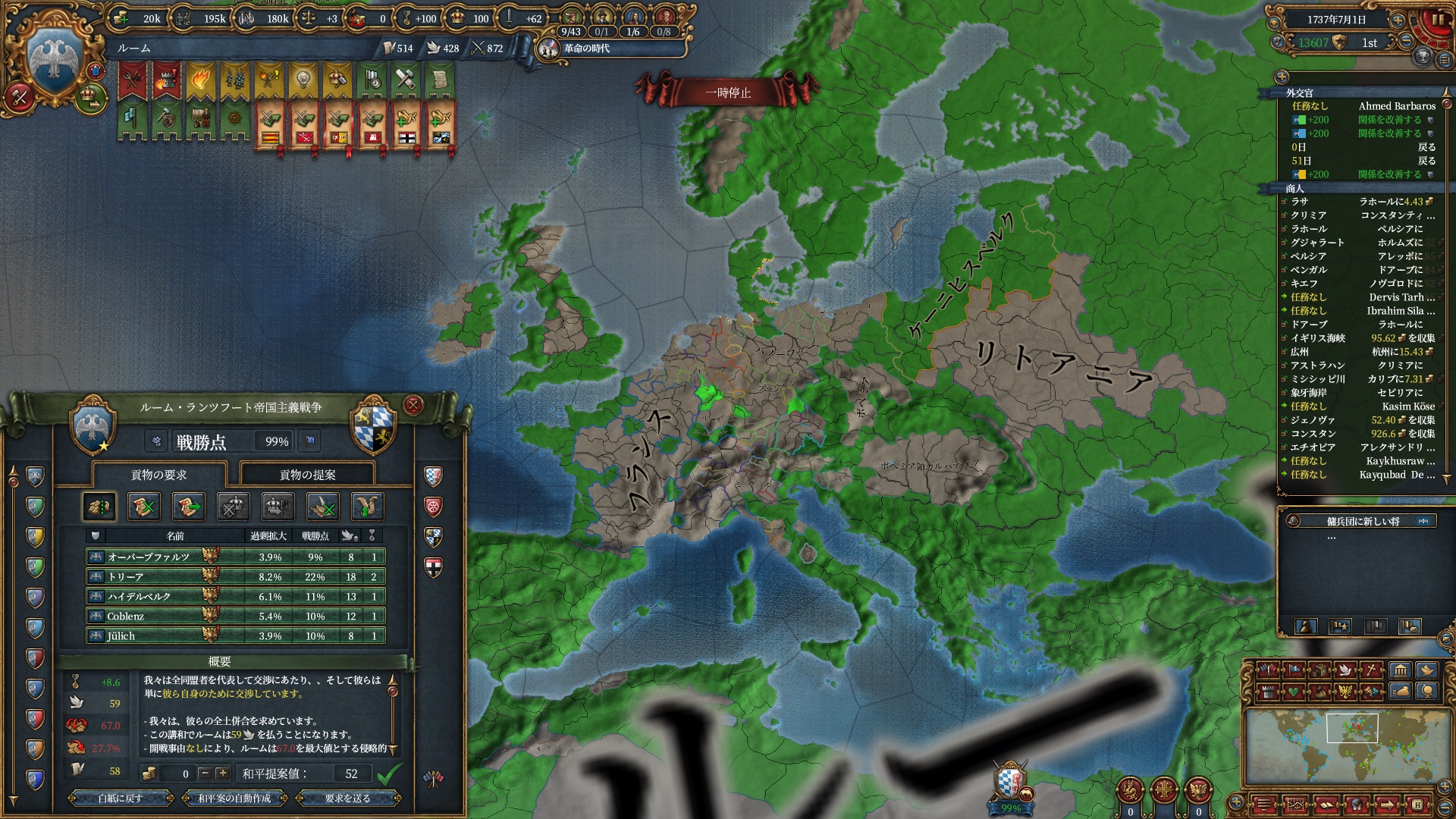 フランスと殴り合いした結果またも人的資源が付きてしまったのでここで講和。