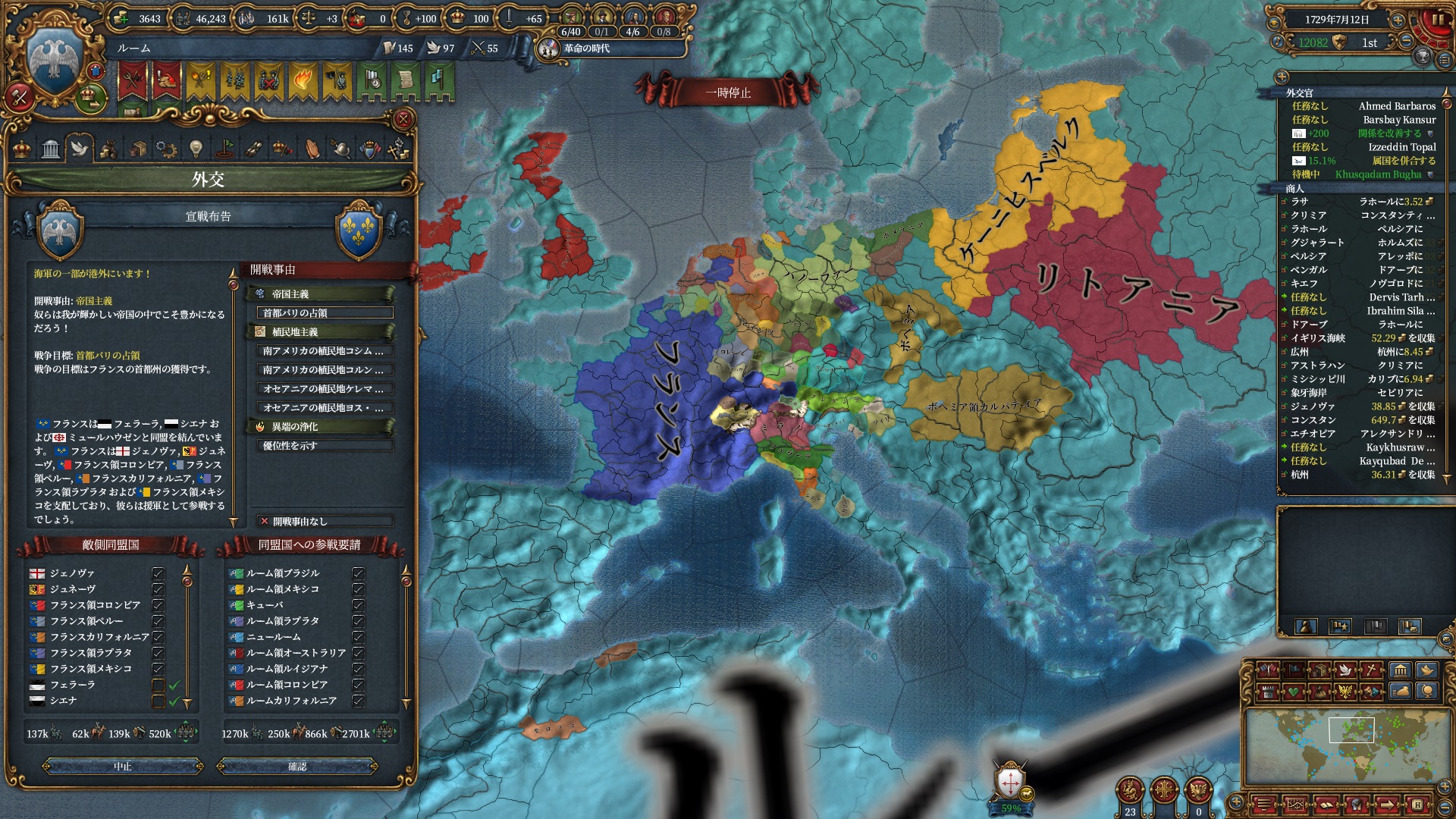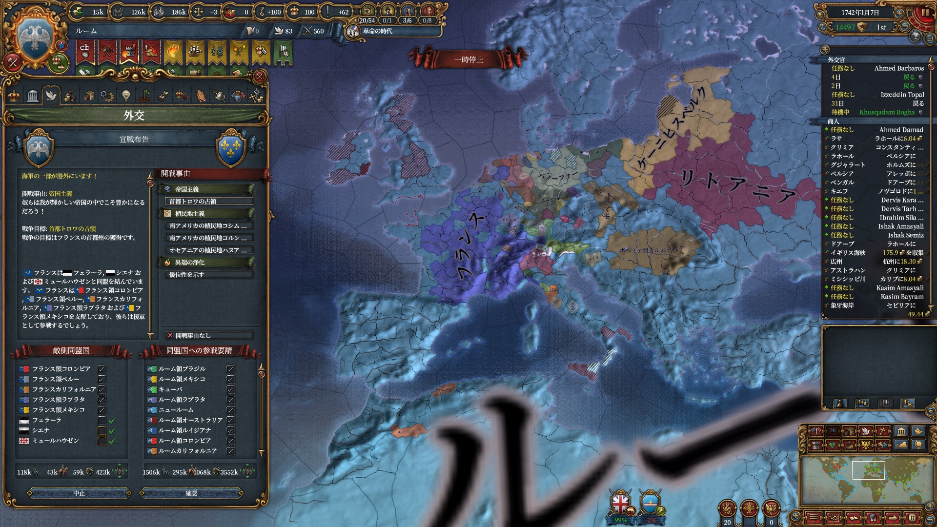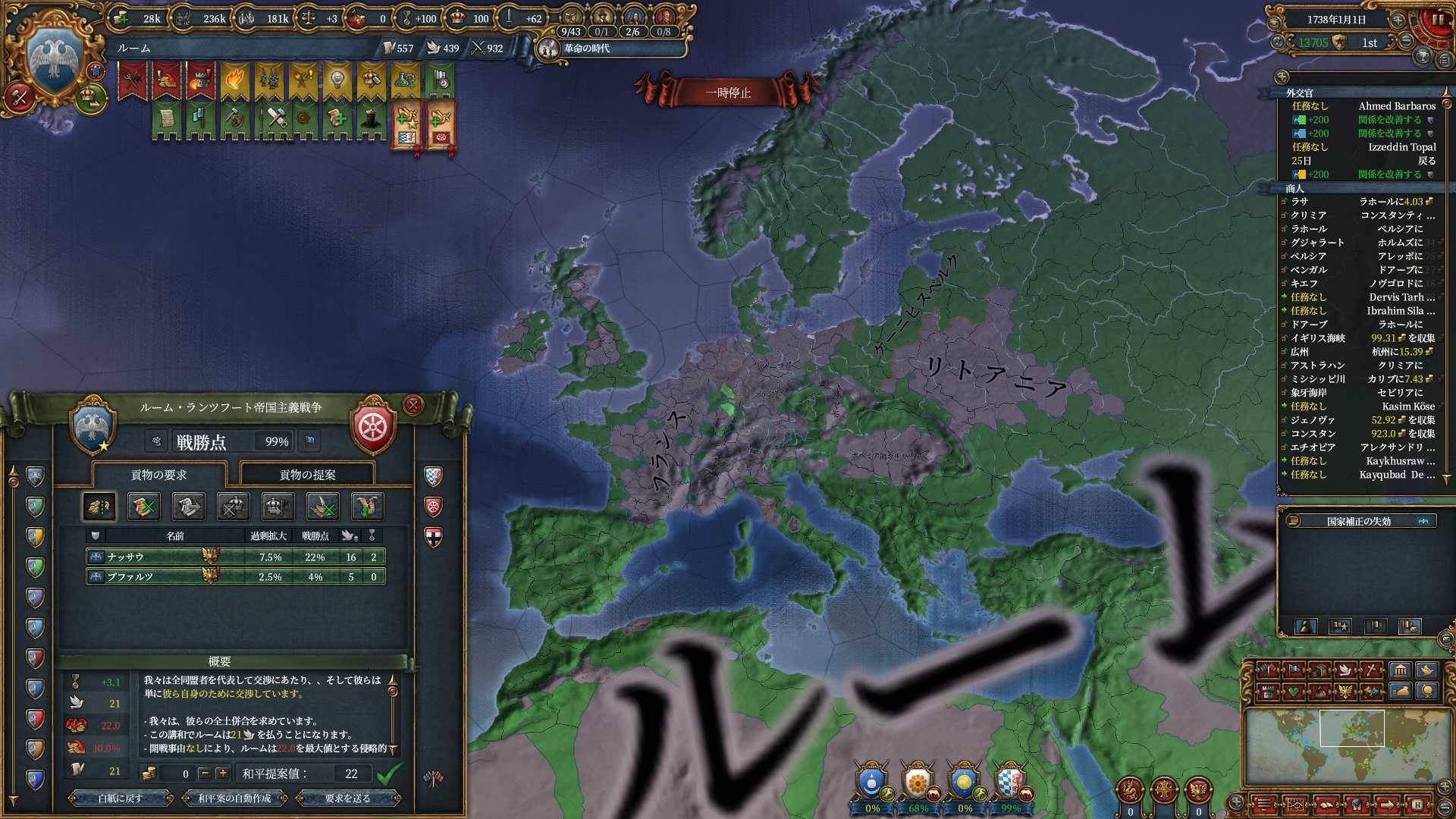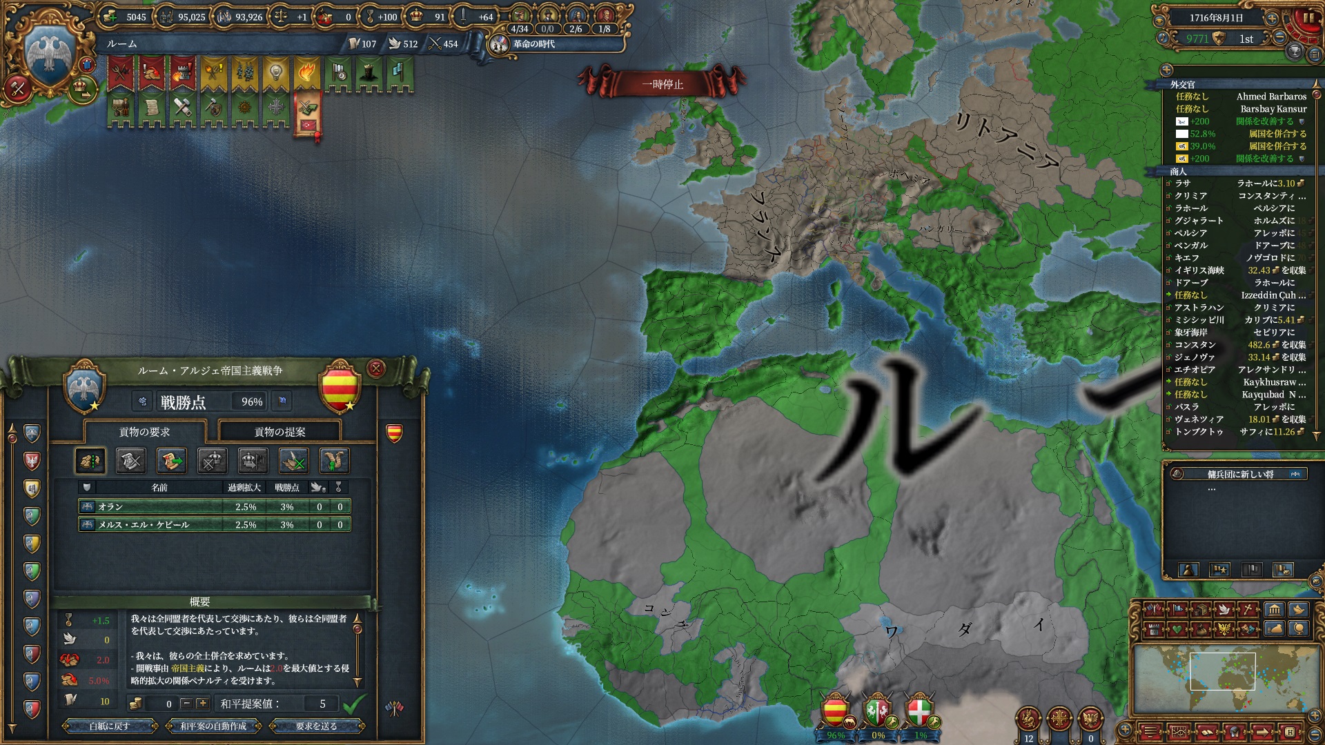 フランスと殴り合いした結果またも人的資源が付きてしまったのでここで講和。