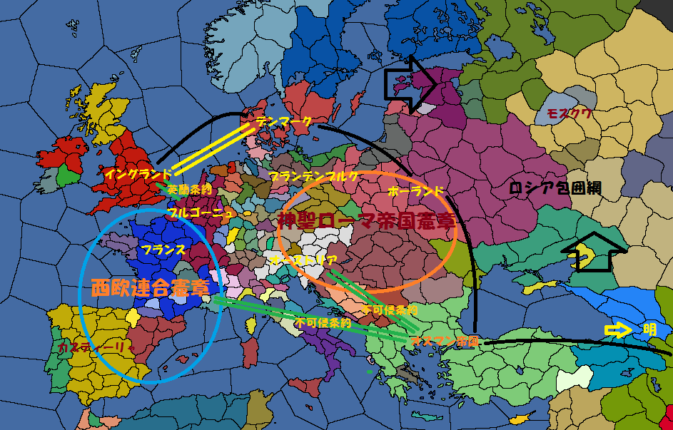 鎮圧後はハンガリーやらスイスやらに攻め込んでいましたが、そのために包囲網を組まれてしまいました