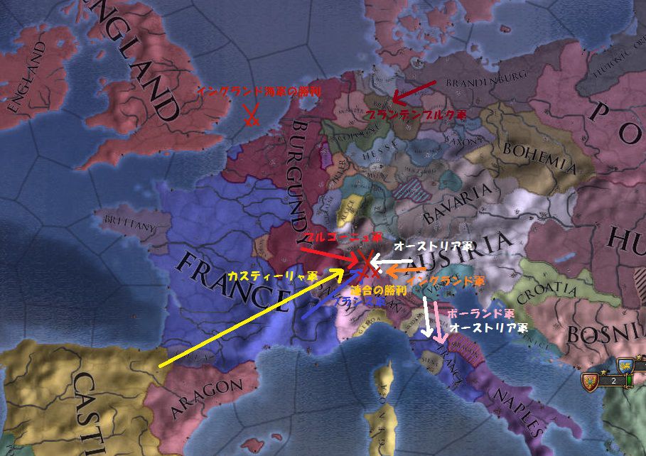 ブルゴーニュの厭戦感情(プレイヤーの)が高かったこともあり白紙和平で終わりました
