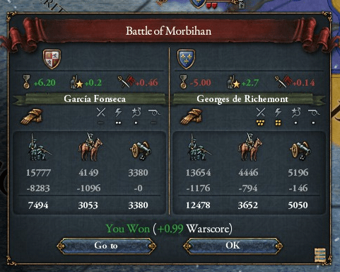 さらにイベリアンウェディングでアラゴン及びナポリを従え、敵方の約3倍の兵力を有しています。