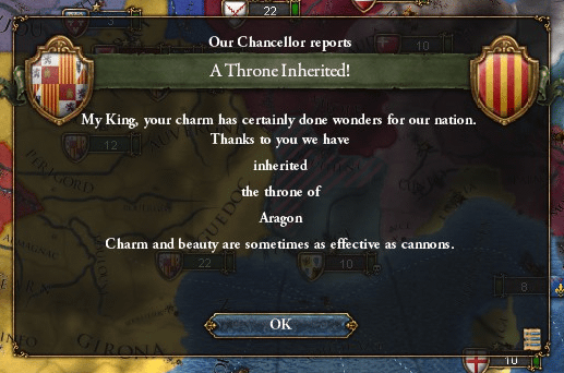 同君連合結成から50年が経ち、アラゴン及びナポリ両国を外交併合できるようになりました。
