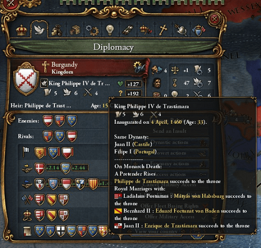 我が国では第一次Poitou戦争で将軍として軍を率いていたエンリケ王子が戦後間もなくして悲劇の死を遂げられ、新たに後継者となったエンリケ様がエンリケ4世として即位なさいました。