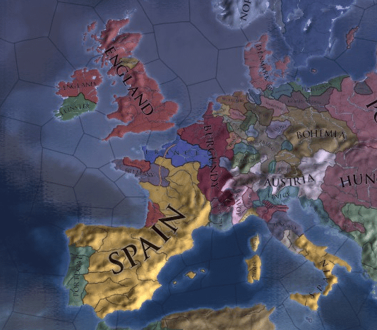 フランスはうちが停戦期間が明ける度に殴っていましたし、イングランドは宗教改革の混乱で大きなダメージを負ったようですね。イングランドは宗教混乱を乗り越えたのちイギリス(グレートブリテン)を成立させた模様です。