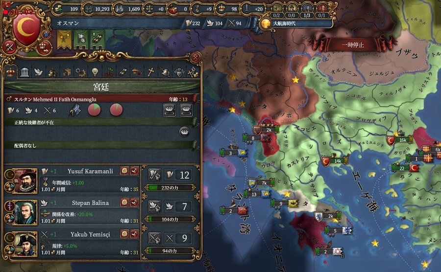 偉大なメフメト2世の能力をもってしても400点はかなりきつい為、統治点極振りで行きます。