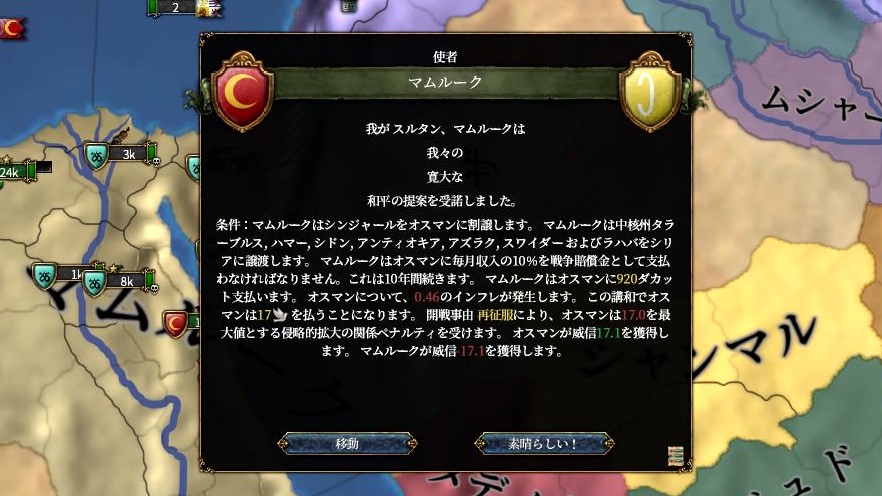 勝利。金を搾り取るだけ搾り取ったついでに、イラクの種地を入手します。