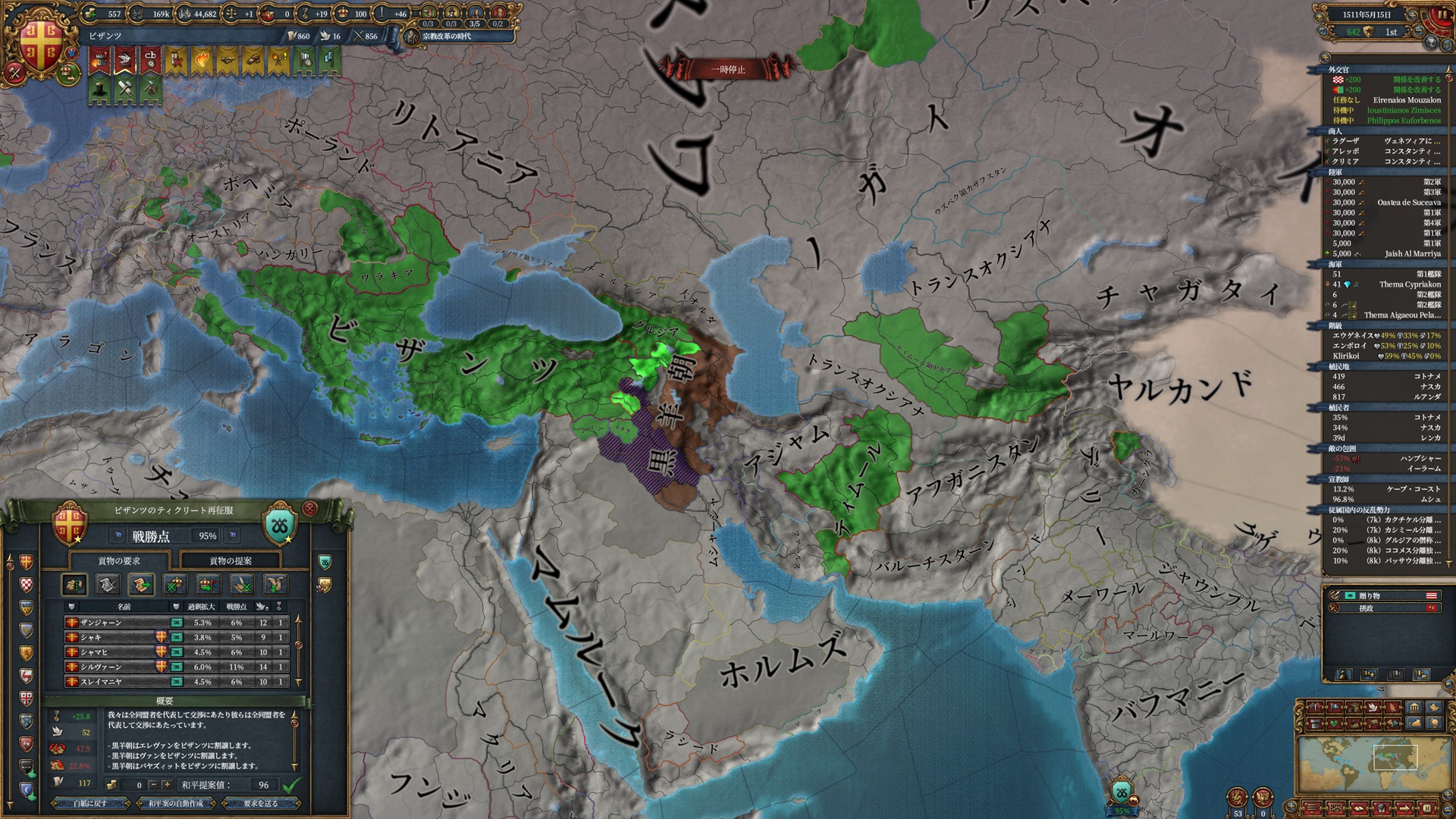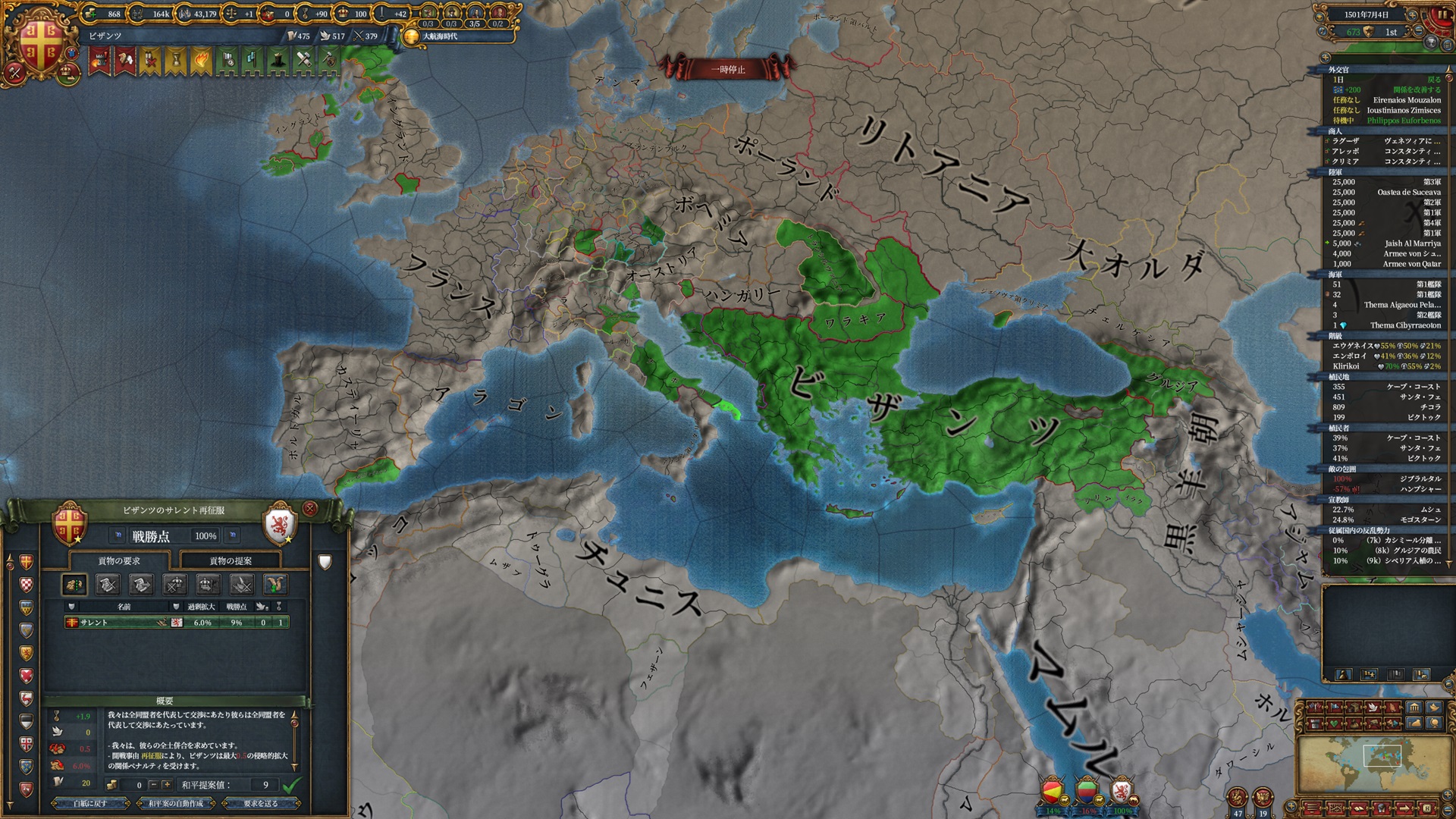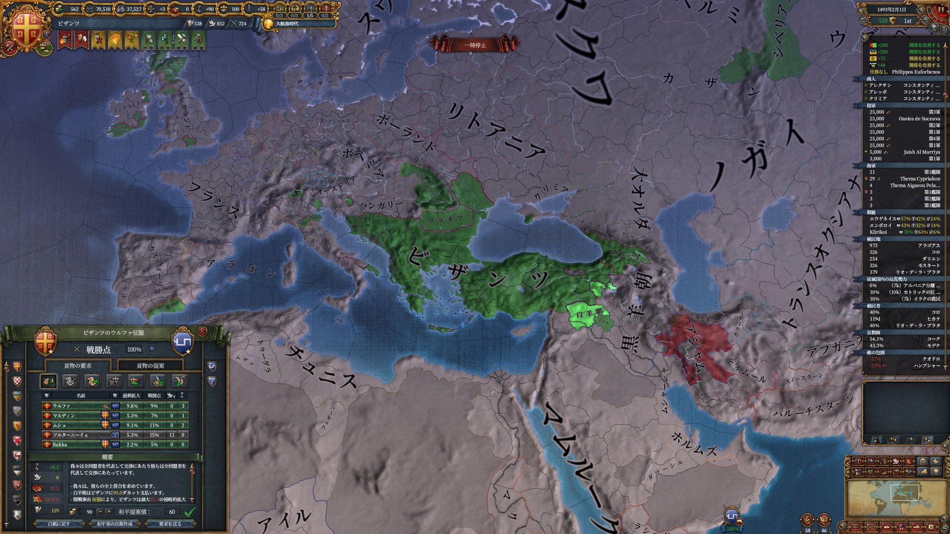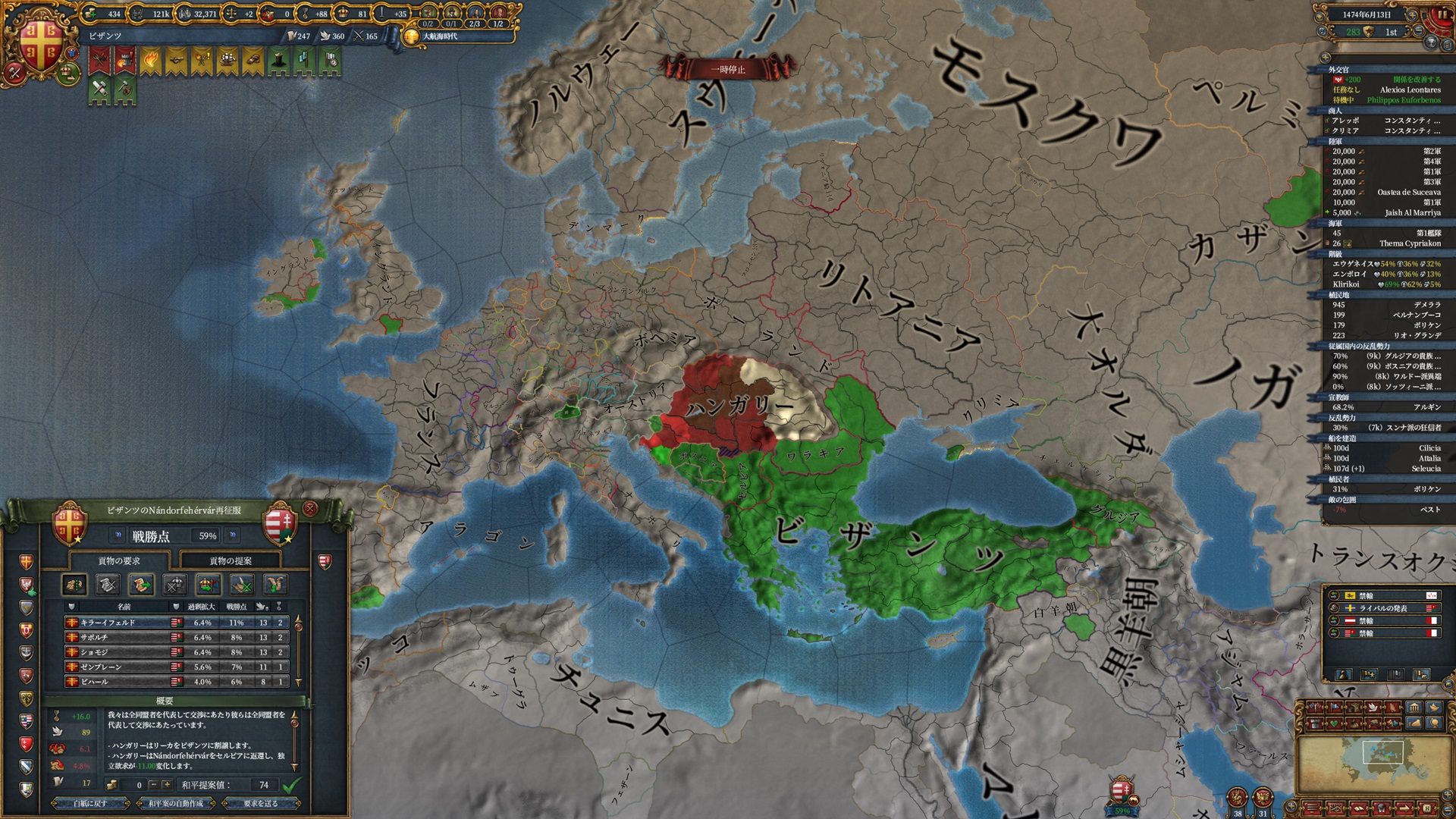 しかしハンガリーや黒羊朝に大苦戦とは中々展望が厳しい、さてどうやってプロノイアを鍛えていくか・・・
