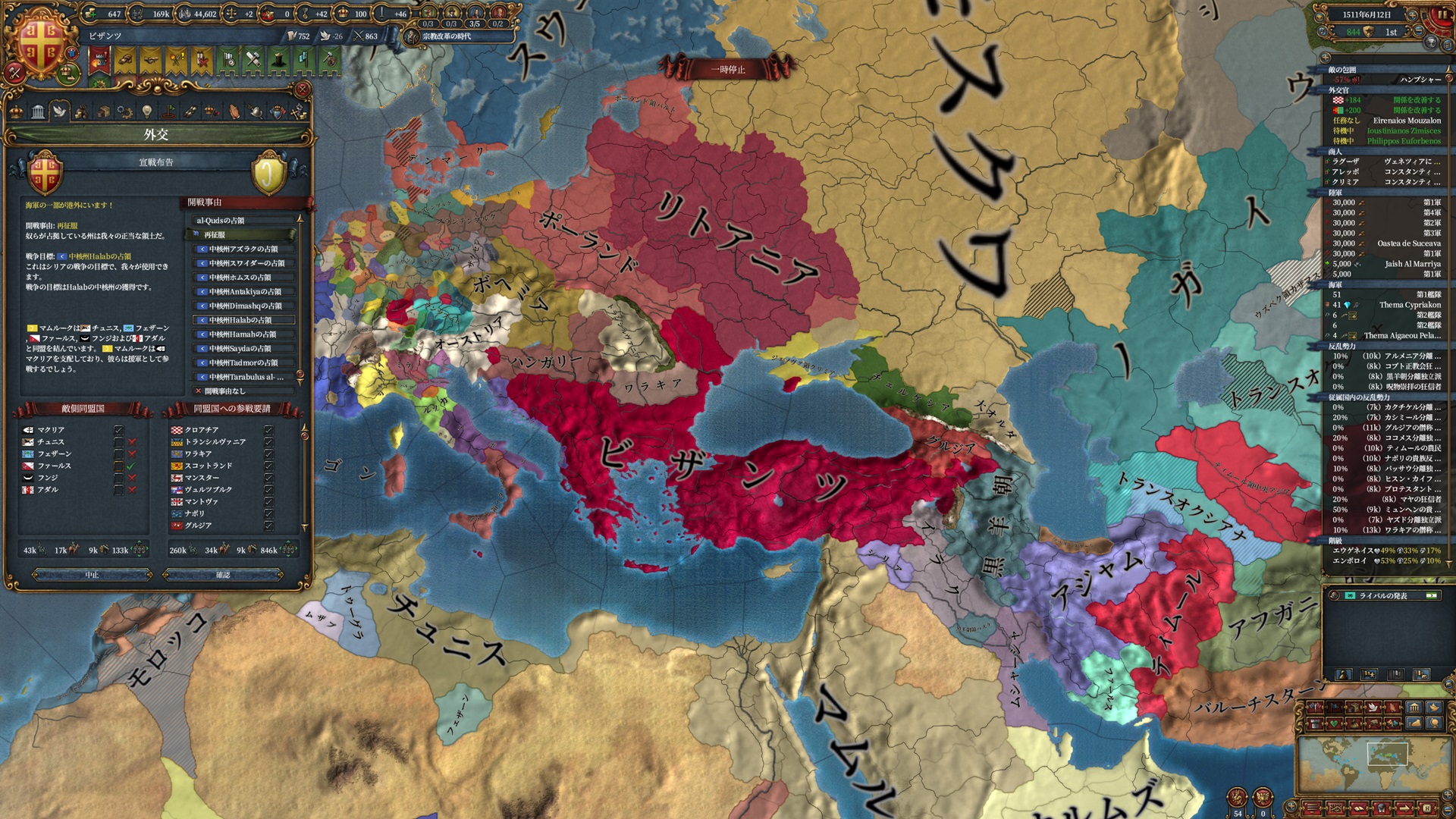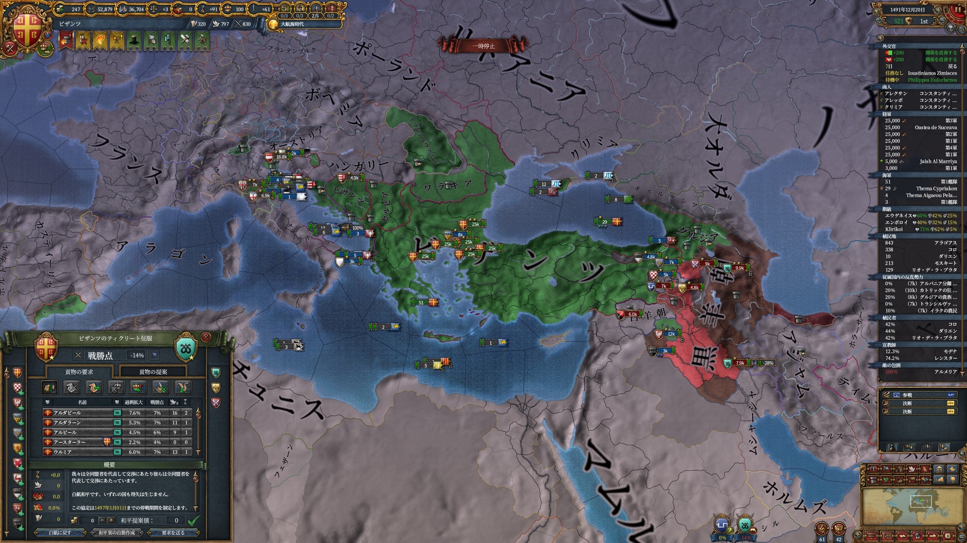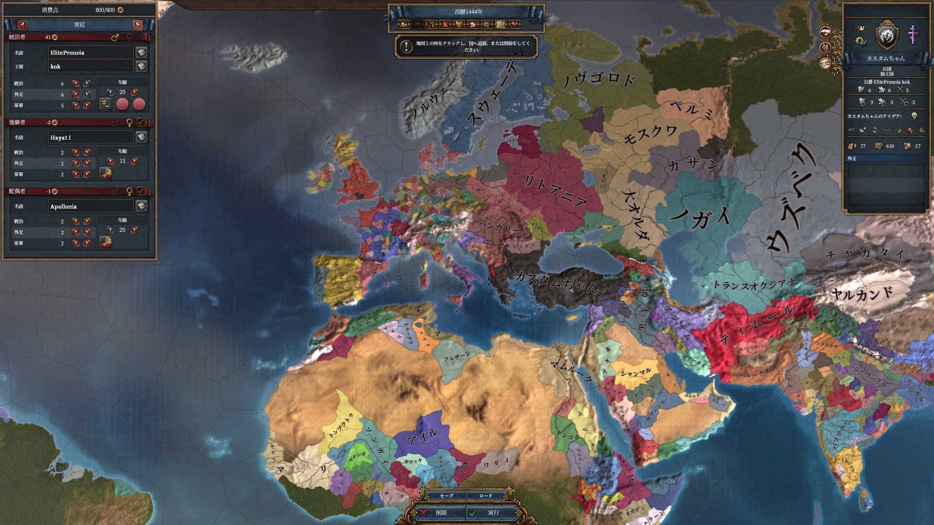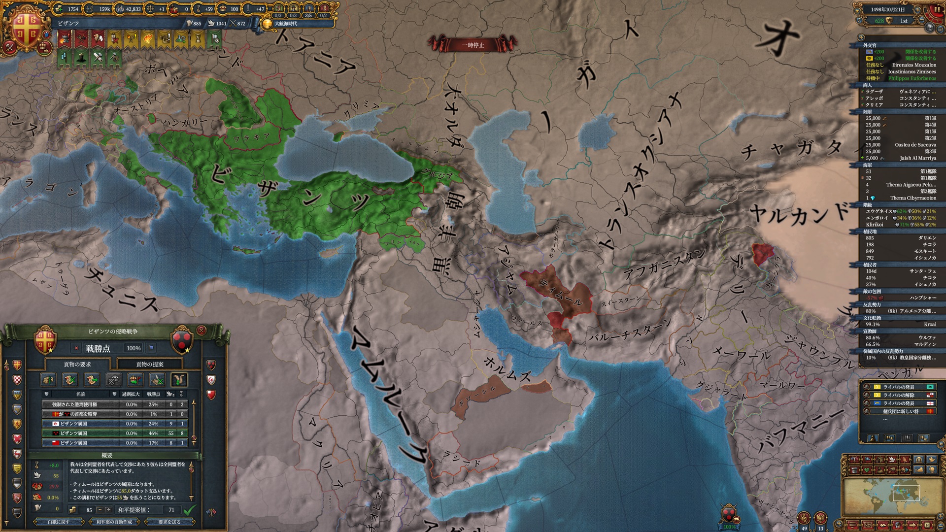 しかしハンガリーや黒羊朝に大苦戦とは中々展望が厳しい、さてどうやってプロノイアを鍛えていくか・・・