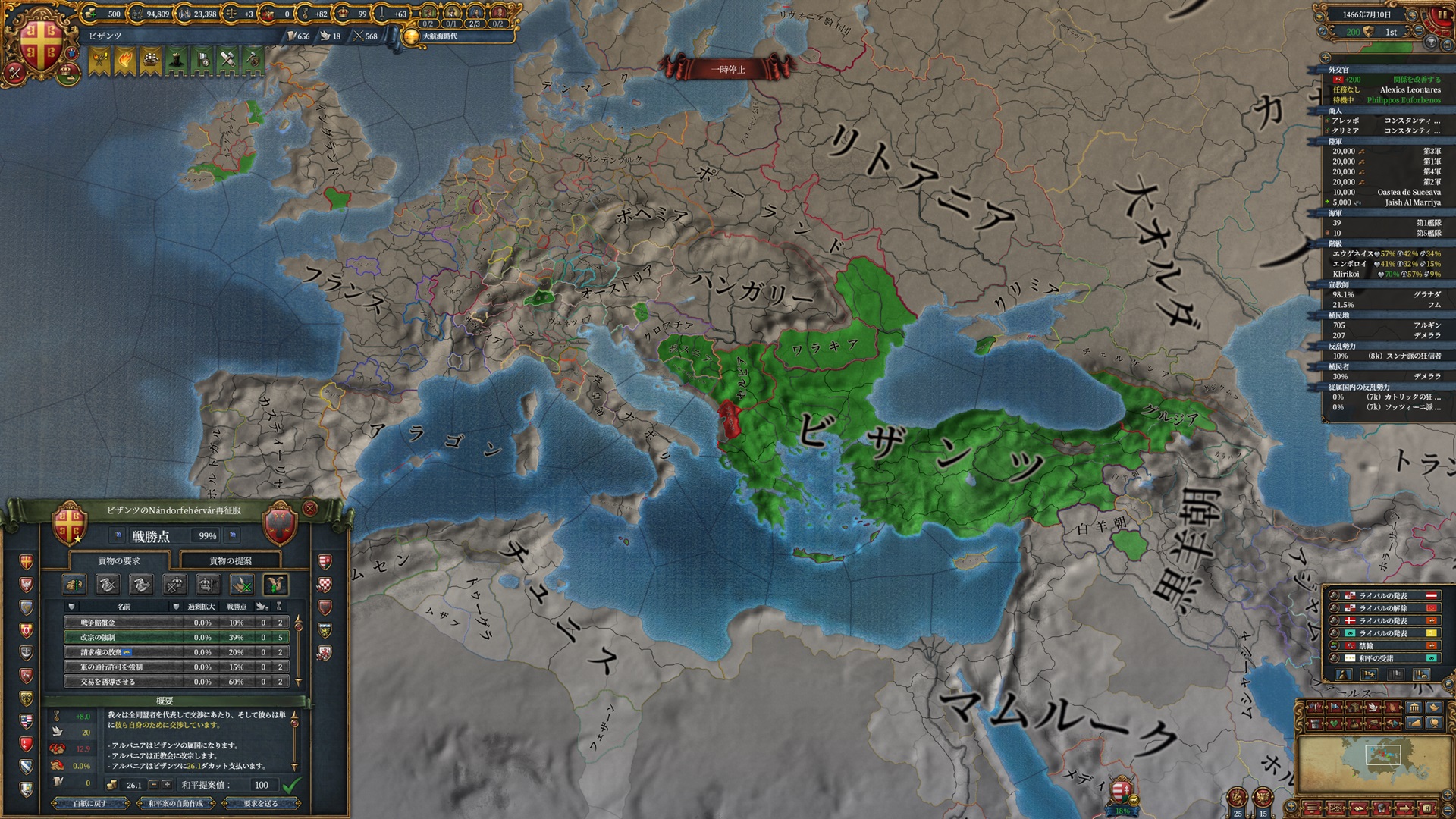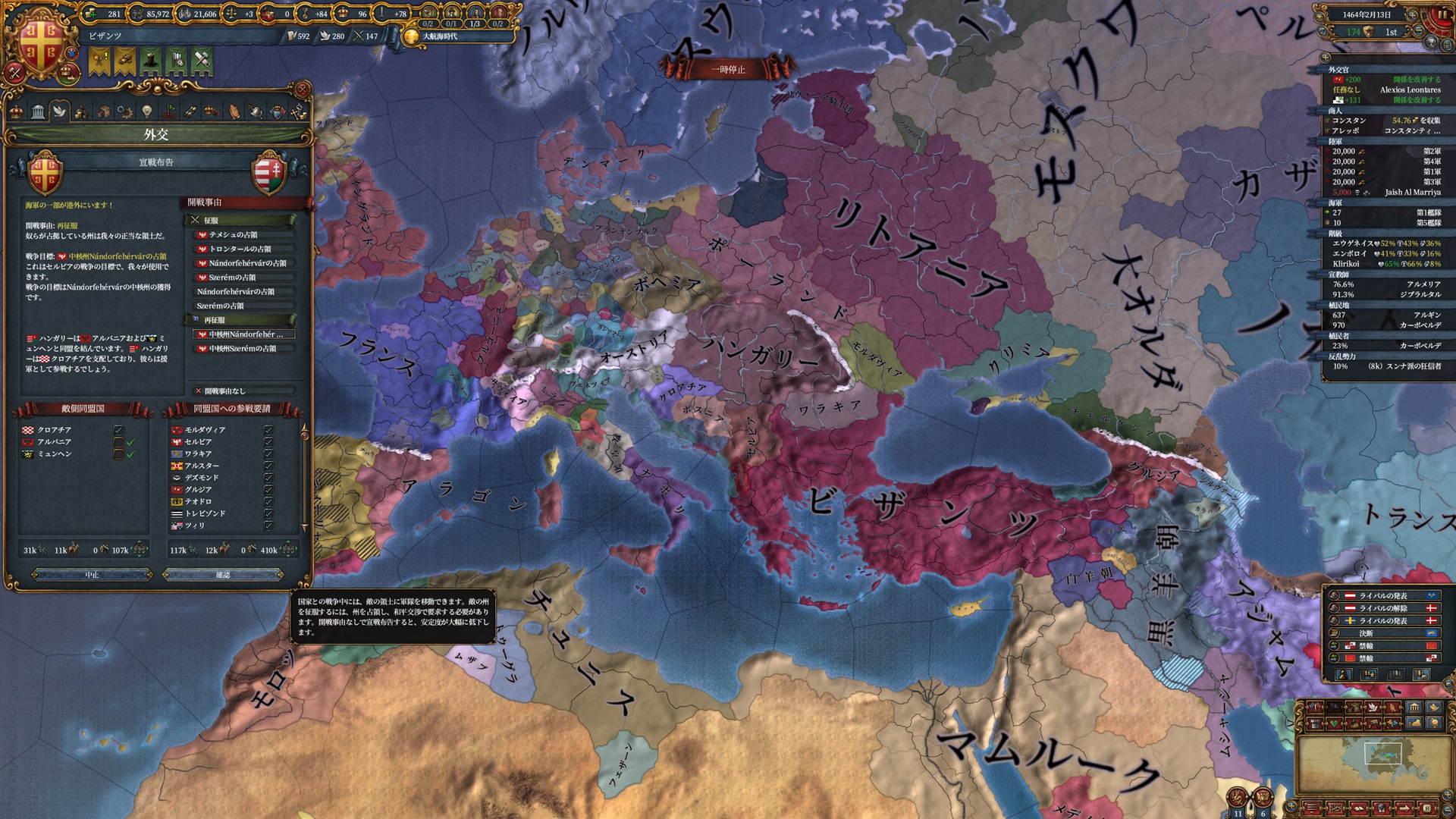 なお相手方の共戦国アルバニアさんは属国化→プロノイア化→ハンガリー戦が終わる前に継承となった模様。