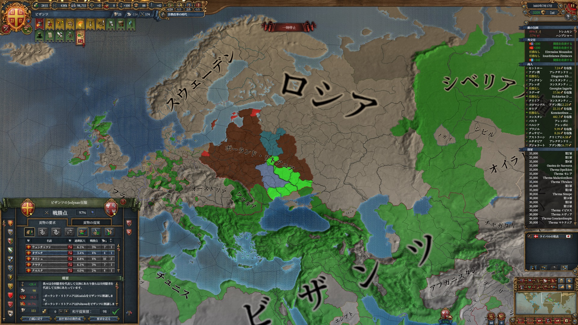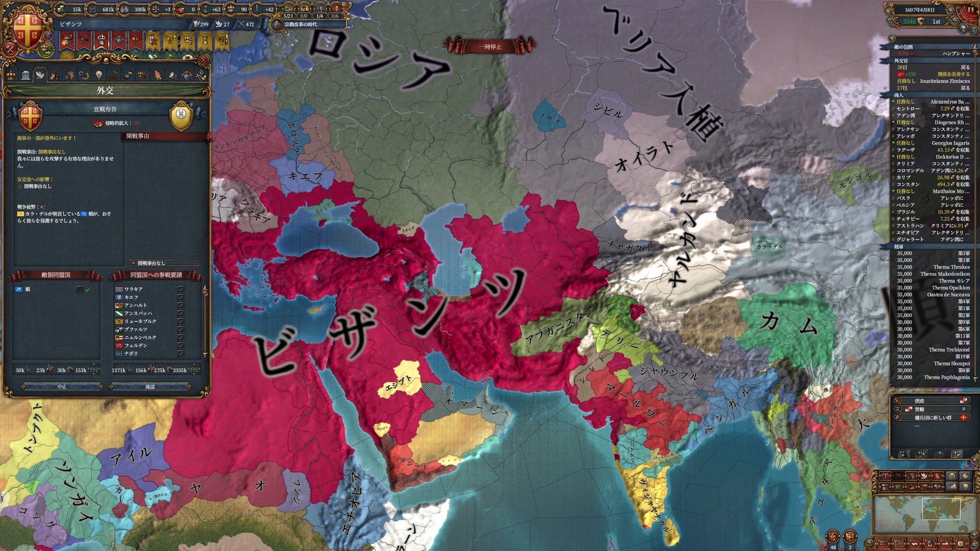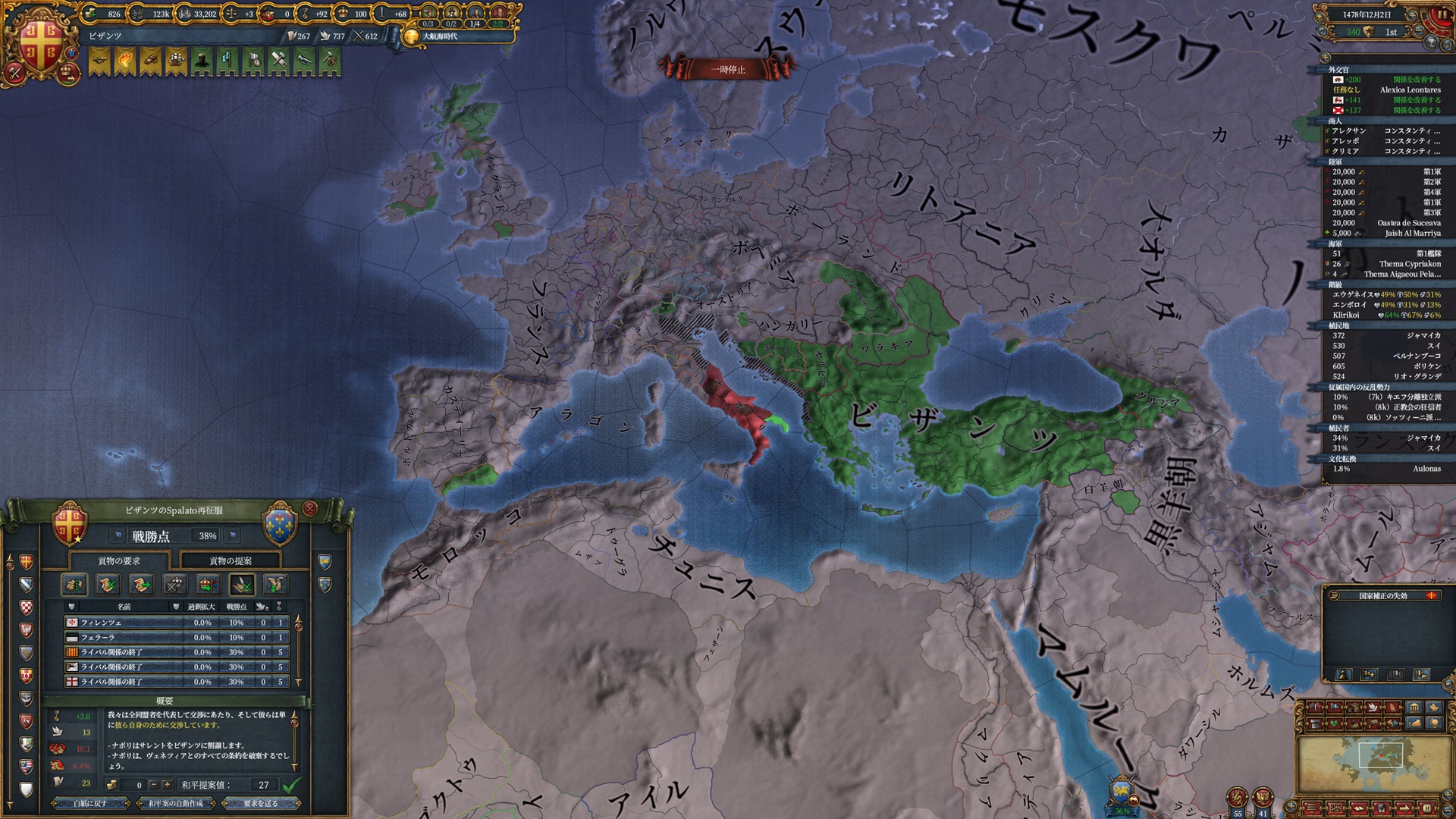 即座にビザンツへの変態が可能になる他、イベリア、アイルランド、シベリアへの嫌がらせ飛び地を作っています。