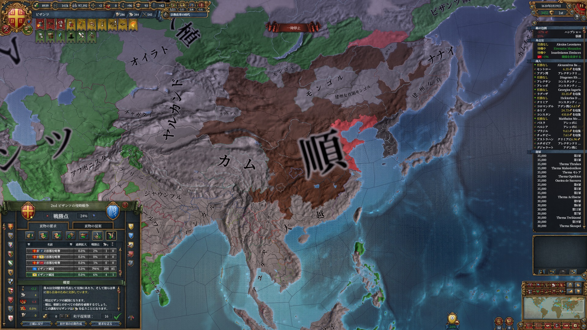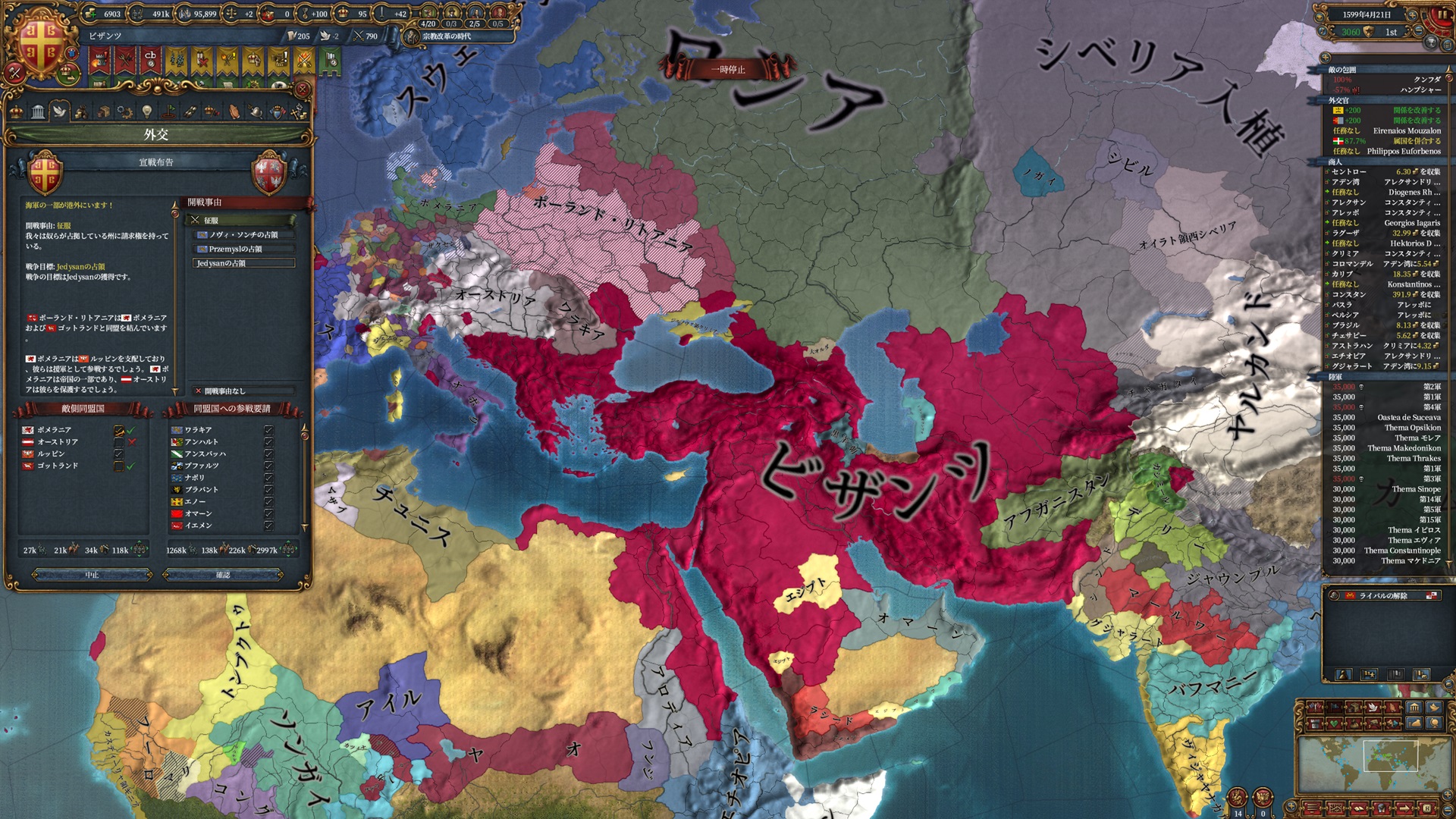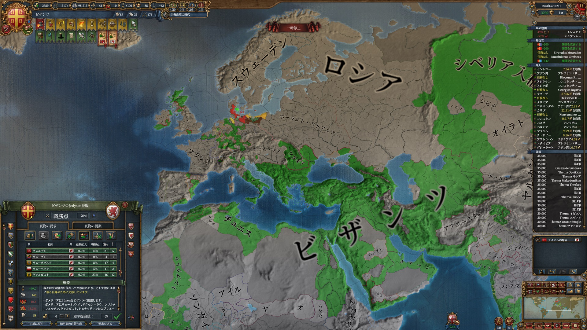 即座にビザンツへの変態が可能になる他、イベリア、アイルランド、シベリアへの嫌がらせ飛び地を作っています。