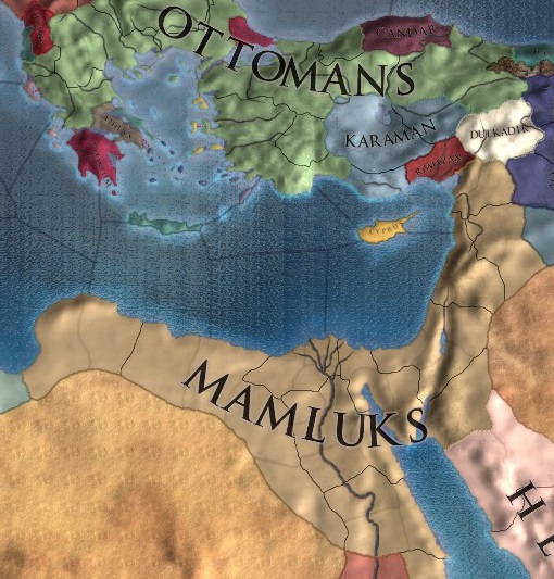 この間、オスマンはいつも通りアルバニアを併合、黒羊朝とDulkadirが白羊朝に宣戦し、その領土を分け合う形となった。