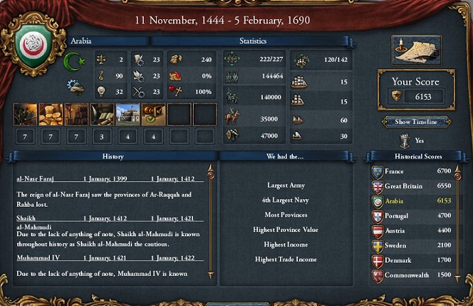 対オスマンという意味で、初心者向け国家とされる(?)Byzantiumで挑むよりは、マムルークで挑むほうが難易度は低いと思って何度か挑戦し、偶然うまくいった今ゲームでAARを作成することを思いつきました。