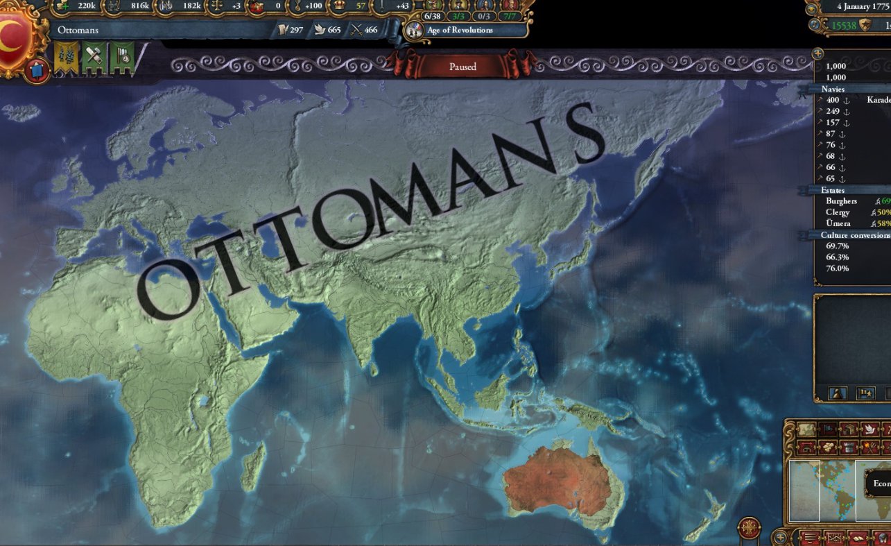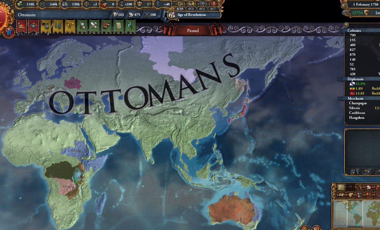 巨大な植民国家宗主国として残っているフランス・英国を攻め落とし、フランスは1711年、英国は1725年に併合となりました。