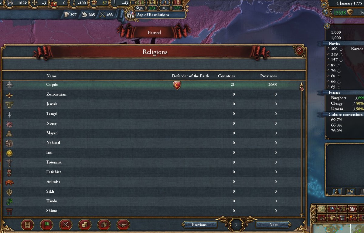 この改宗を1775年に終えたことで、One Faith の条件を満たしました。