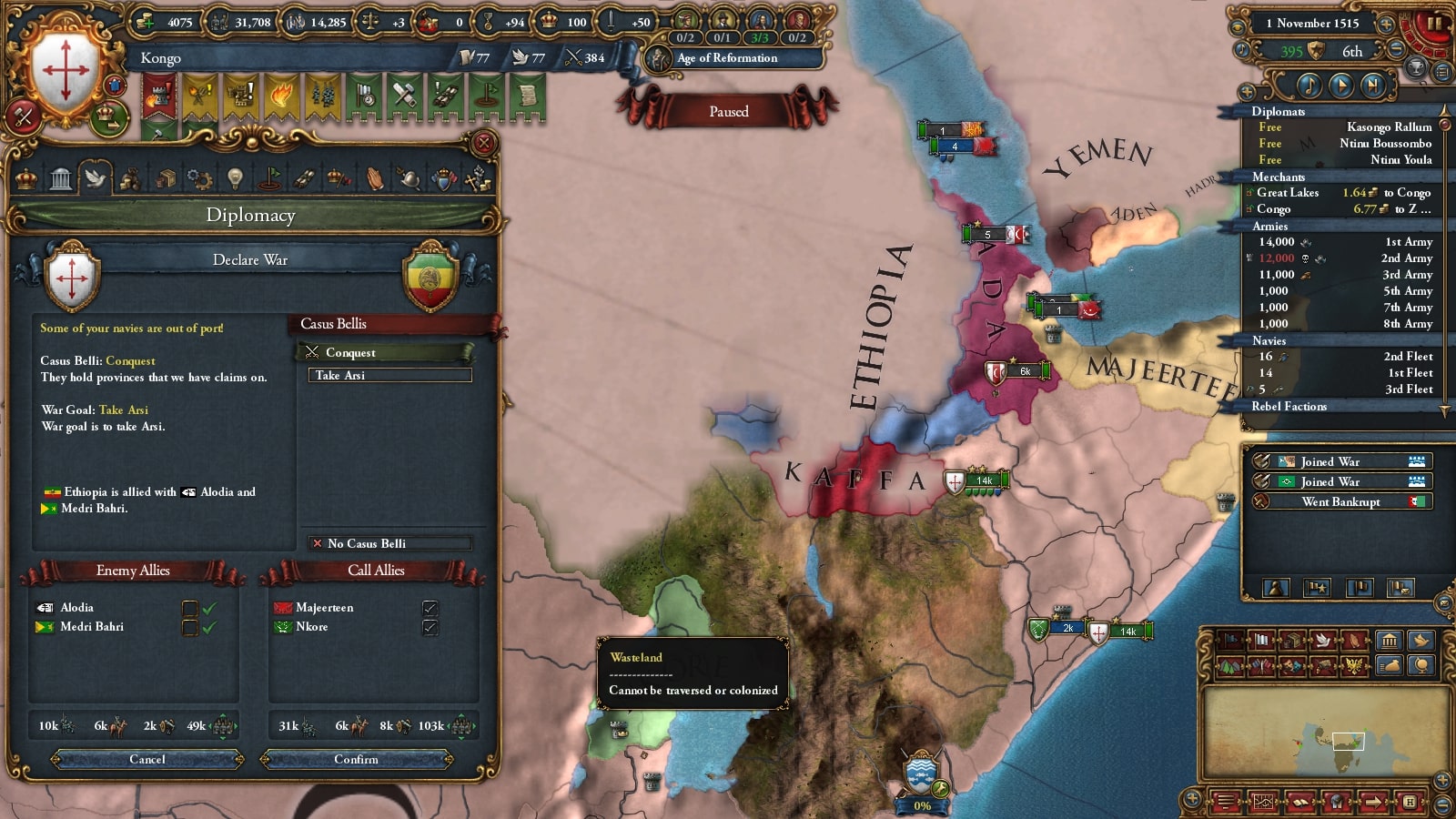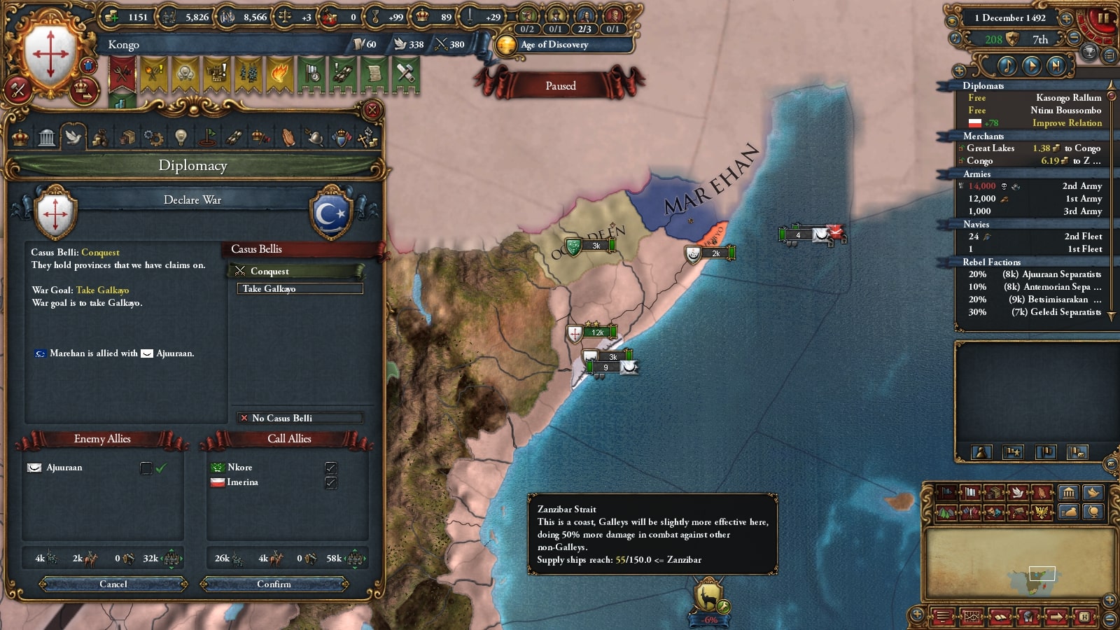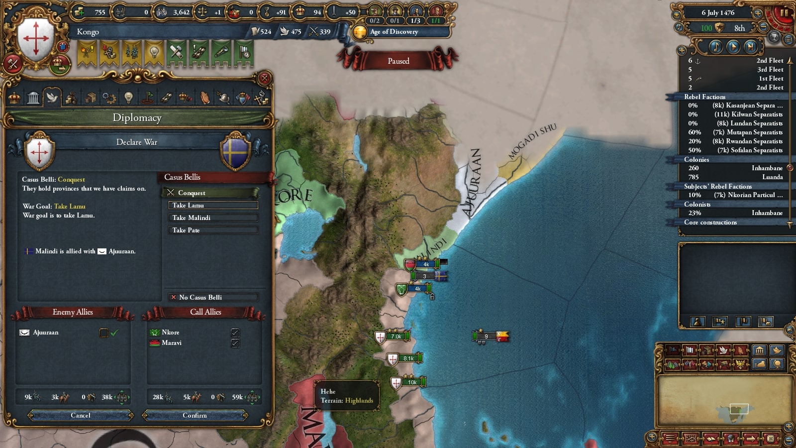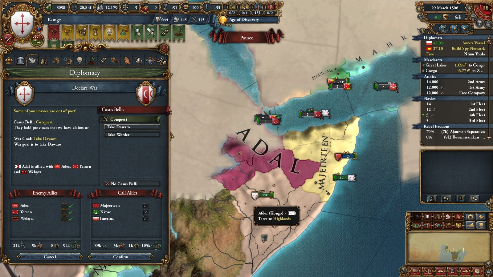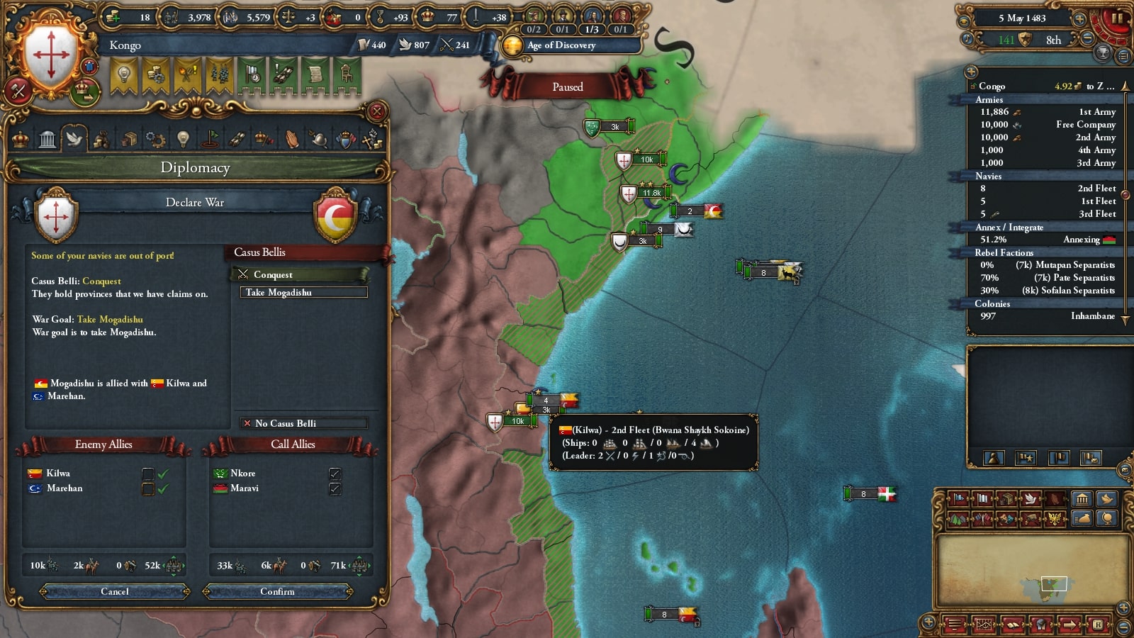 キルワがモンバサ・あじゅりゃん戦で弱っていたので属国の再征服CBを使って攻めます。