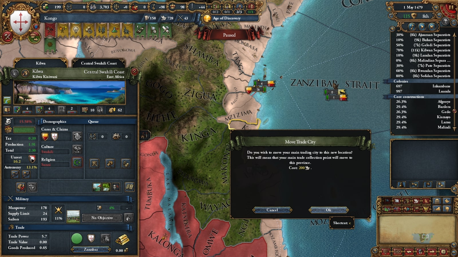 交易首都をザンジバルノードのキルワに移しました。今考えると移すの早すぎますね。
