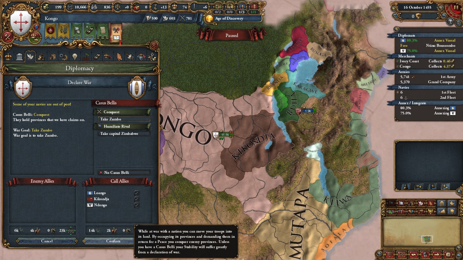 とりあえずコンゴの敵ではないので侵攻します。