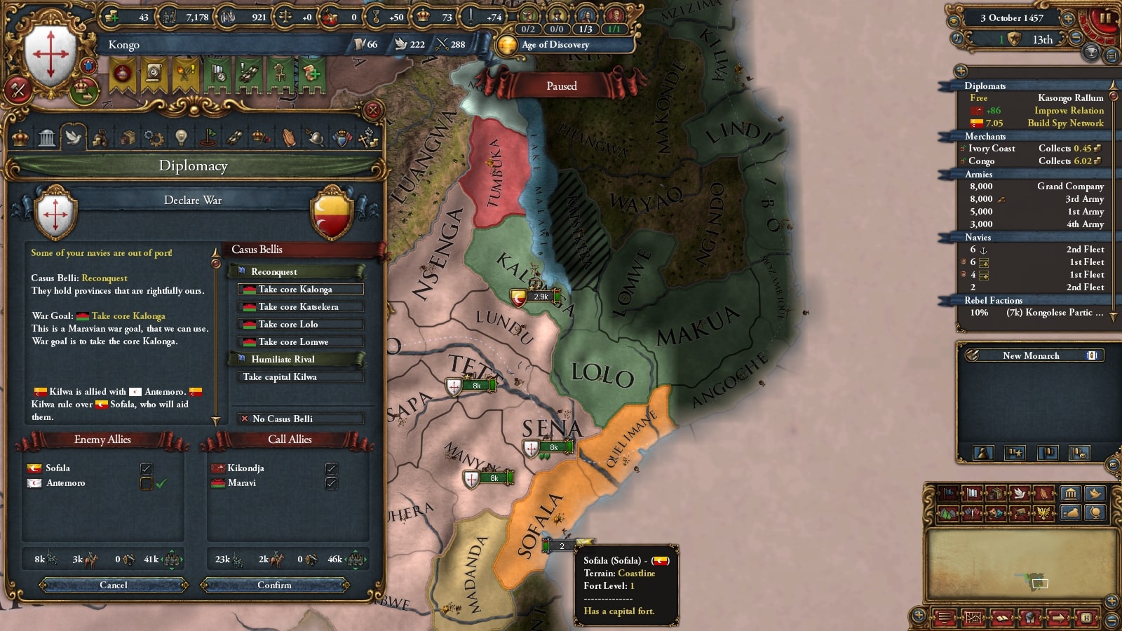 軍事技術の差は数でカバーします。ソファラが首都要塞を建てる前に攻められてよかったです。