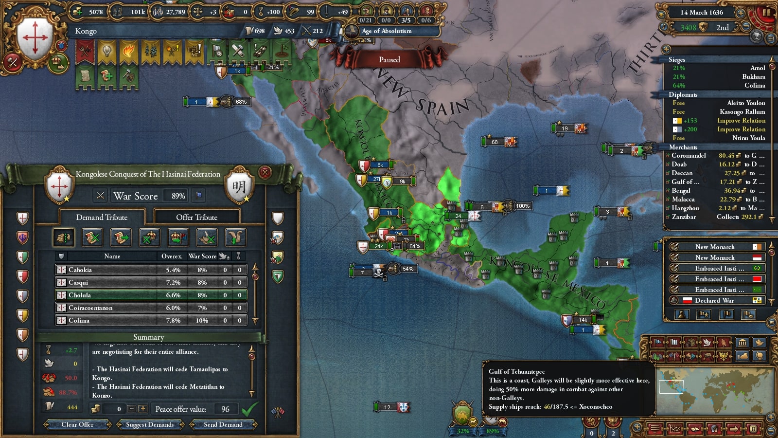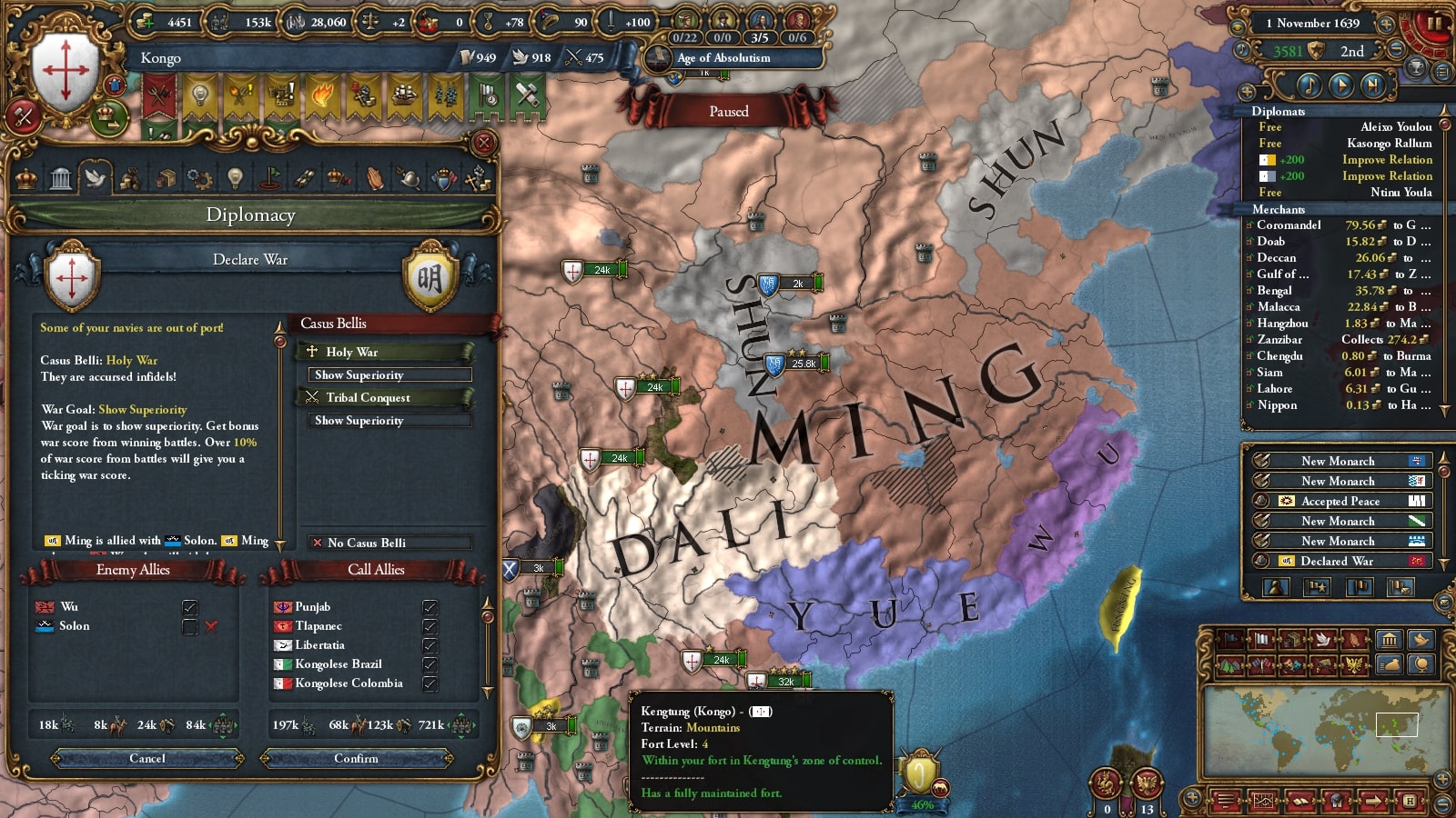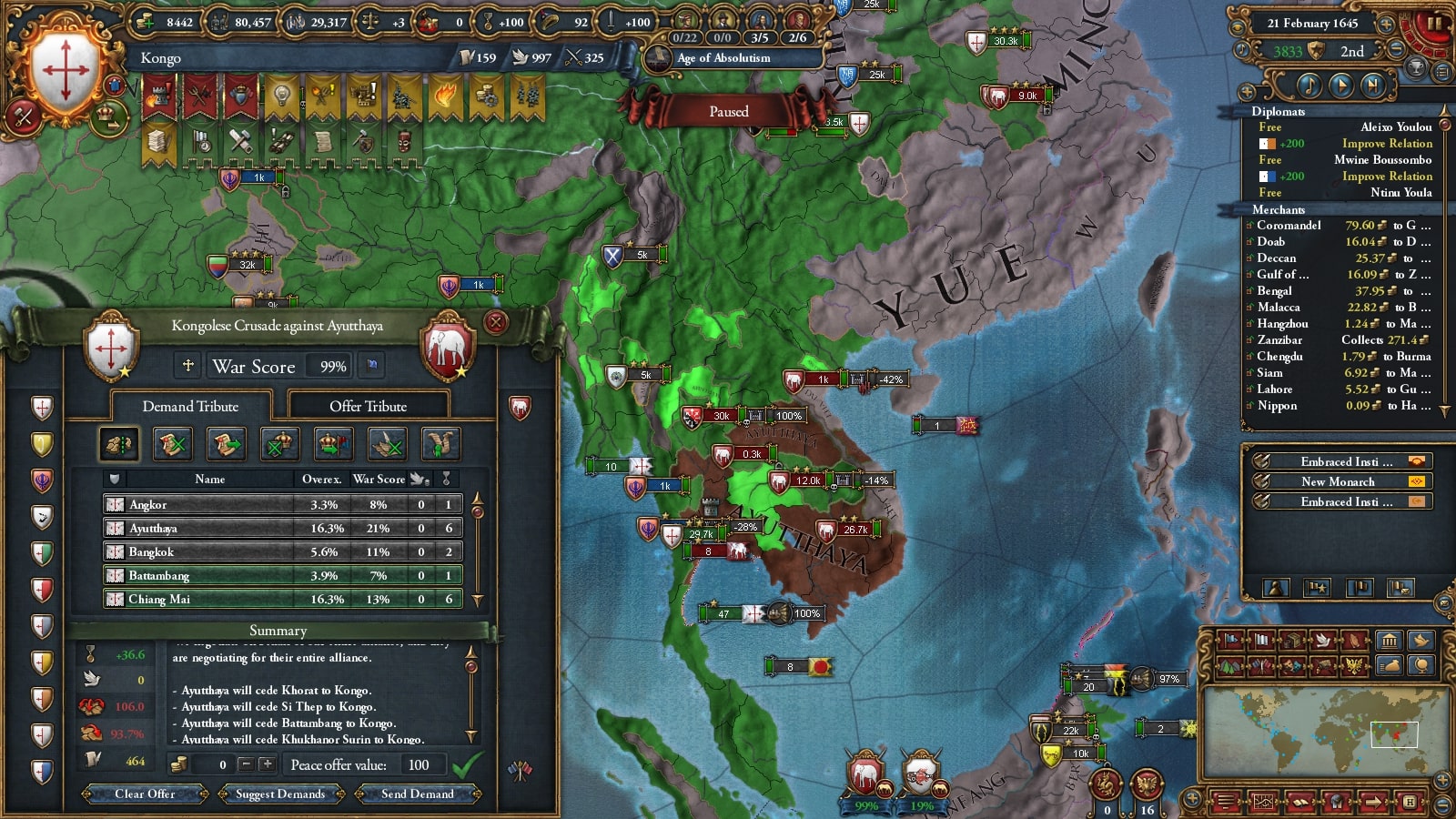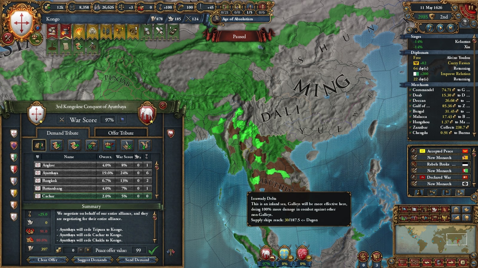 AEが慢性的にたまってきているので同盟国に負け講和して西アフリカのクソデカ朝貢国を開放しています。