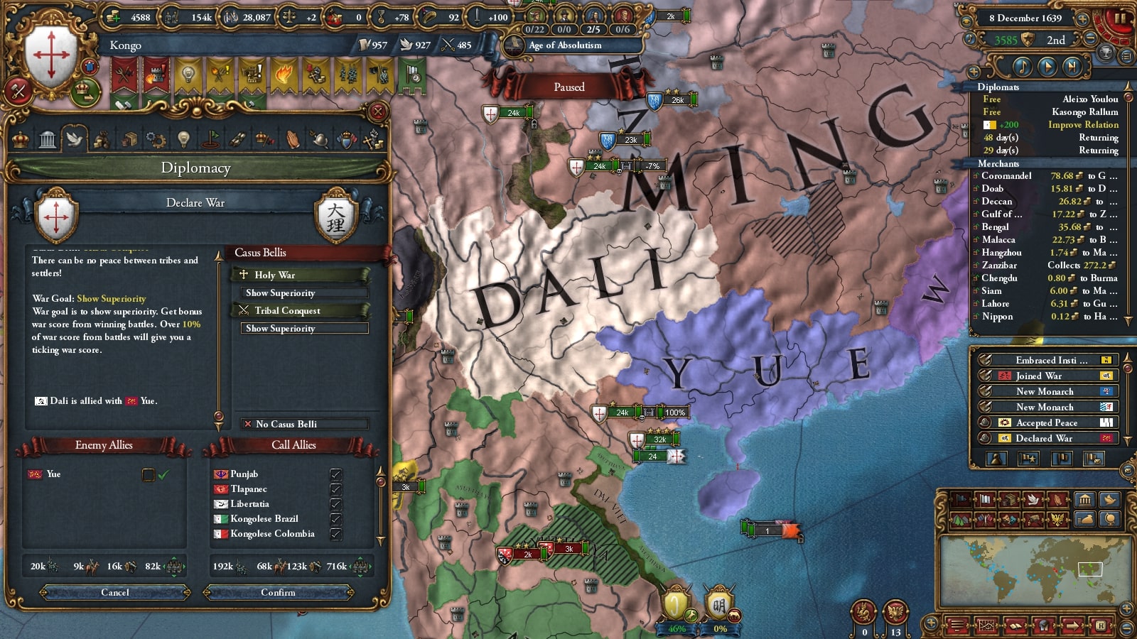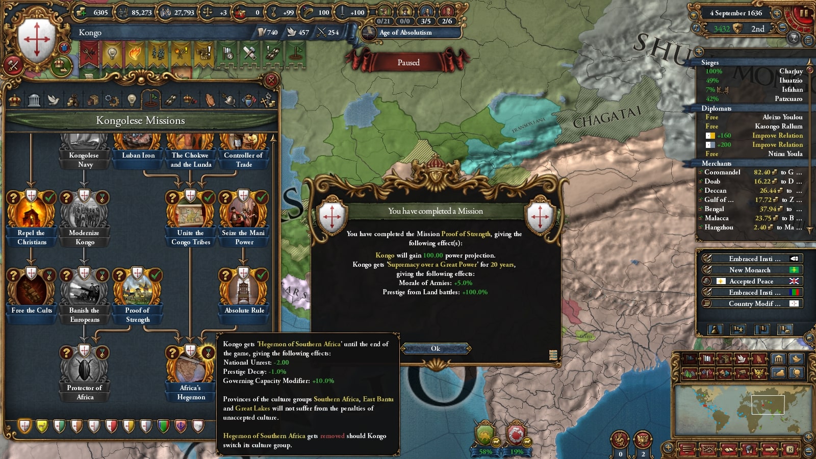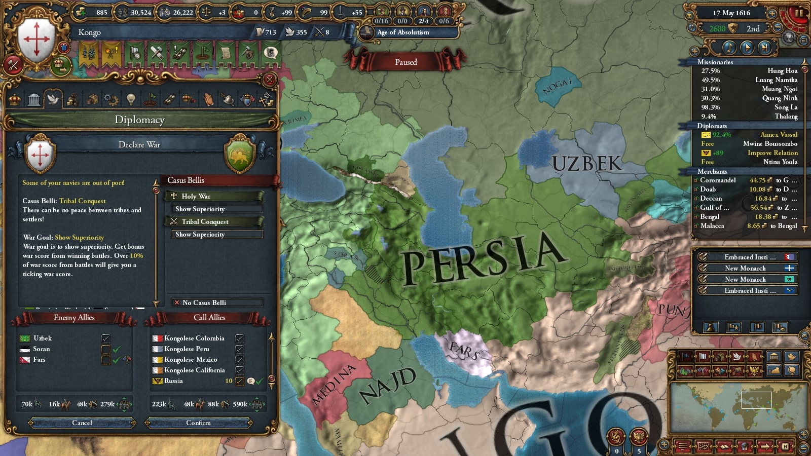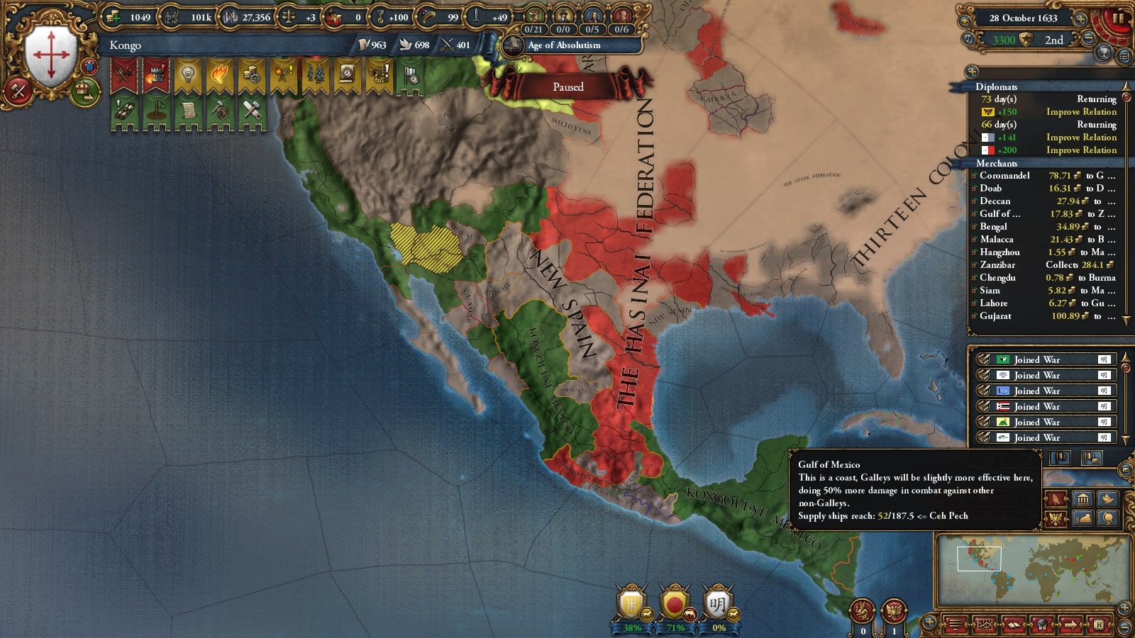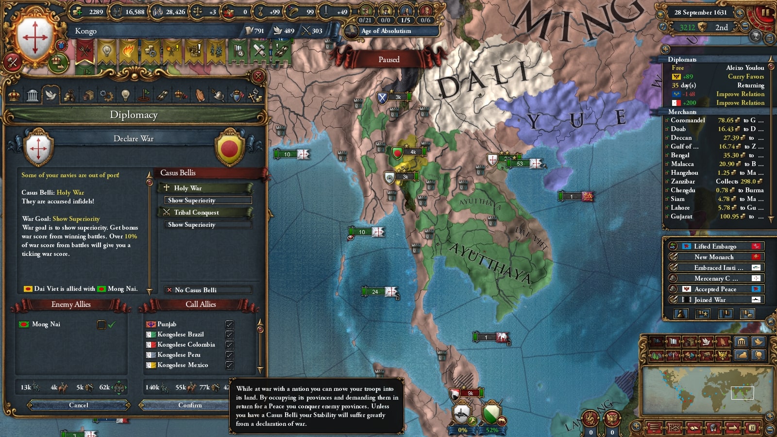 AEが慢性的にたまってきているので同盟国に負け講和して西アフリカのクソデカ朝貢国を開放しています。