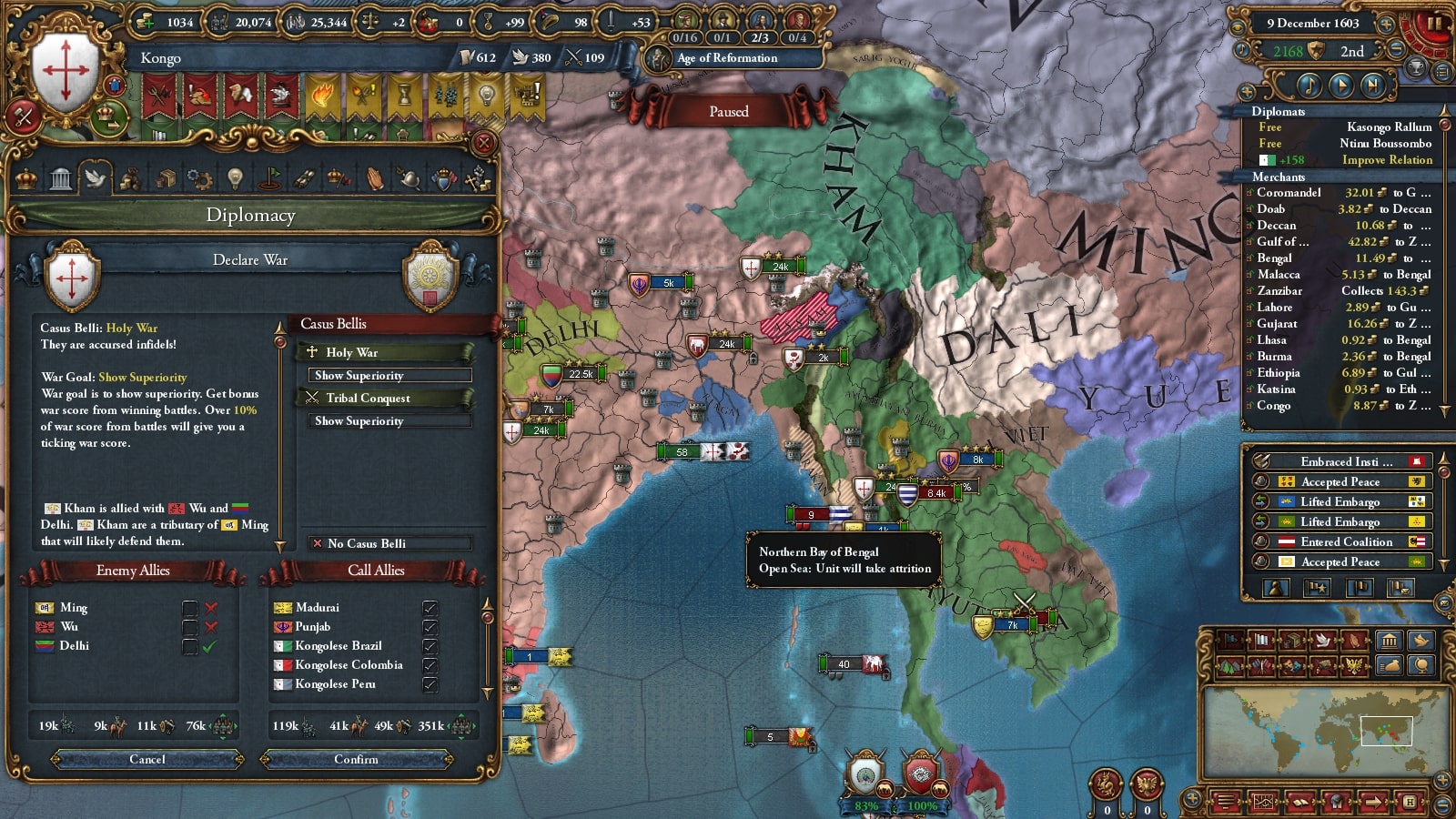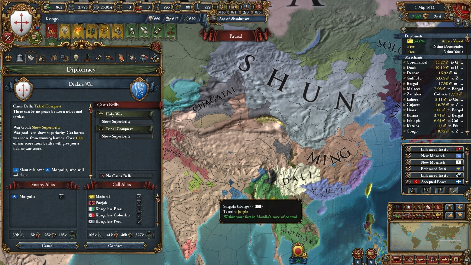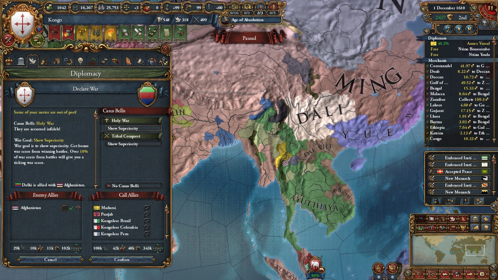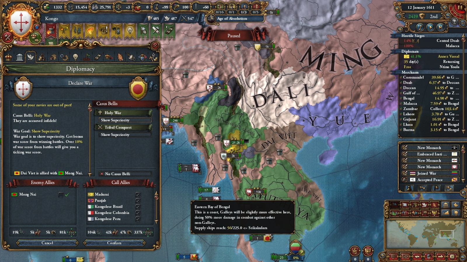 AEが慢性的にたまってきているので同盟国に負け講和して西アフリカのクソデカ朝貢国を開放しています。