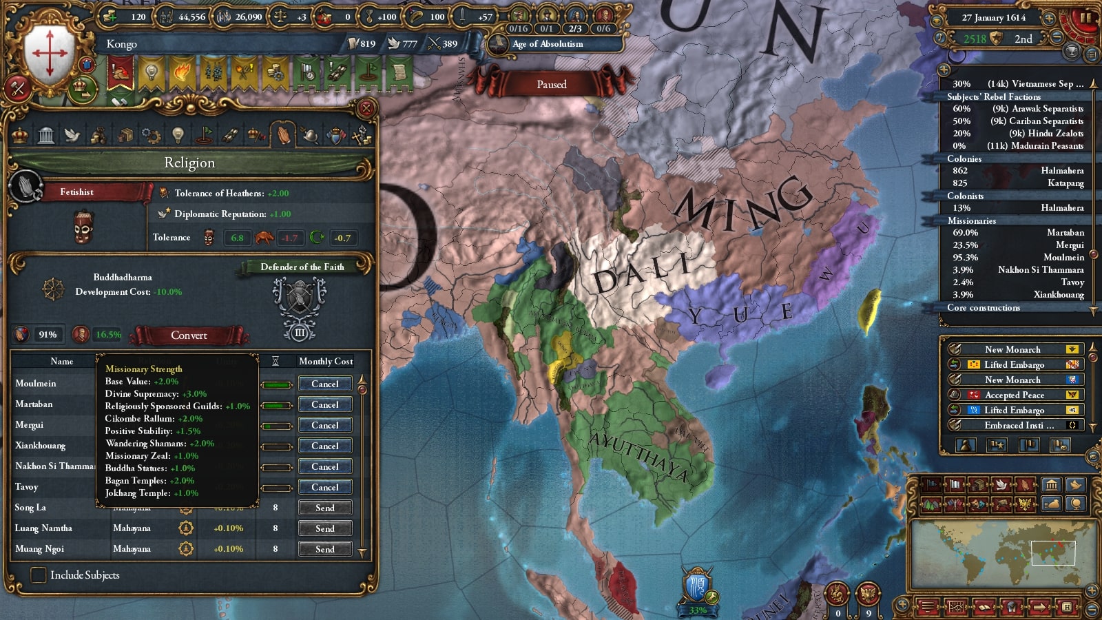 遺産のグレードアップが終わると宣教師数が二倍になるのでより改宗スピードが上がりますね。