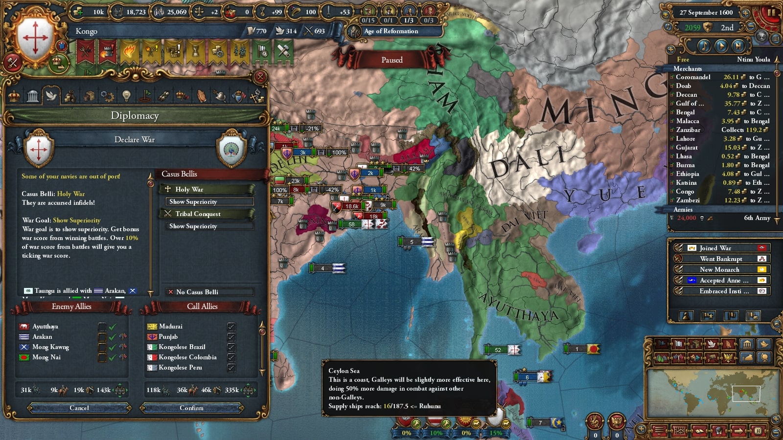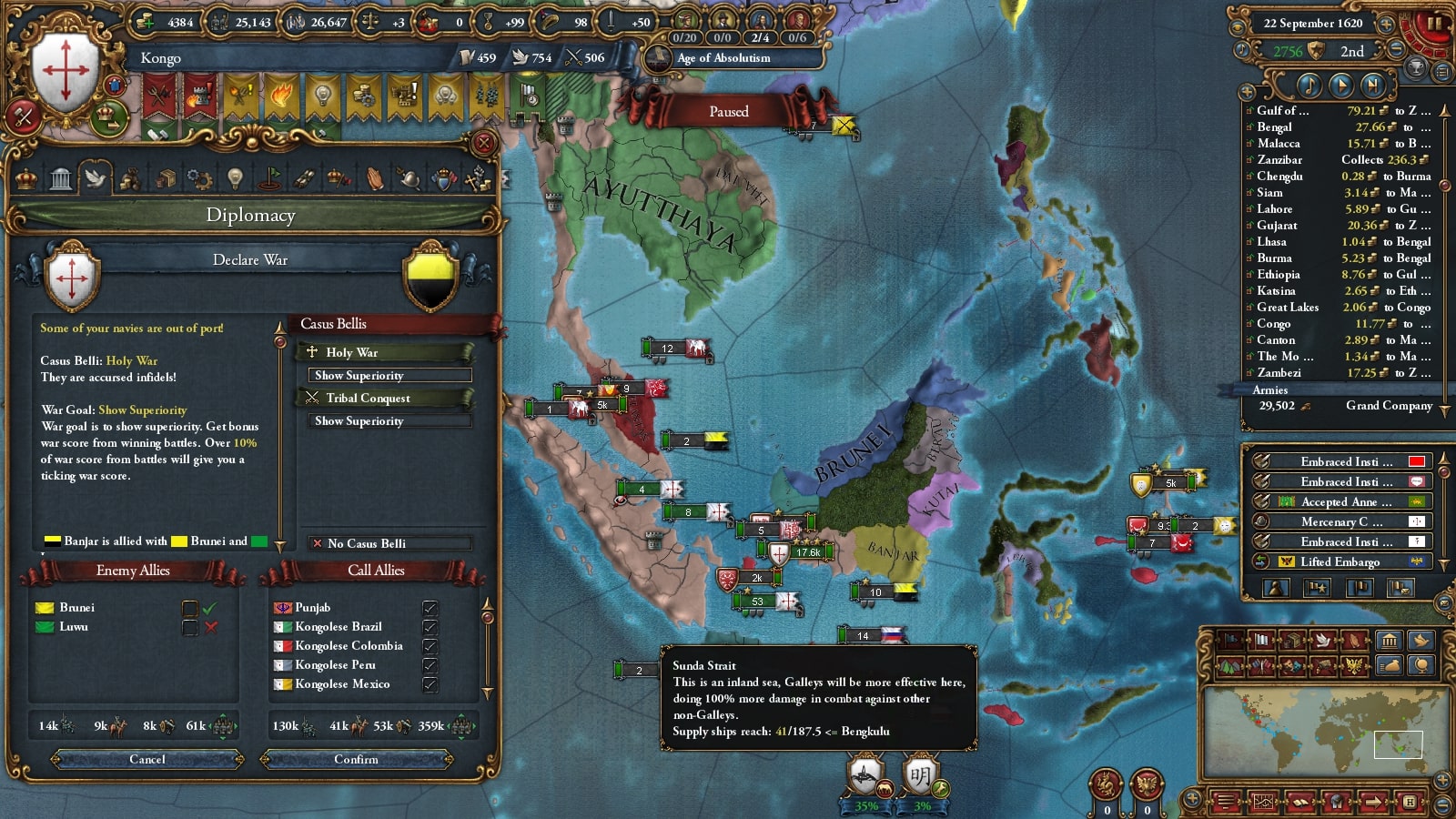 第二次アユタヤ戦。マラッカ方面に輸送船で送るのが大変なので道をつなげに行きます。