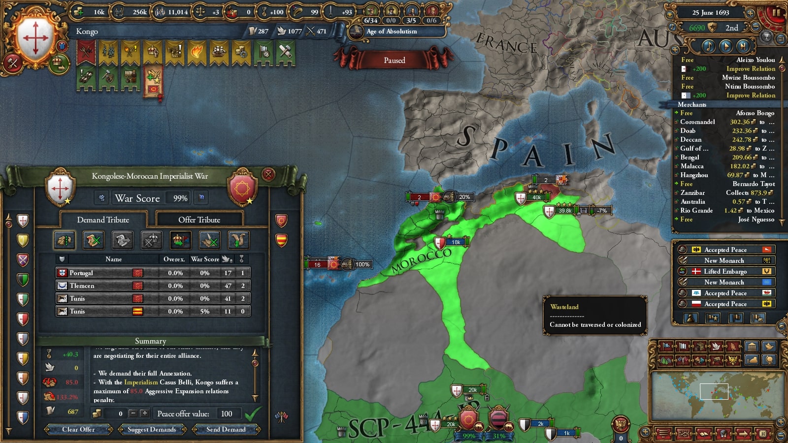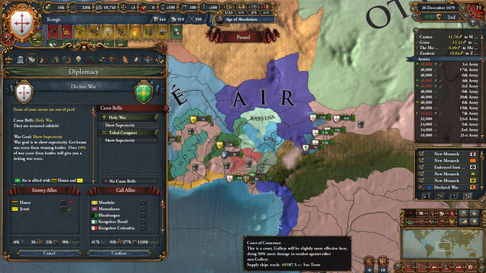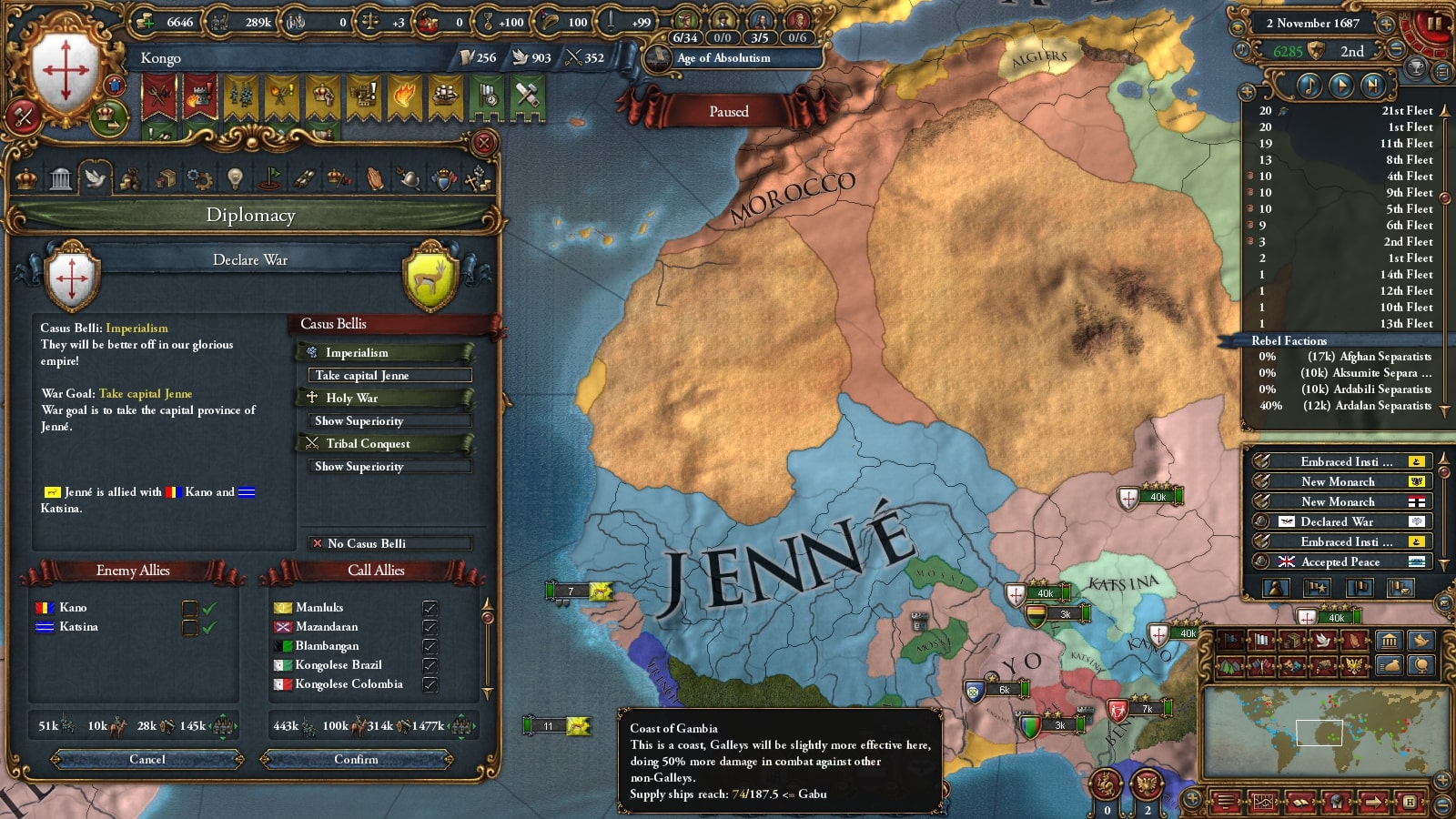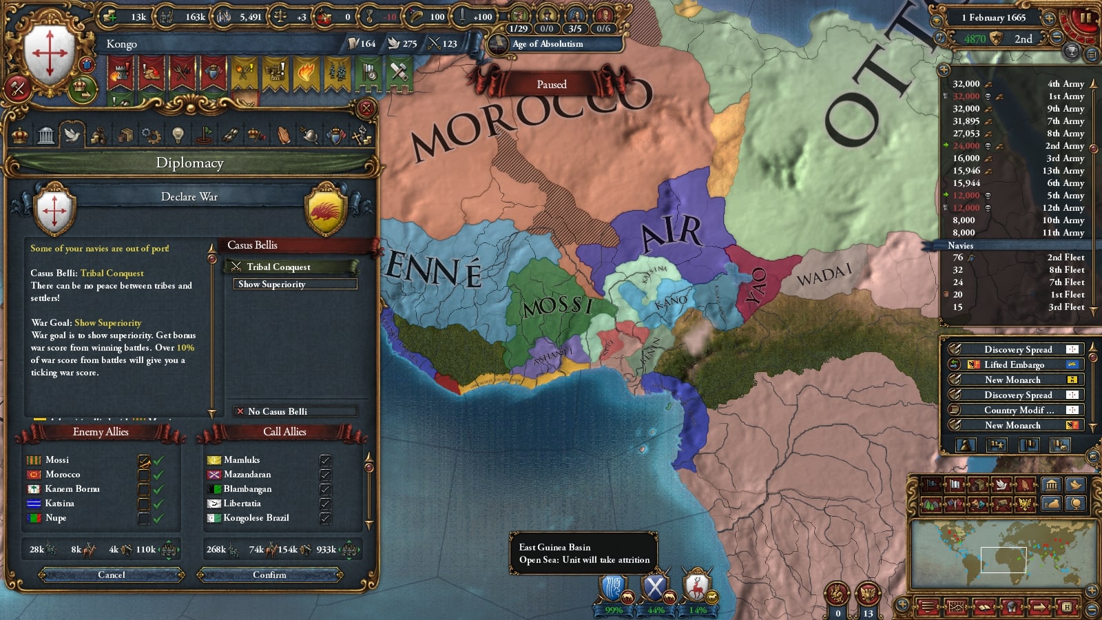 もう朝貢国でAE圧縮する必要ない気がしたんで西アフリカに150年ぶりに攻め込みます。