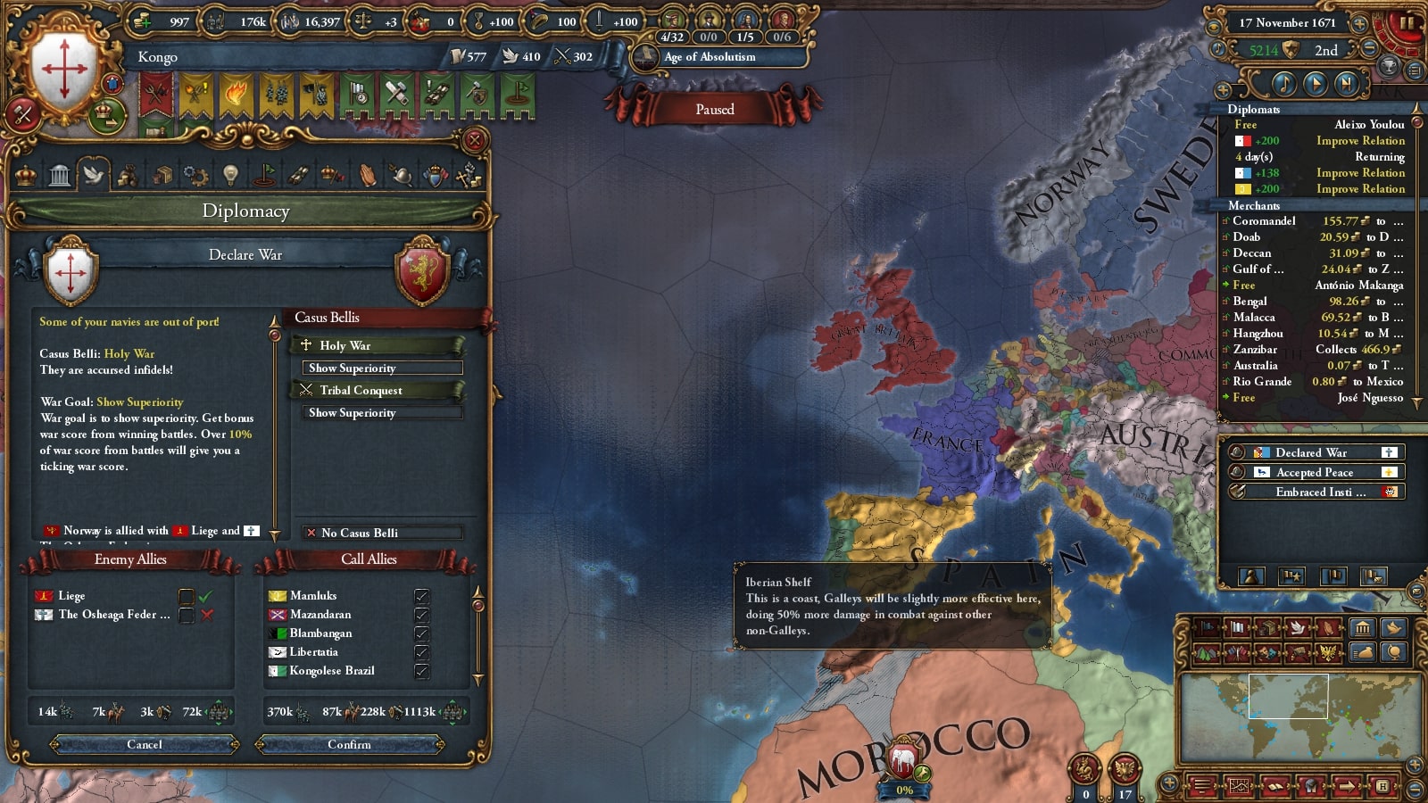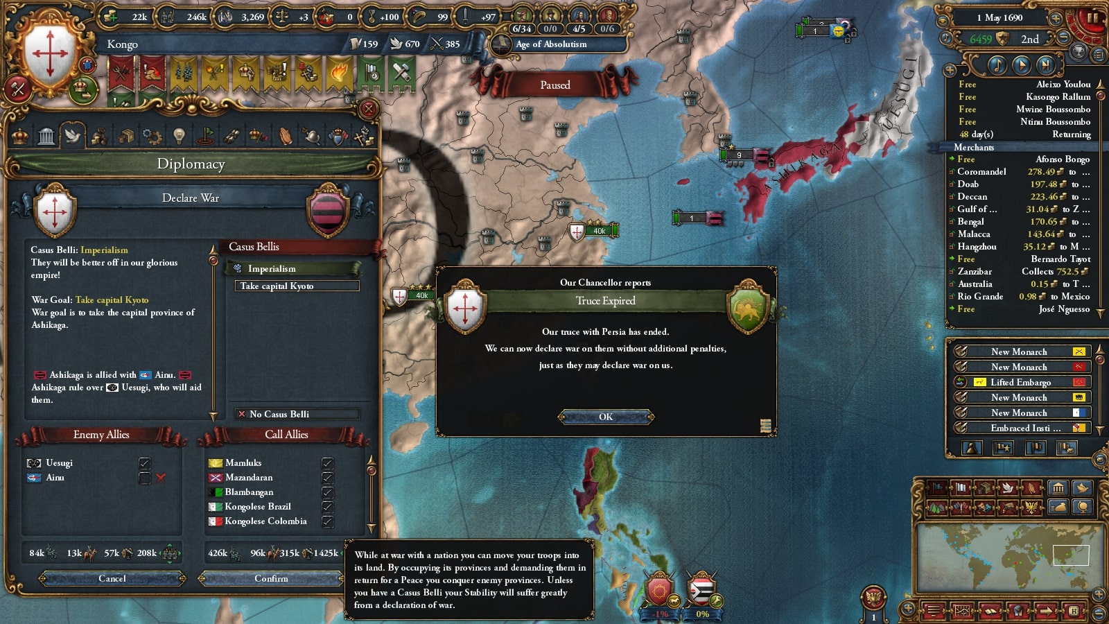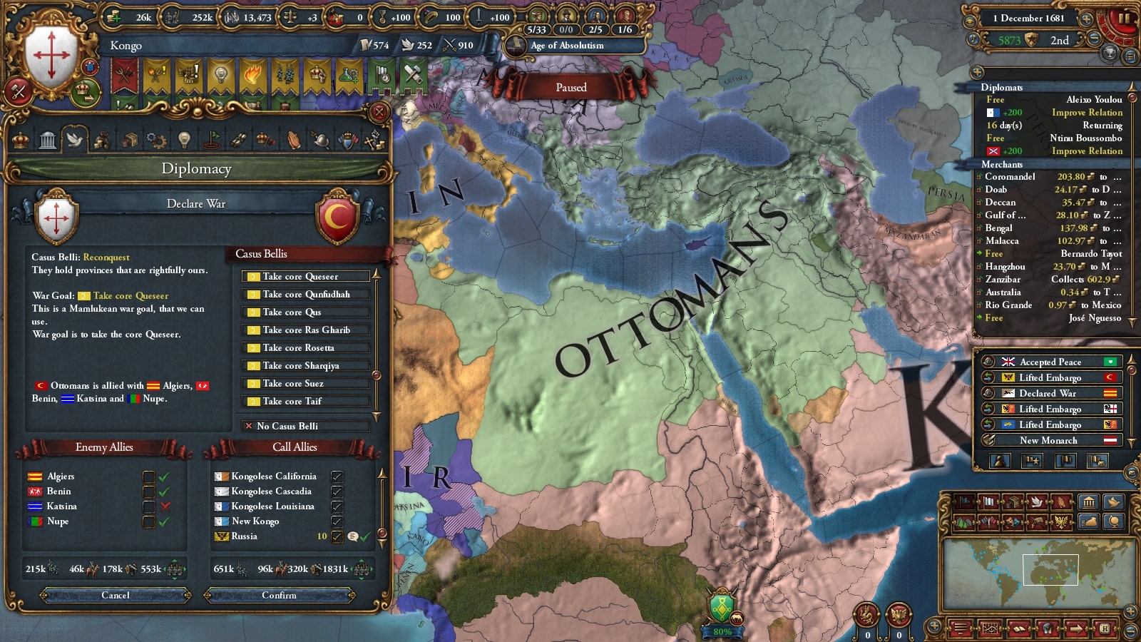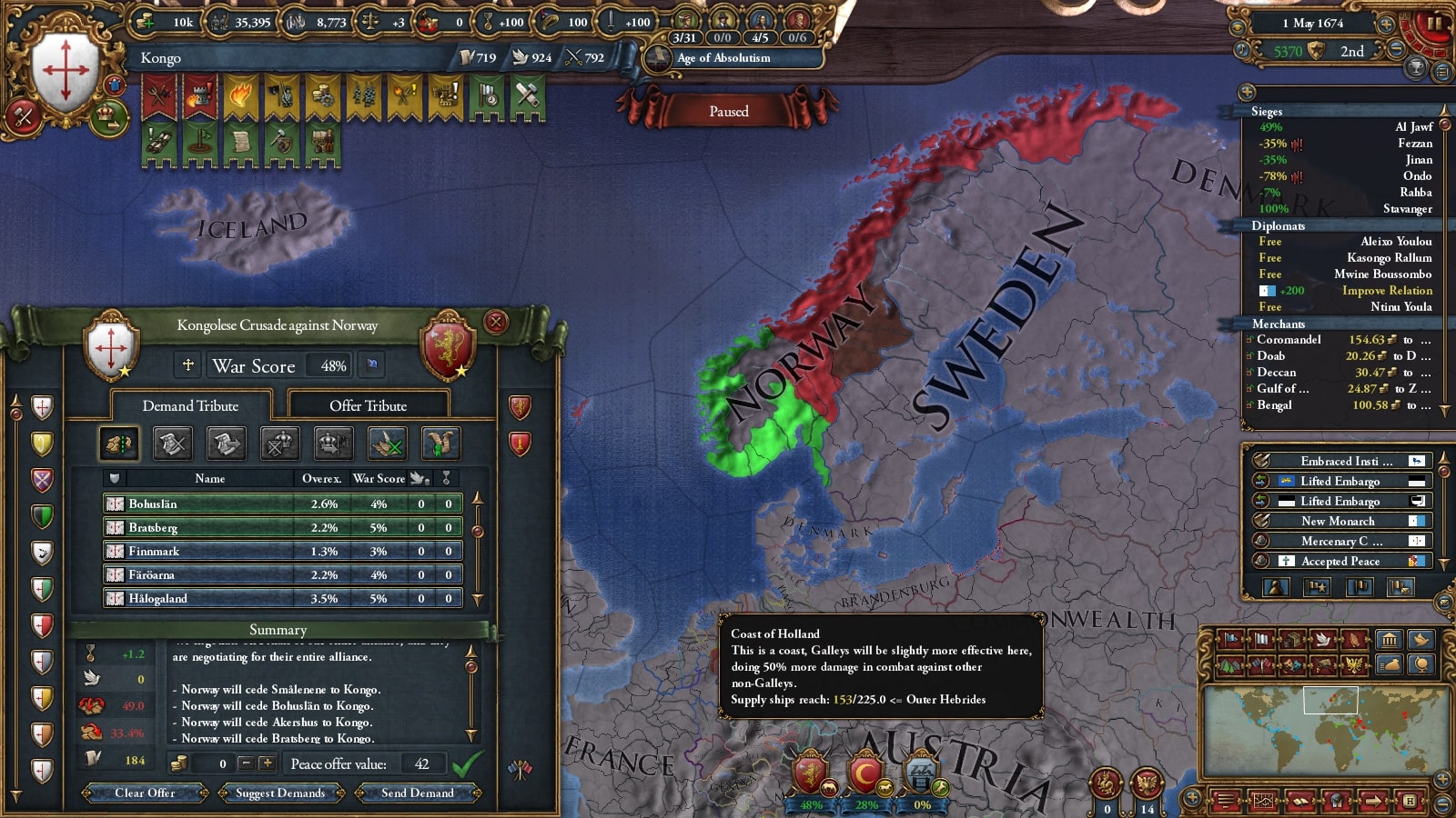 もう朝貢国でAE圧縮する必要ない気がしたんで西アフリカに150年ぶりに攻め込みます。
