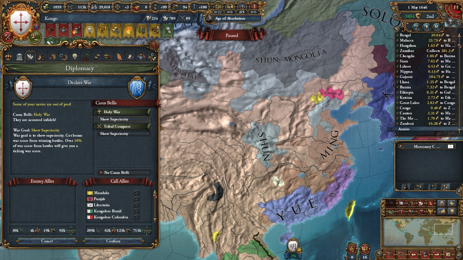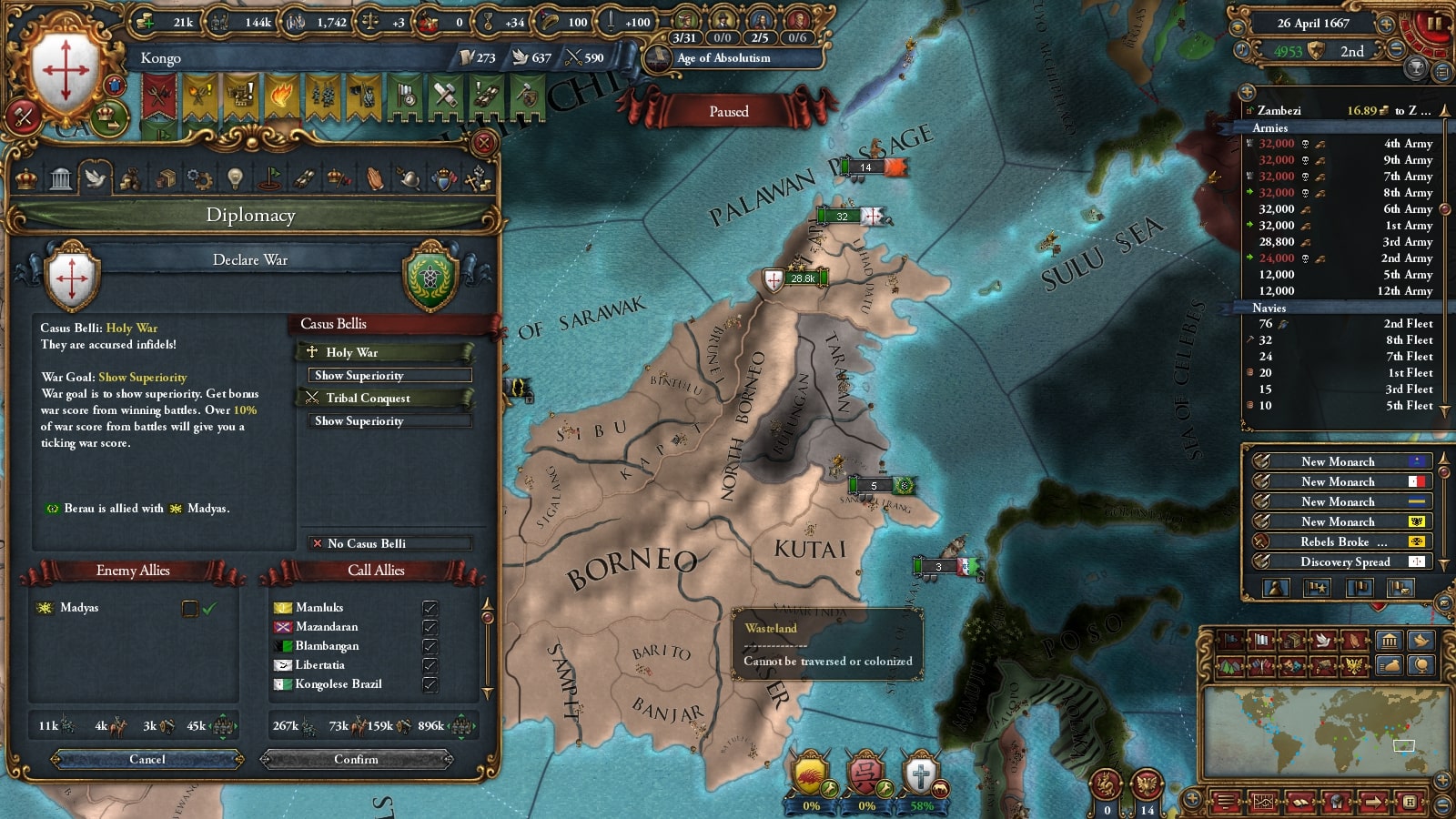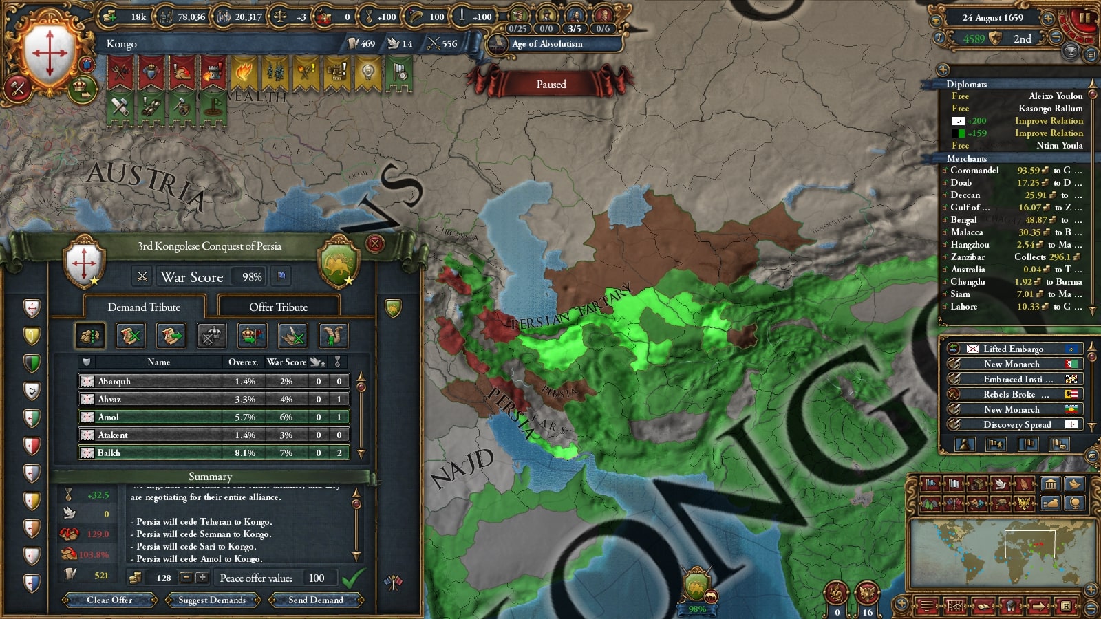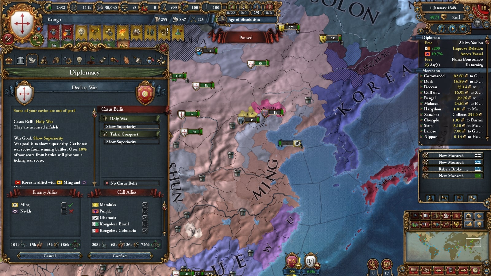 もう朝貢国でAE圧縮する必要ない気がしたんで西アフリカに150年ぶりに攻め込みます。
