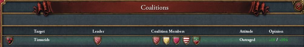 兵の扶養限界まで兵を増やしていますが属国の合計よりも劣っているためQaraQoyunluと同盟を組みます