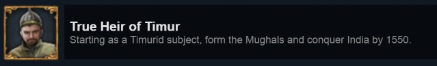 Dharmaで追加された True Heir of Timur の達成。